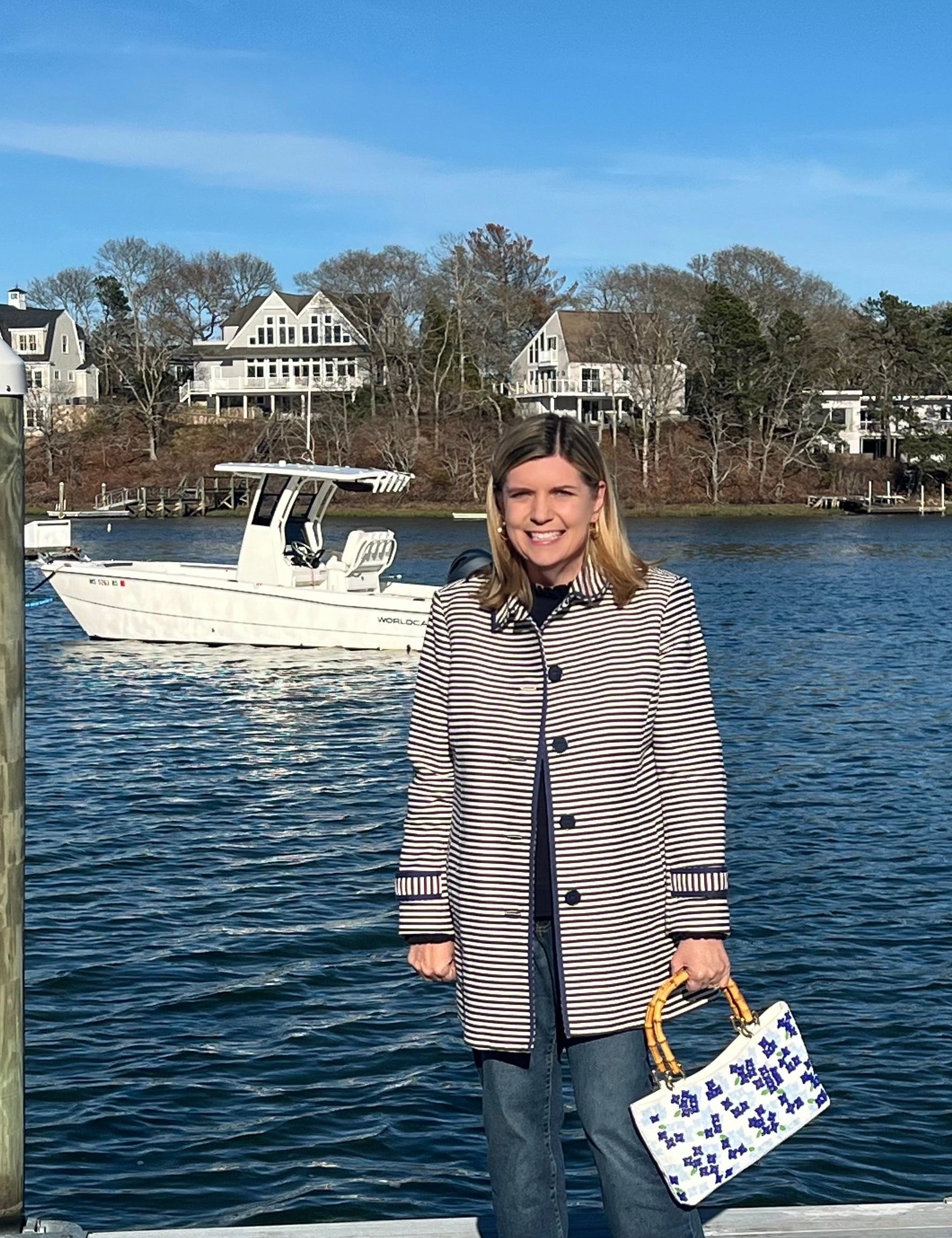 Jennifer Reardon is the founder of Peachy Pendants, a home decor, accessories, and giftware brand known for its coastal preppy style. Her goal is to create products that embody the charming coastal aesthetic of New England. Her designs emphasize a preppy spirit with imagery of a coastal lifestyle. From vibrant patterns to traditional motifs, her brand captures the essence of East Coast sophistication with a whimsical attitude.