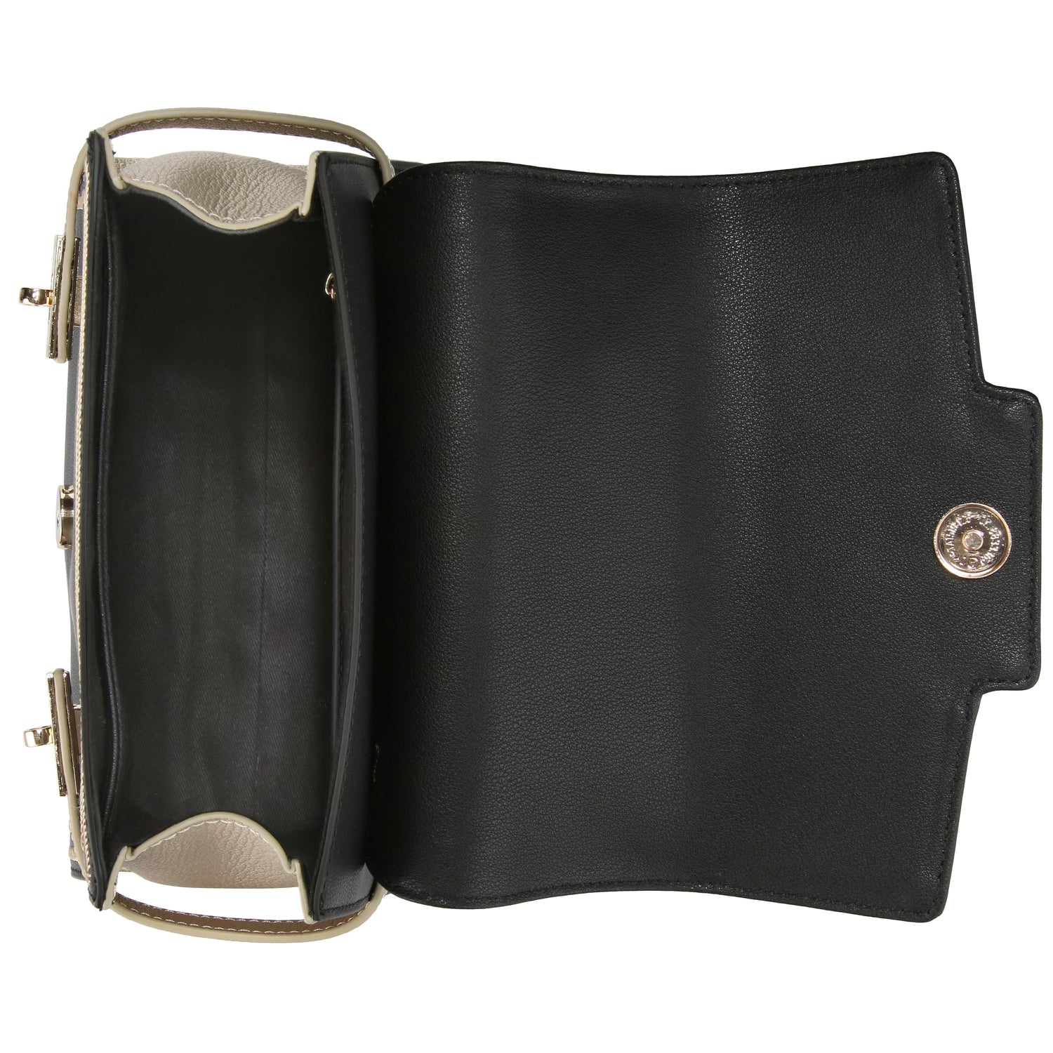 The exterior of the handbag is made from high-quality black leather which is both sophisticated and durable. The metallic gold accents add a touch of opulence, elevating the overall aesthetic and making it a true statement piece.