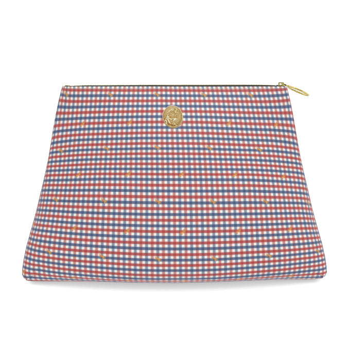 This tile bag is what happens when classic picnic gingham gets the prep school treatment—with a Tigre twist. Our exclusive red-and-blue check is printed on crisp white, then scattered with tiny tiger motifs that look embroidered (but aren’t—trompe l’oeil, darling).