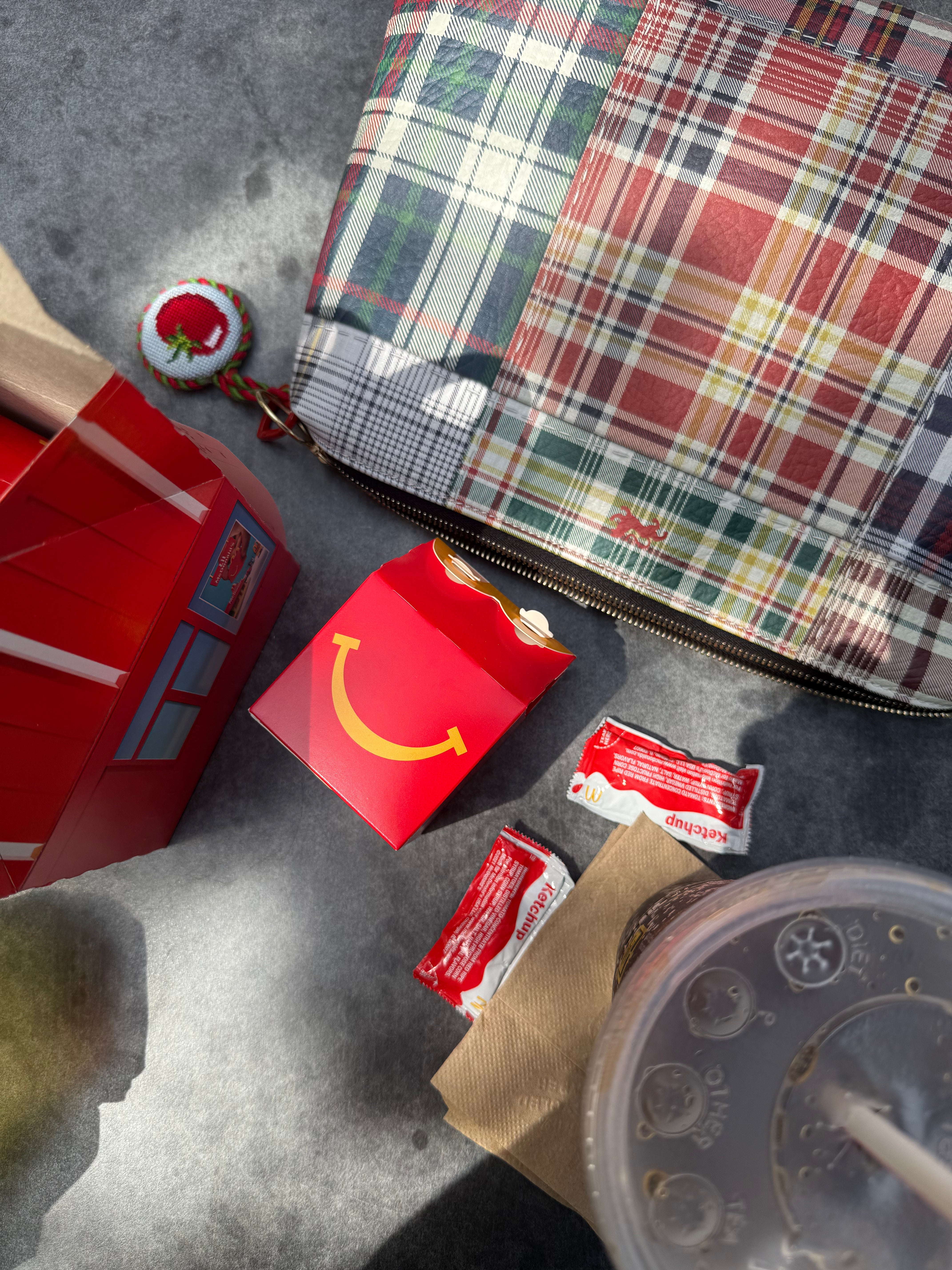 Roomy Leather Clutch, HANDBOOK PLAID
