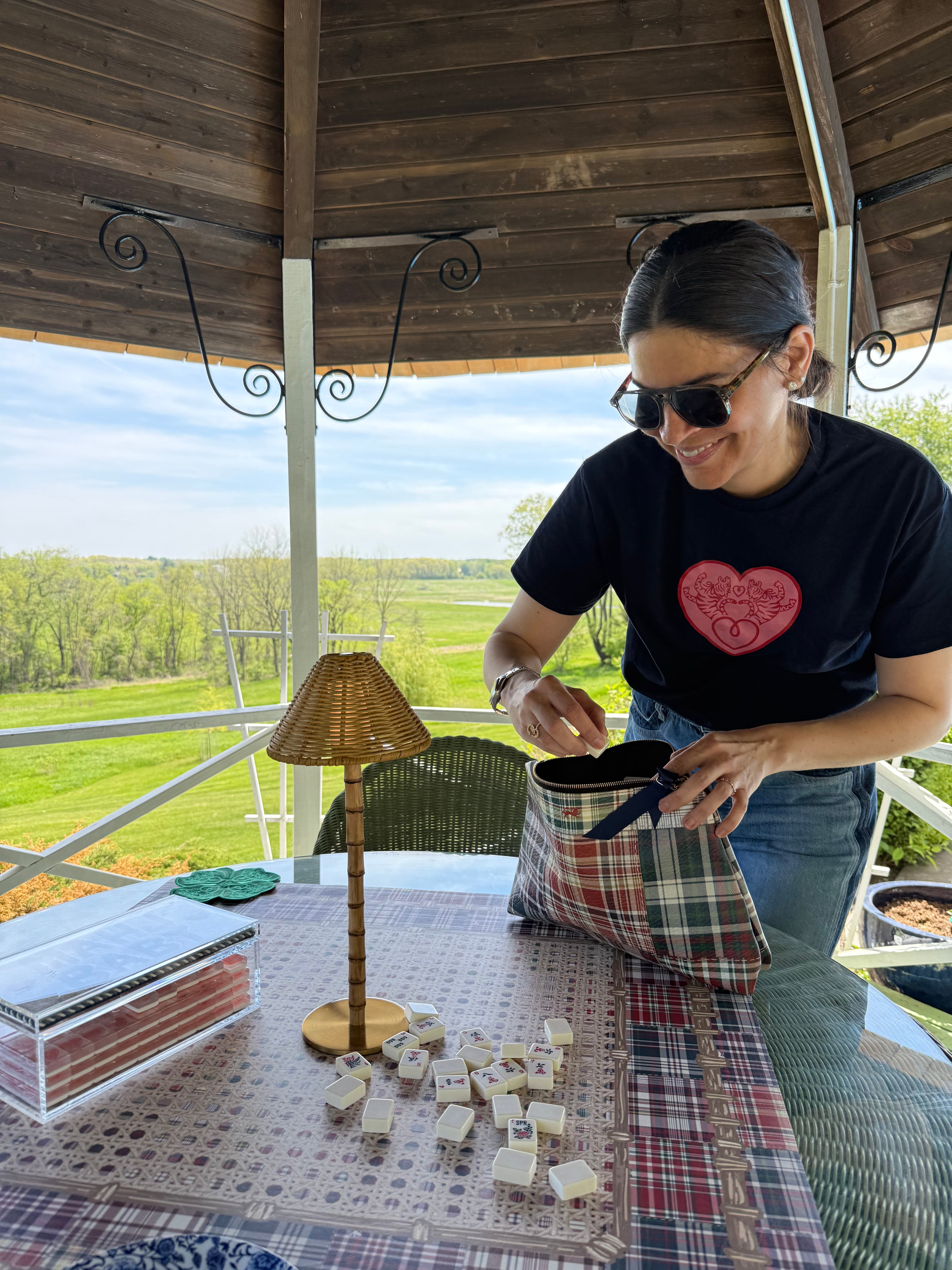 Our signature madras print—designed in-house and inspired by The Official Preppy Handbook—gets a new role: roomy leather clutch. Made from soft yet structured Nappa leather and lined in satin, this plaid beauty holds it all (including your phone, keys, lipstick, and a half-finished needlepoint project if you're that girl).