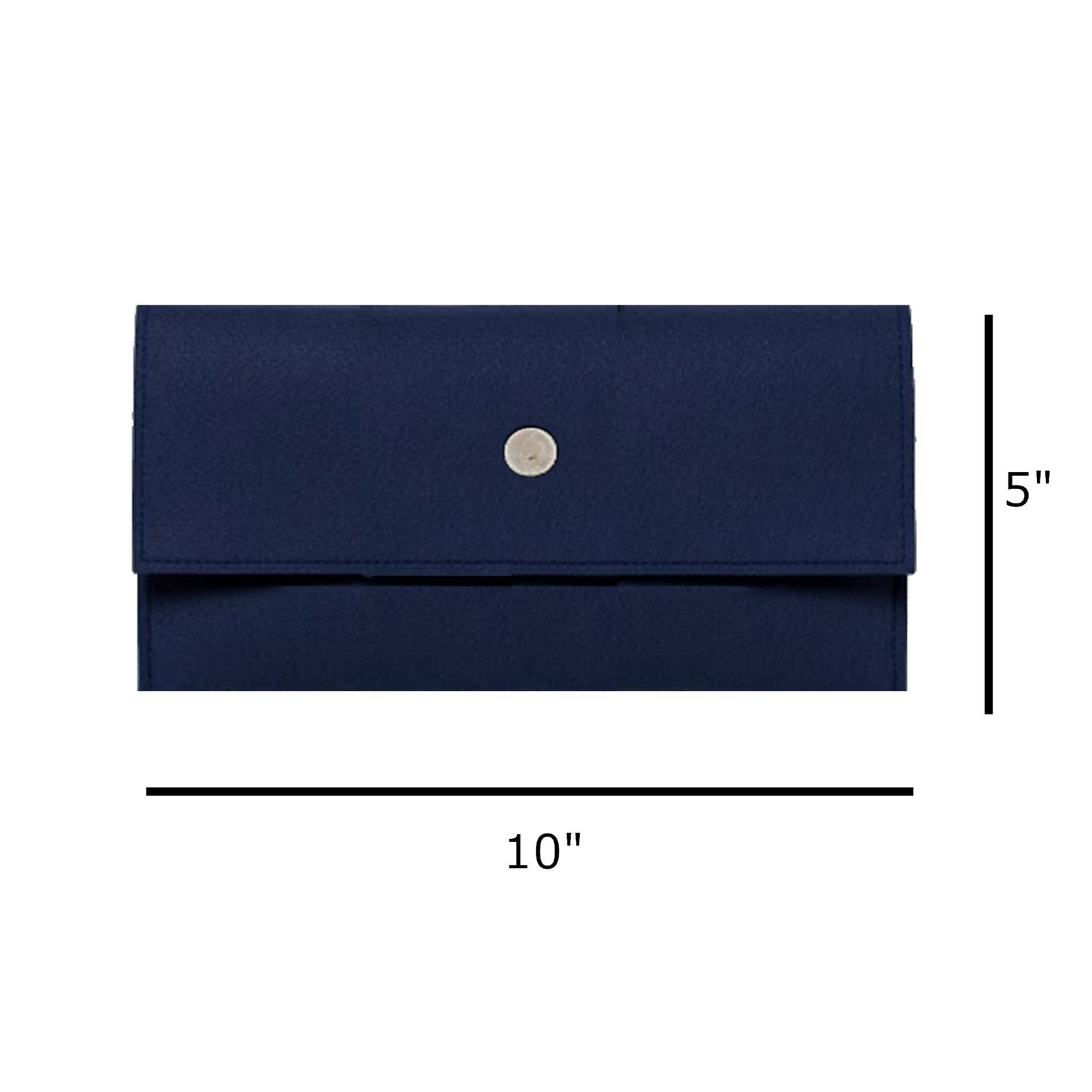 This Cambridge Clutch in Red is an envelope style clutch and measures approximately 10" x 5". It is made of felt and is lined on the inside with gray suede and closes with a magnetic snap. It comes with the bow of your choice. The bows attach with a magnetic snap and are interchangeable. Additional bows are also available to purchase individually.