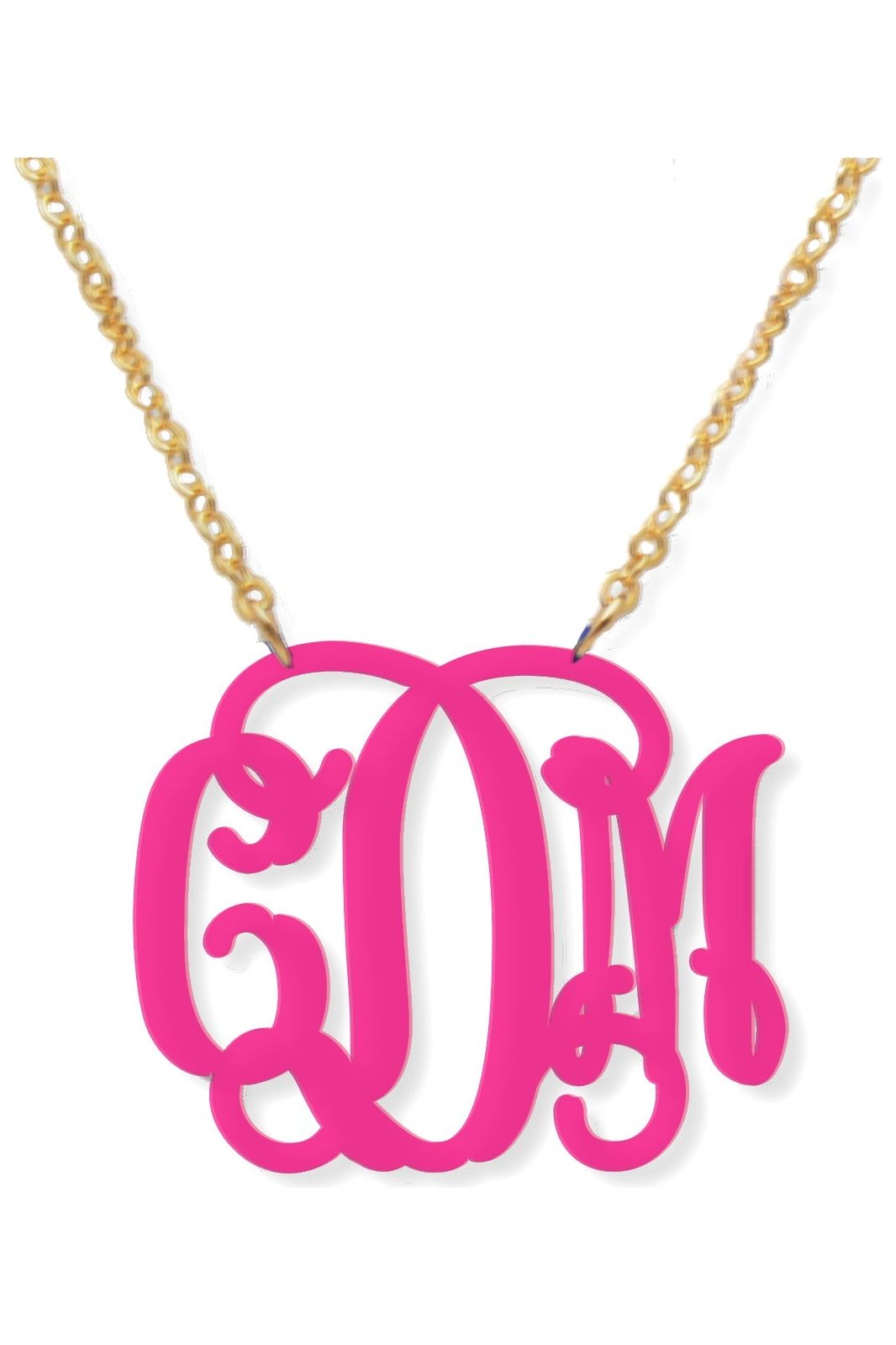 Monograms are always in style! These monogram necklaces come in a variety of fun colors and make a great preppy personalized gift! They are made from laser cut 1/8" acrylic and hang on an 18" necklace in silver or gold. Choose your monogram size and color from the drop down menu. Add your monogram in monogram order (first, LAST, middle) in the note section of checkout.