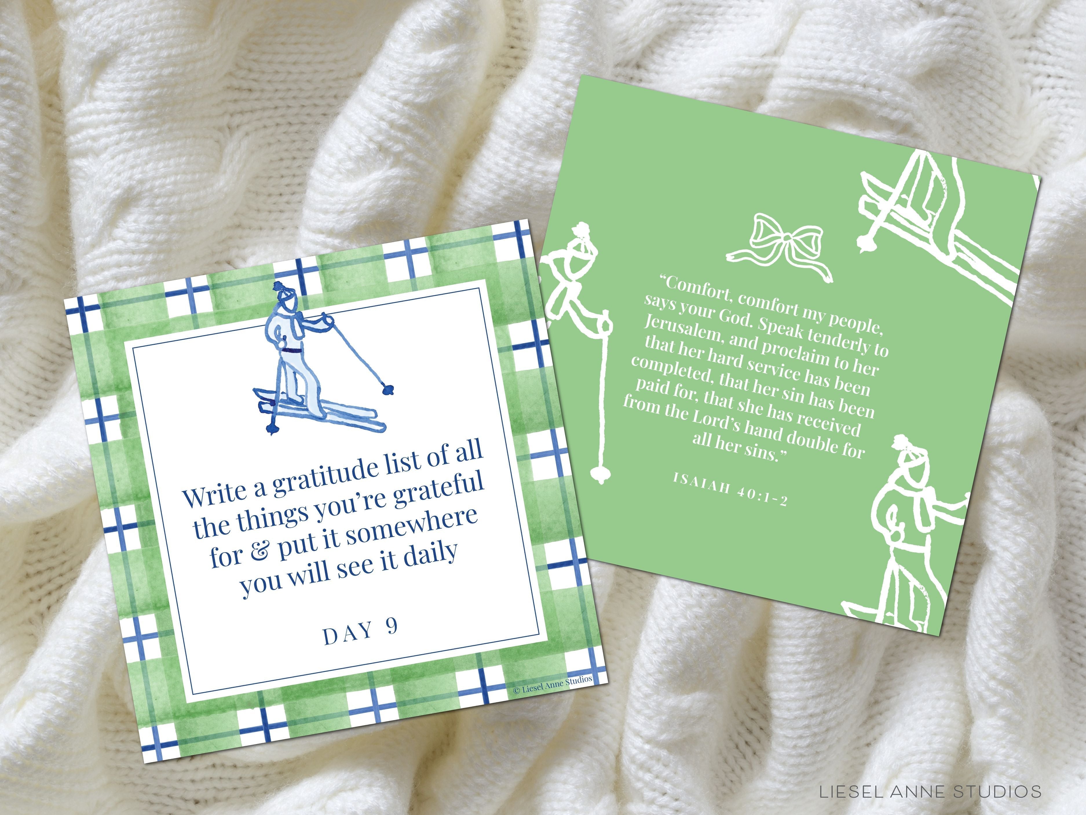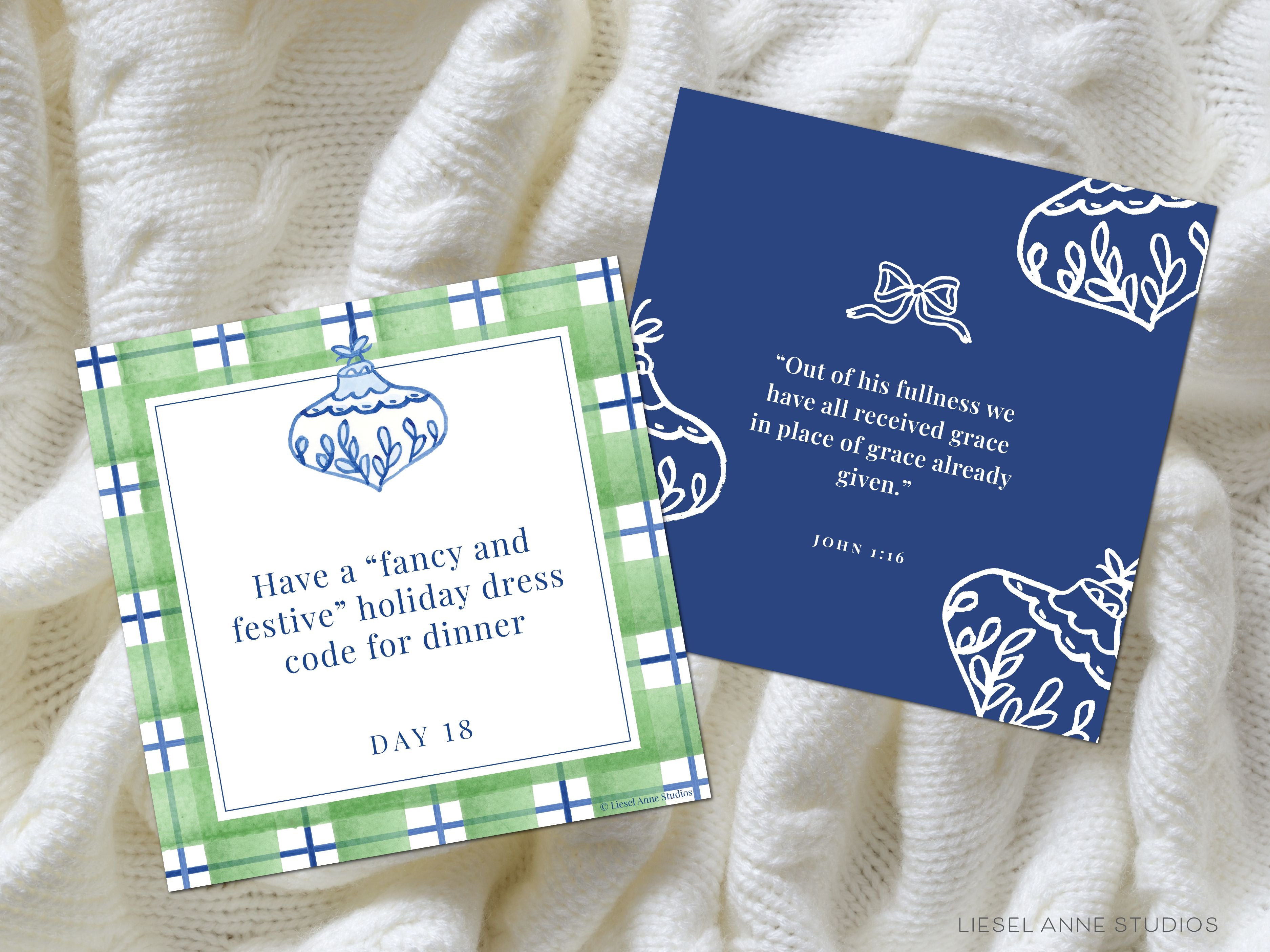 Advent Calendar Cards | Set of 25 Daily Activities & Scripture Cards | Blue and Green Plaid Bible Verse | Family Advent Christmas Countdown