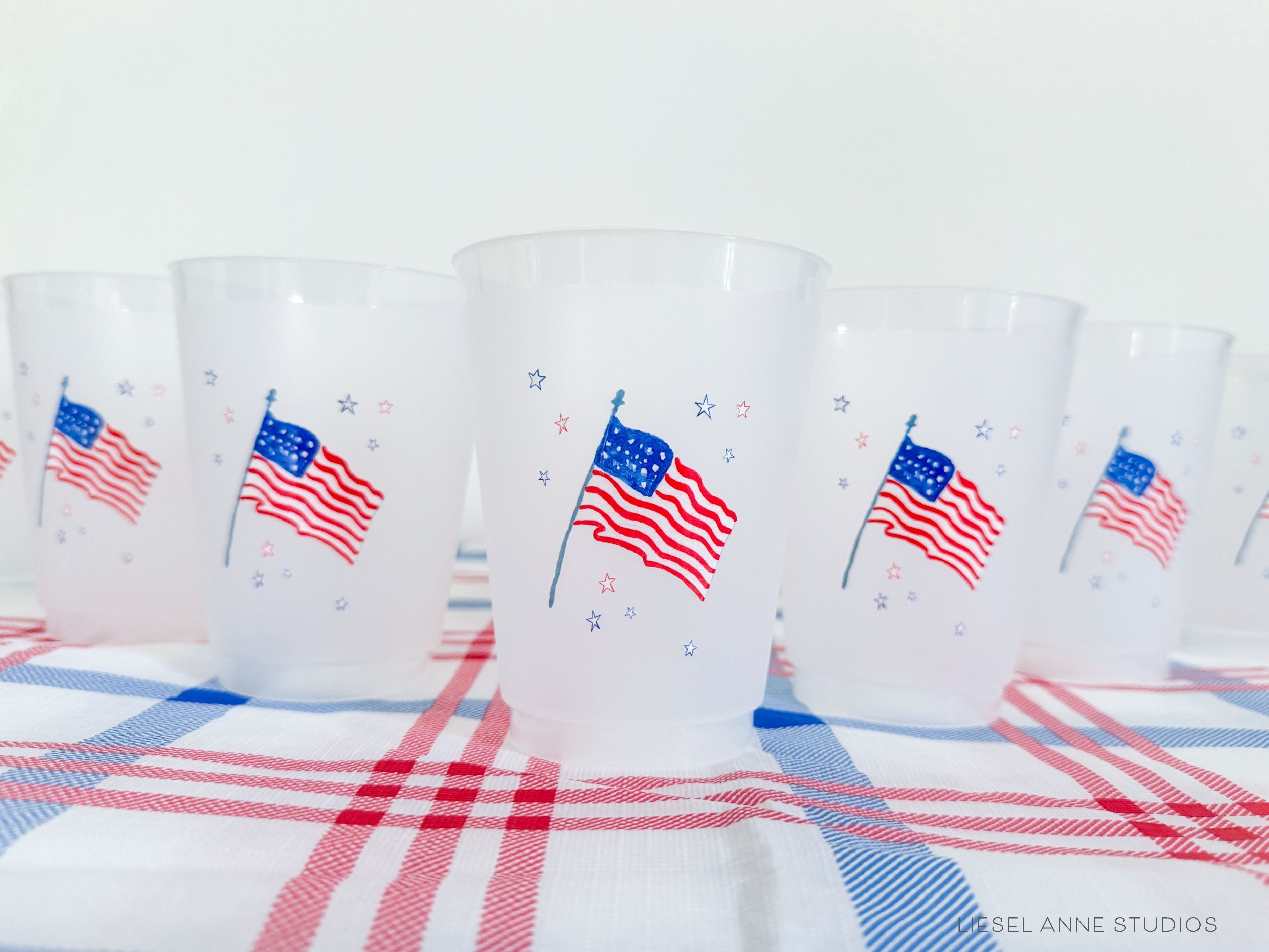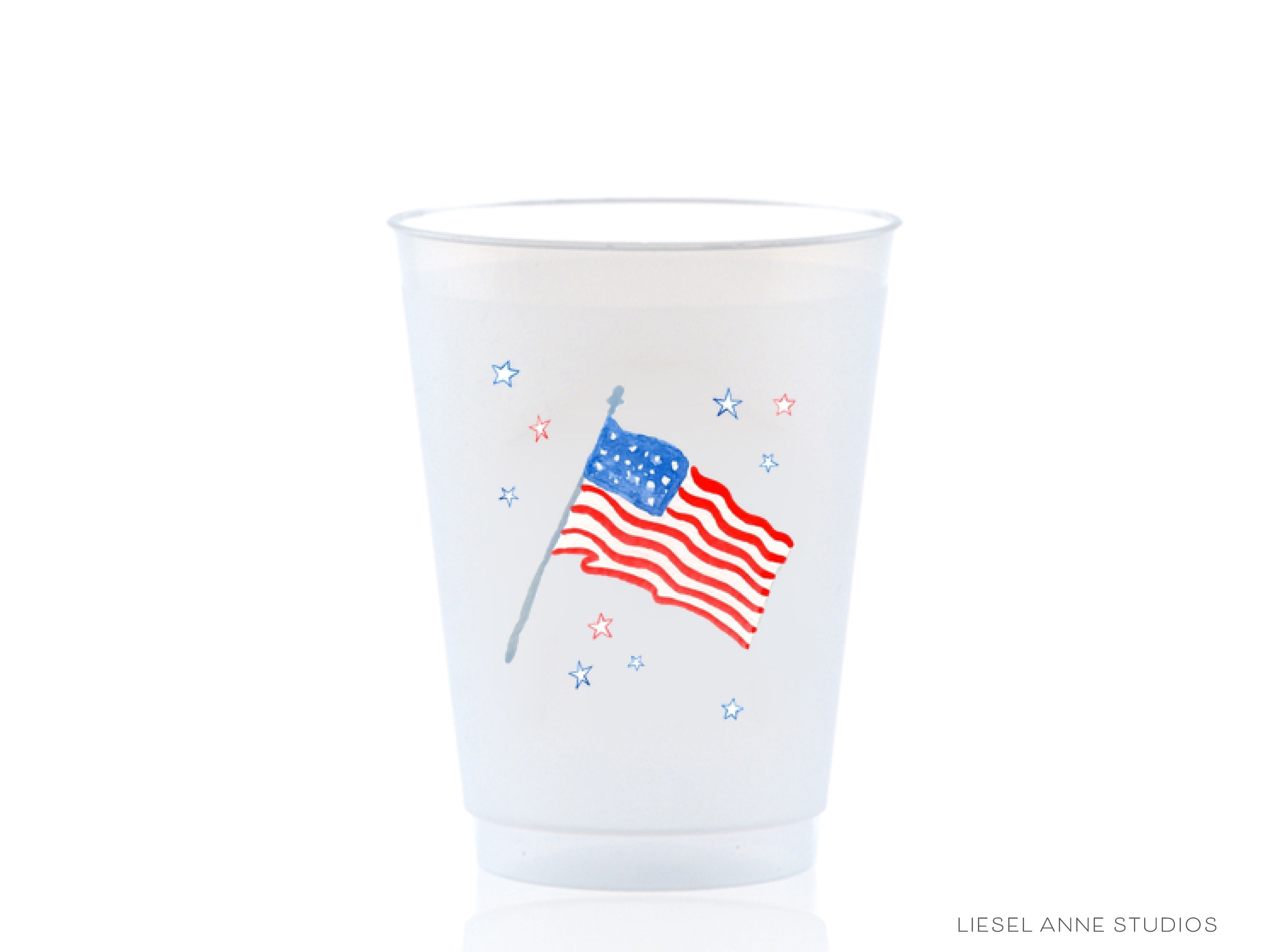 American Flag Frosted Shatterproof Cups | Set of 8 | Reusable Patriotic 4th Of July Party Cups | BBQ Cook Out Cups | 16oz USA Cup | Military