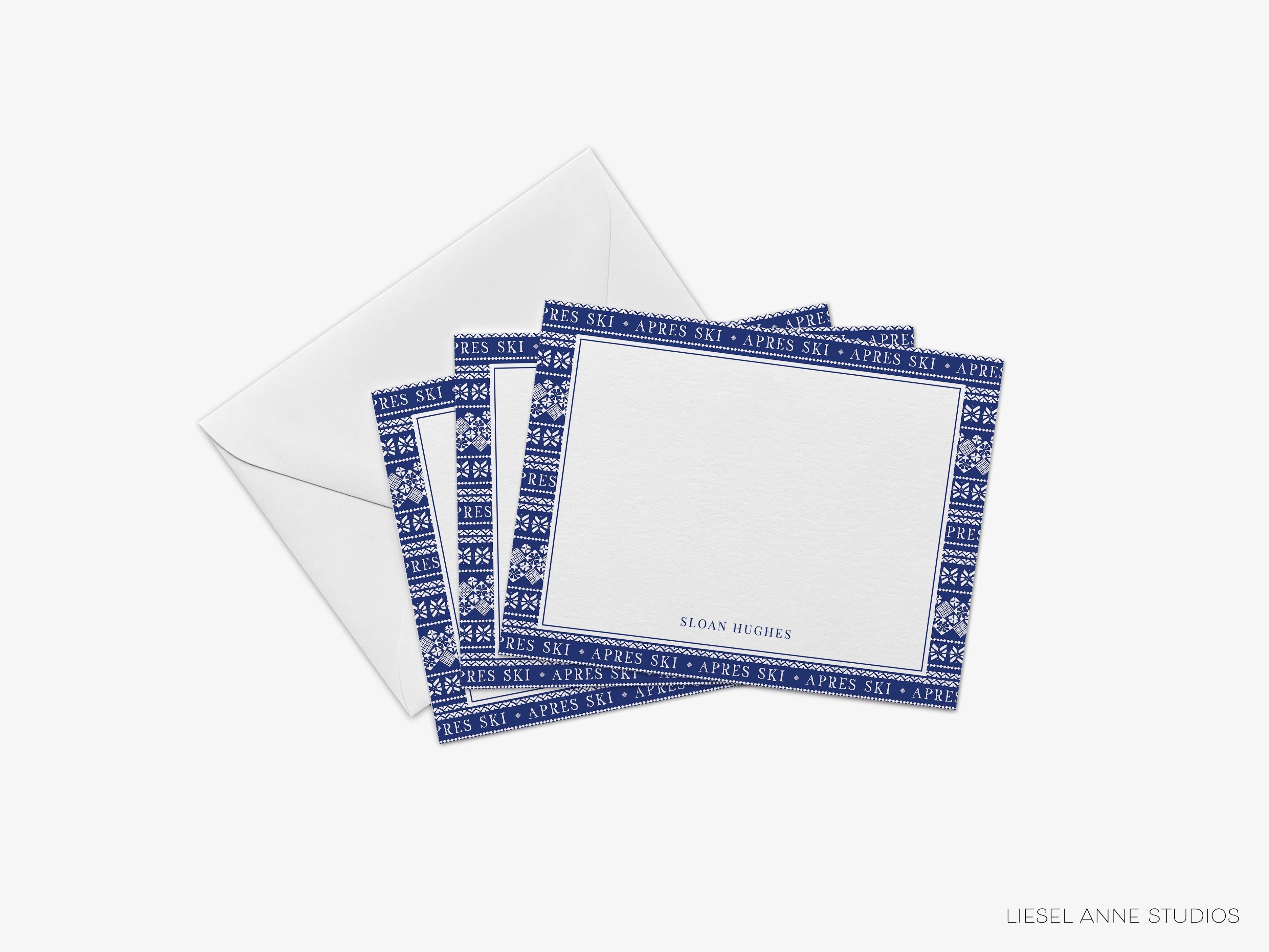 • Sets of Après Ski Sweater Personalized Flat Notes + White or Kraft Envelopes
