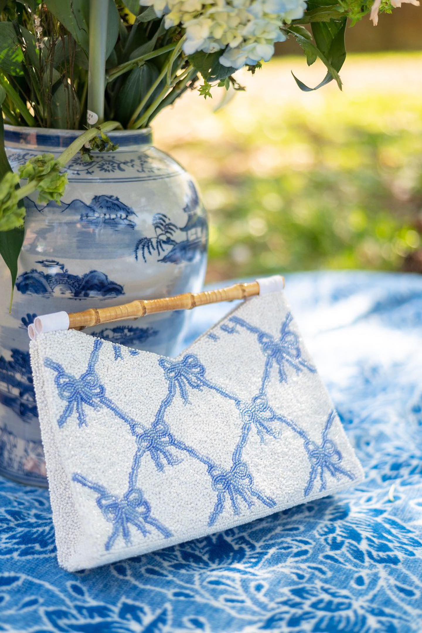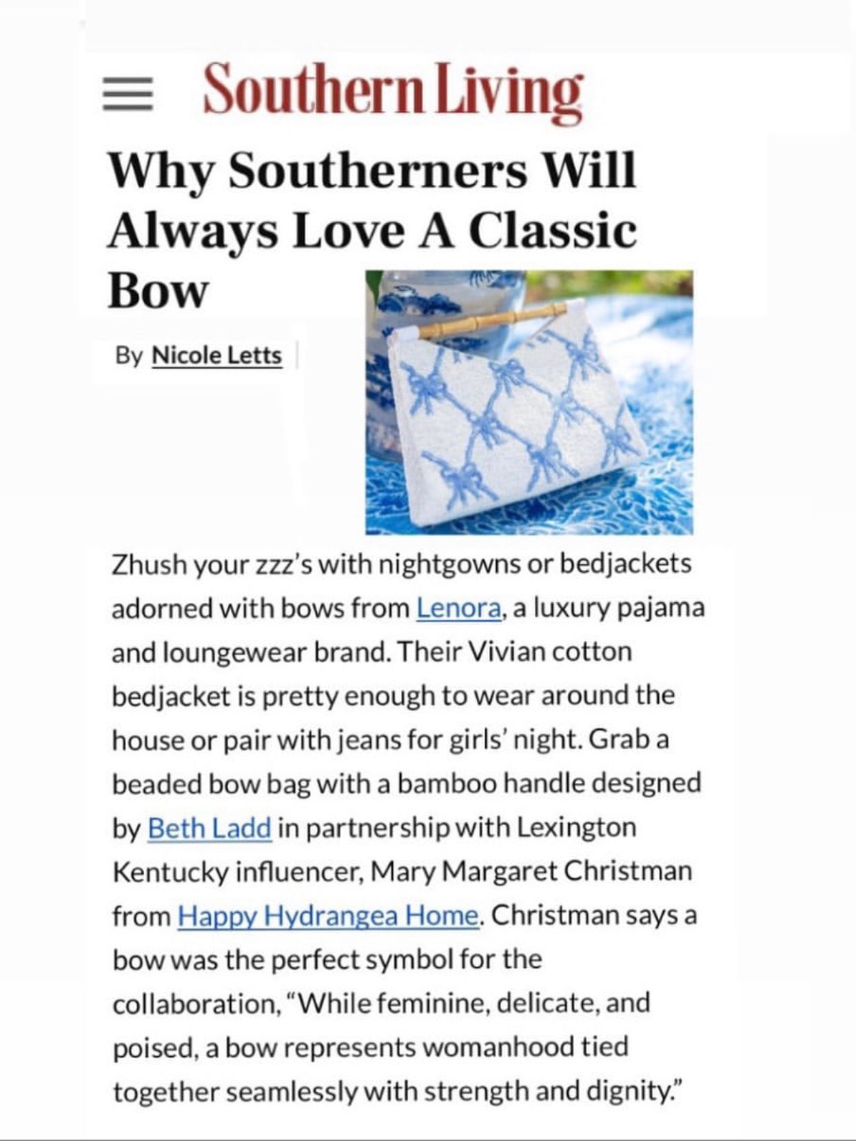 We designed this bag in collaboration with Mary Margaret Christman from Happy Hydrangea Home (@happyhydrangeahome). The design was inspired by vintage bow fabrics that perfectly compliment Mary Margaret’s classic grandmillennial style!