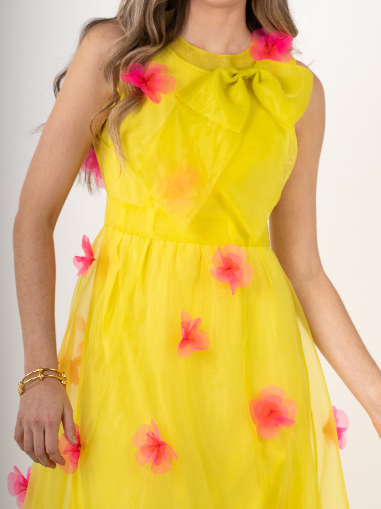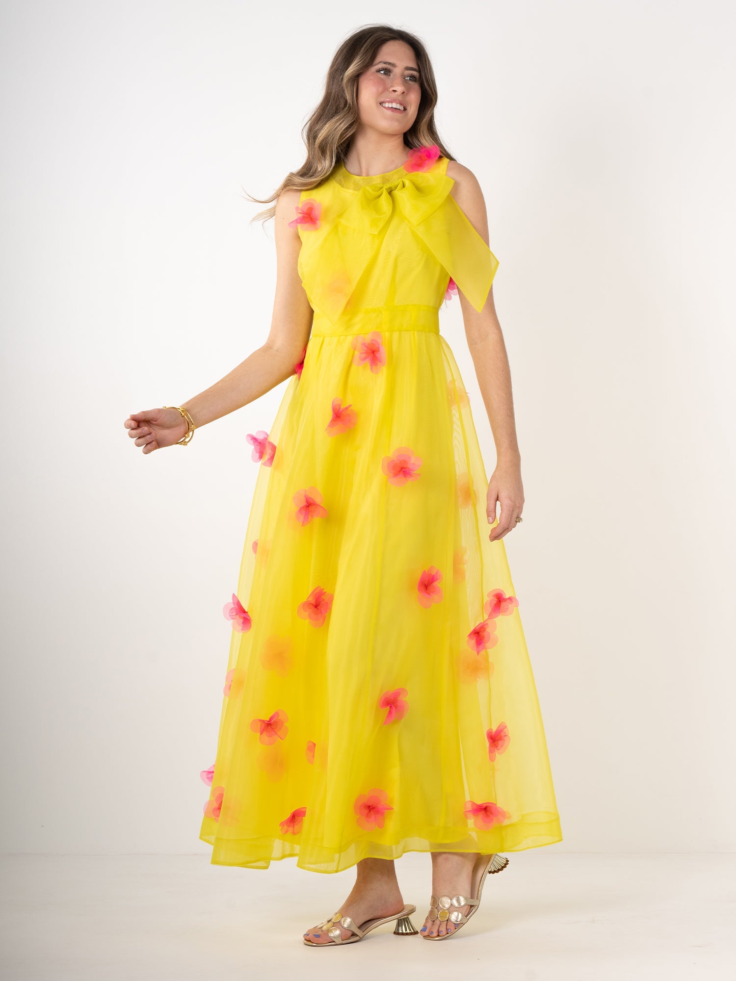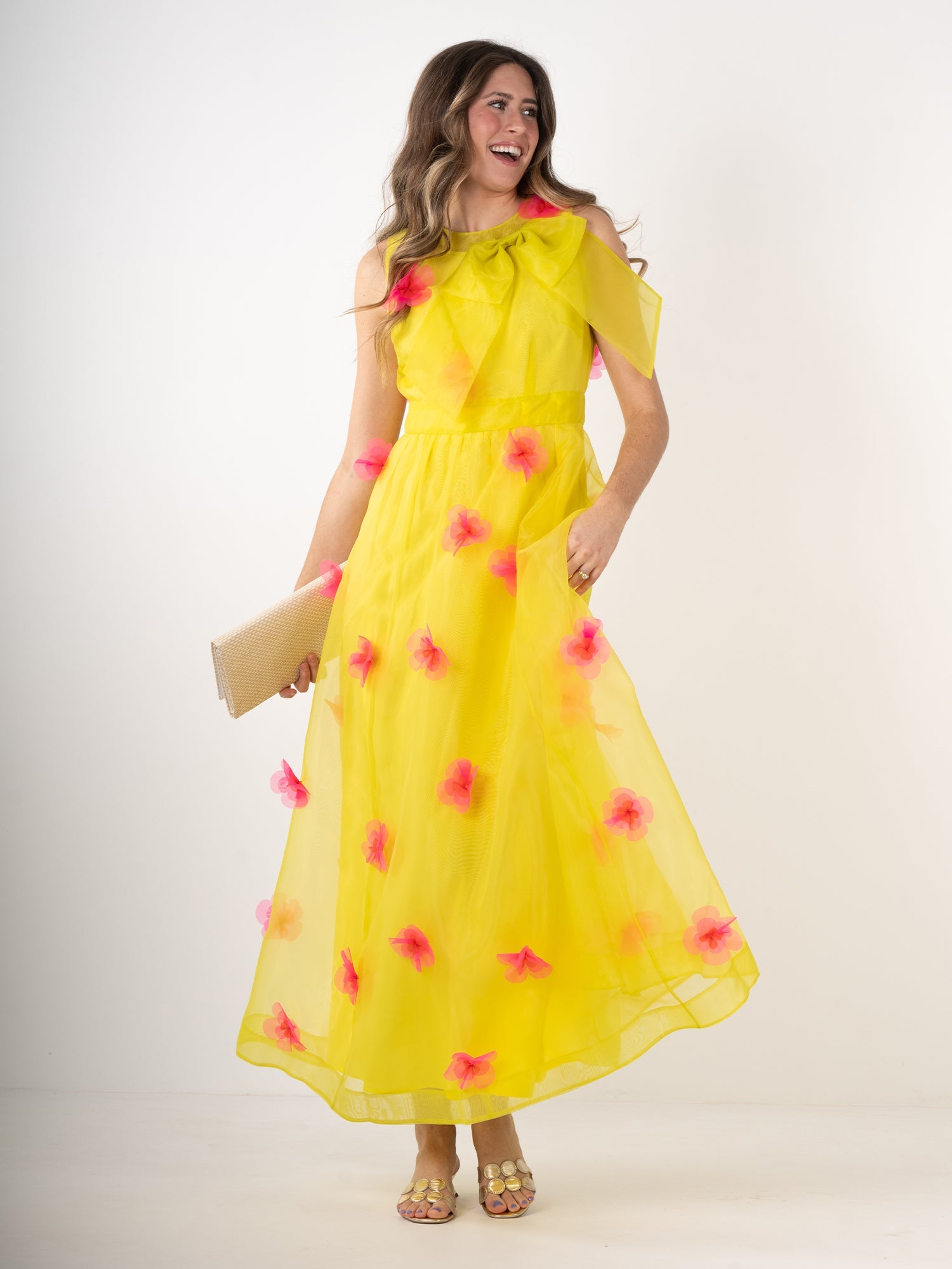A wearable masterpiece crafted for those special occasions that deserve a lasting impression, the Bella Maxi in Garden Party is ready for its close-up. Float through the room in a cloud of ethereal organza, adorned with 3D florals and a dramatic bow accent along the neckline. Pair with your best heels and dance the night away in vivid floral fashion!