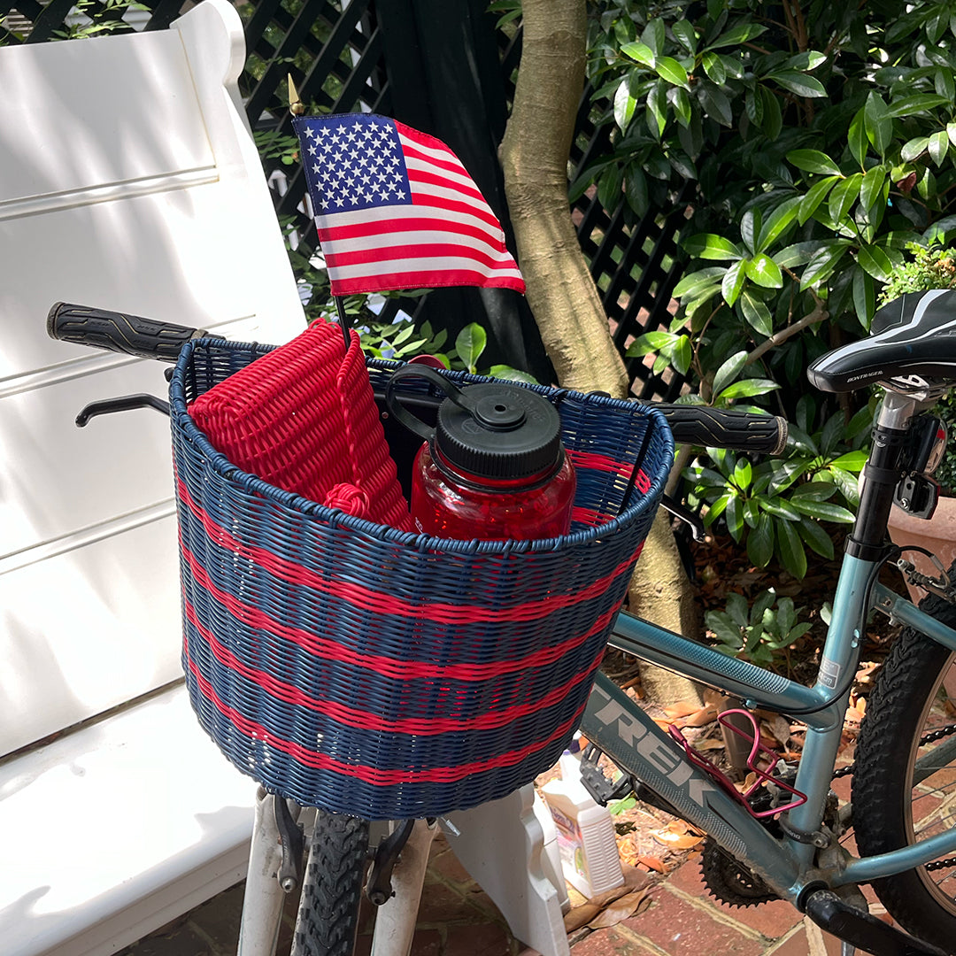 New this Summer! Our Lilley Line Bike Baskets are easy to take on and off and can even double as a picnic basket. Like all our products, baskets are hand-woven with durable plastic so they're great for heavy outdoor use - rain or shine. Click it on your bicycle and enjoy summer rides to beach and pool and local farmers markets. Love what you carry!