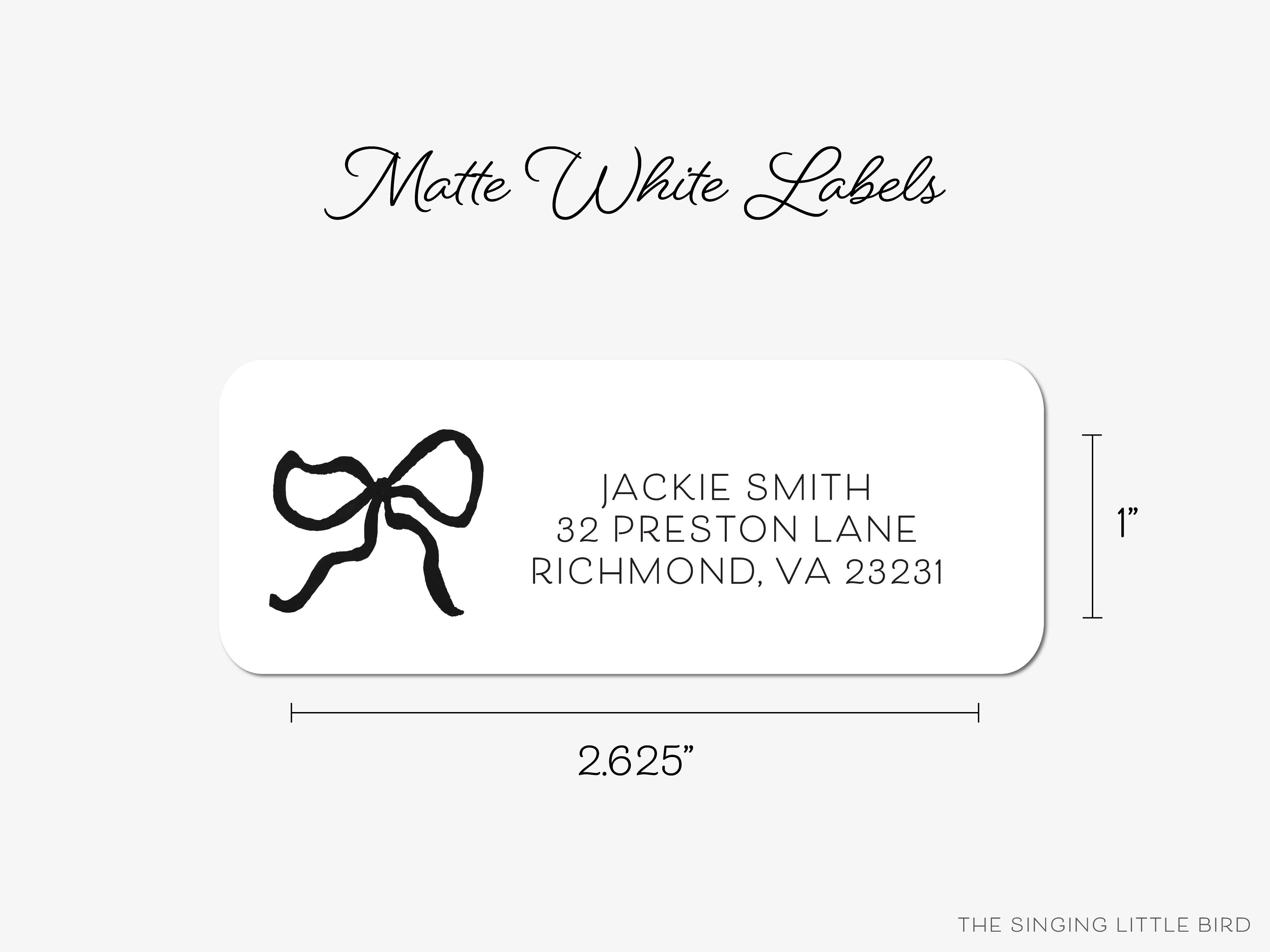 • White Matte Black Bow Return Address Labels that come in sets of 60+