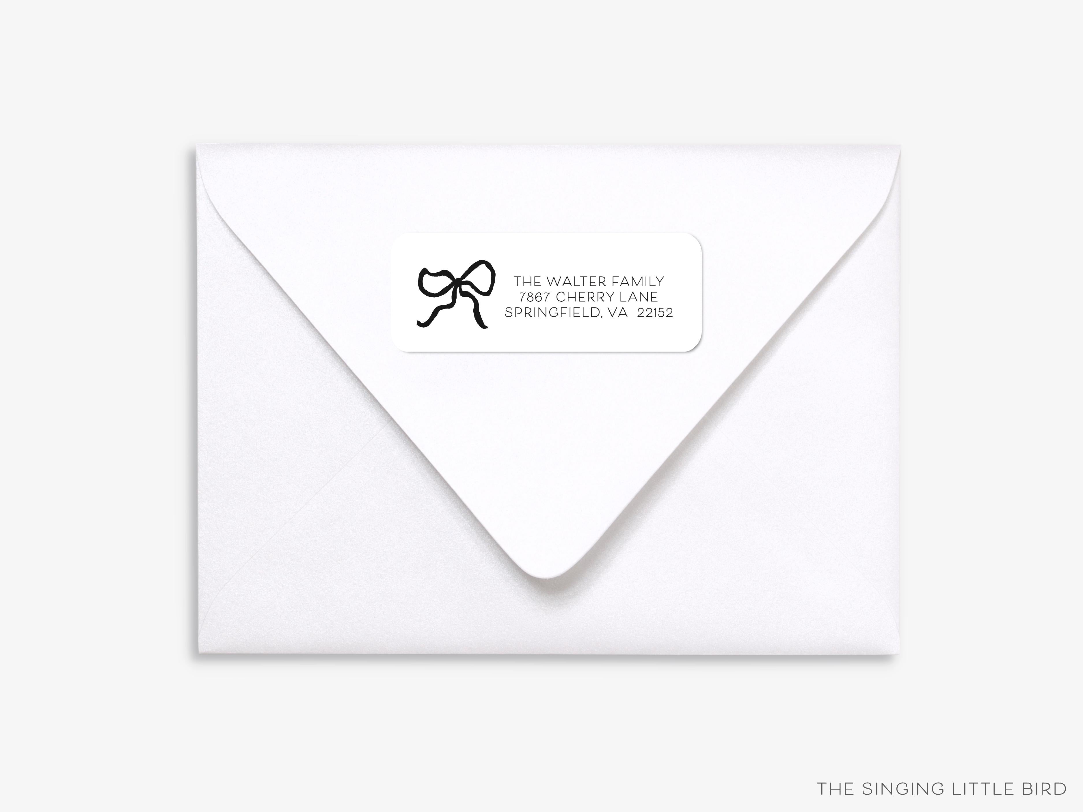 Black Bow Return Address Labels PRINTED | White Matte Address Envelope Label | Personal Address | Return Mailing Sticker | Minimal French