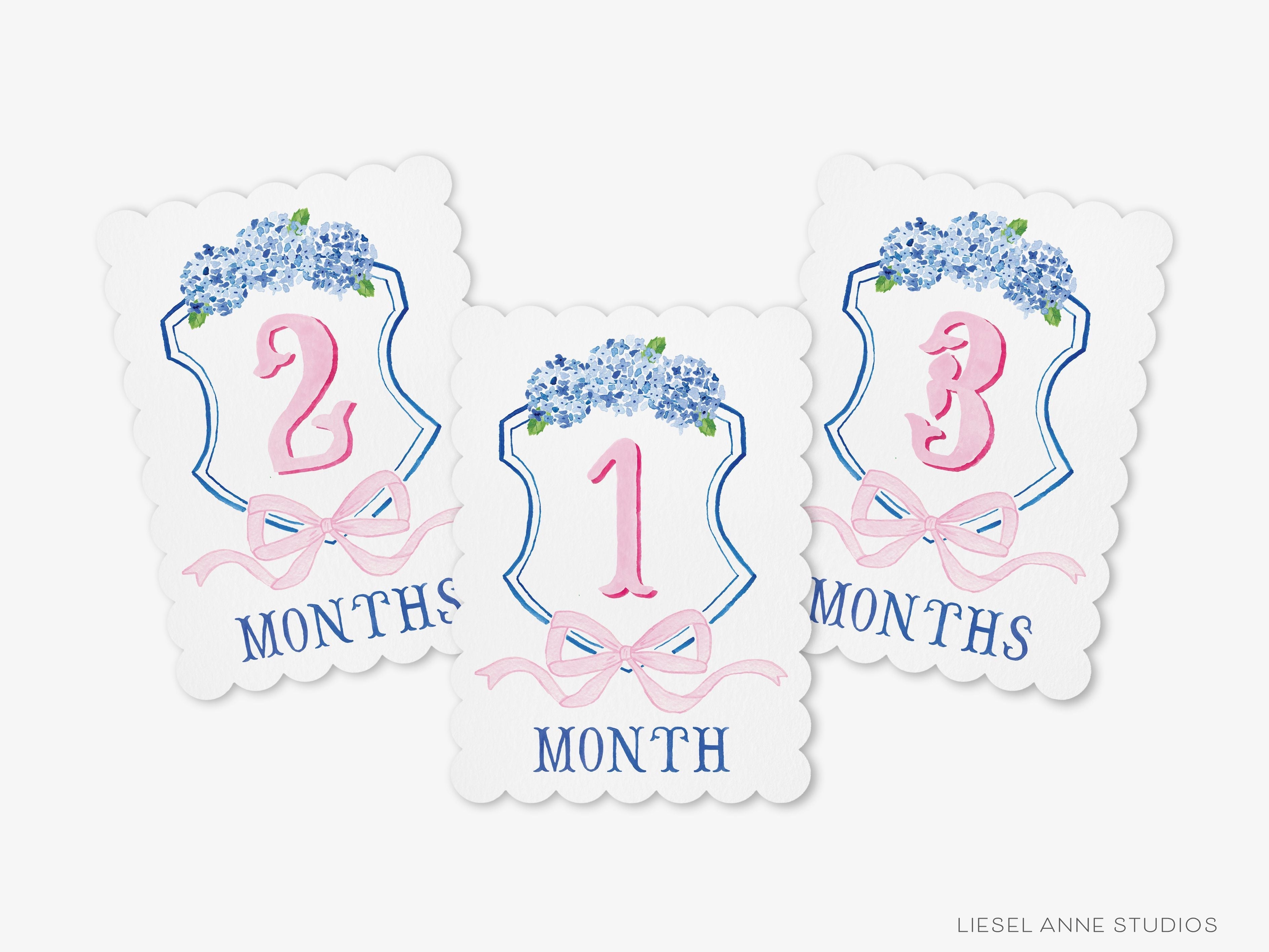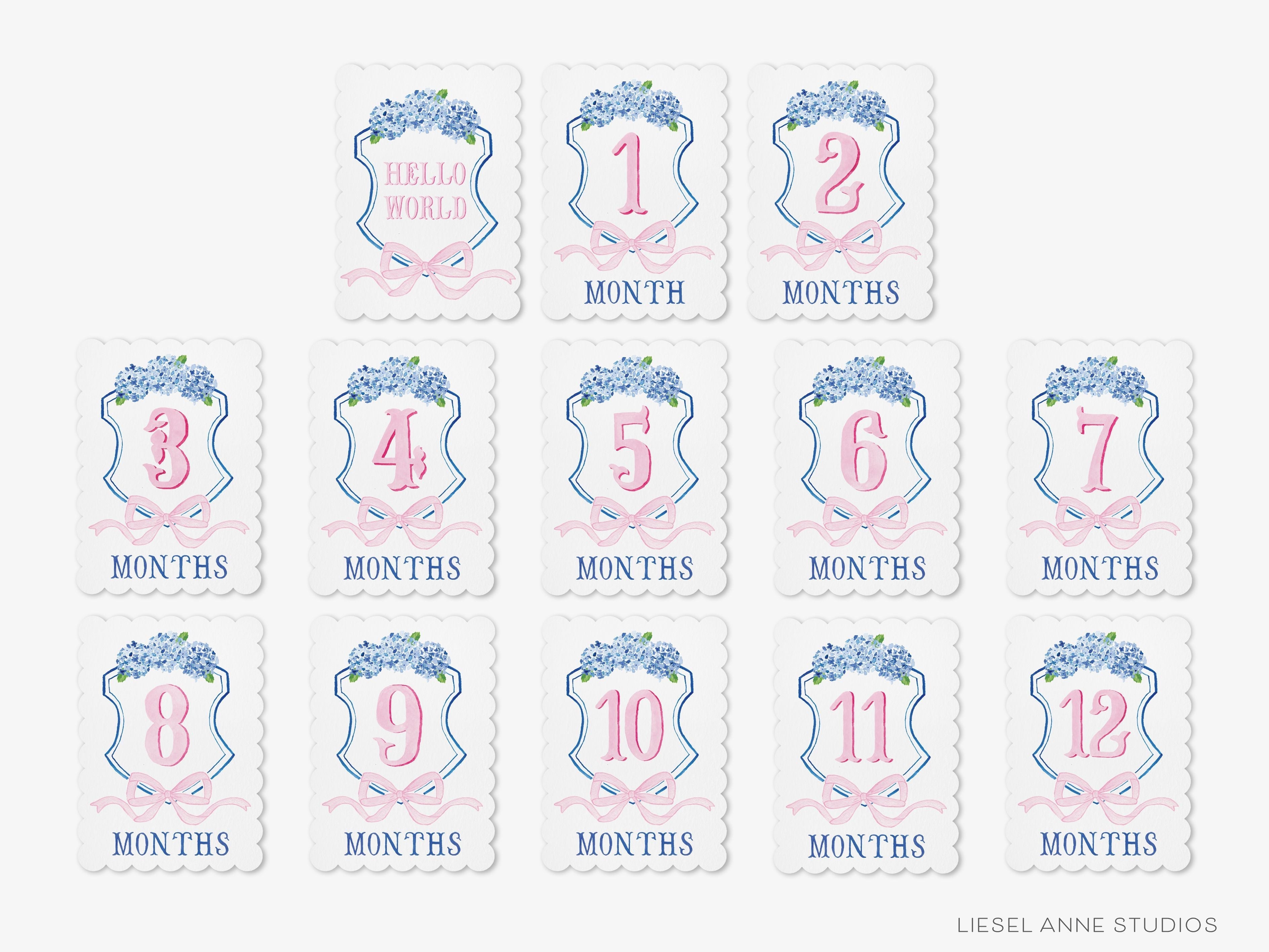 Blue and Pink Crest Scalloped Monthly Milestone Cards | By the Month Baby Photos | Newborn Milestones | Preppy Baby Gift | Watercolor Memory Book