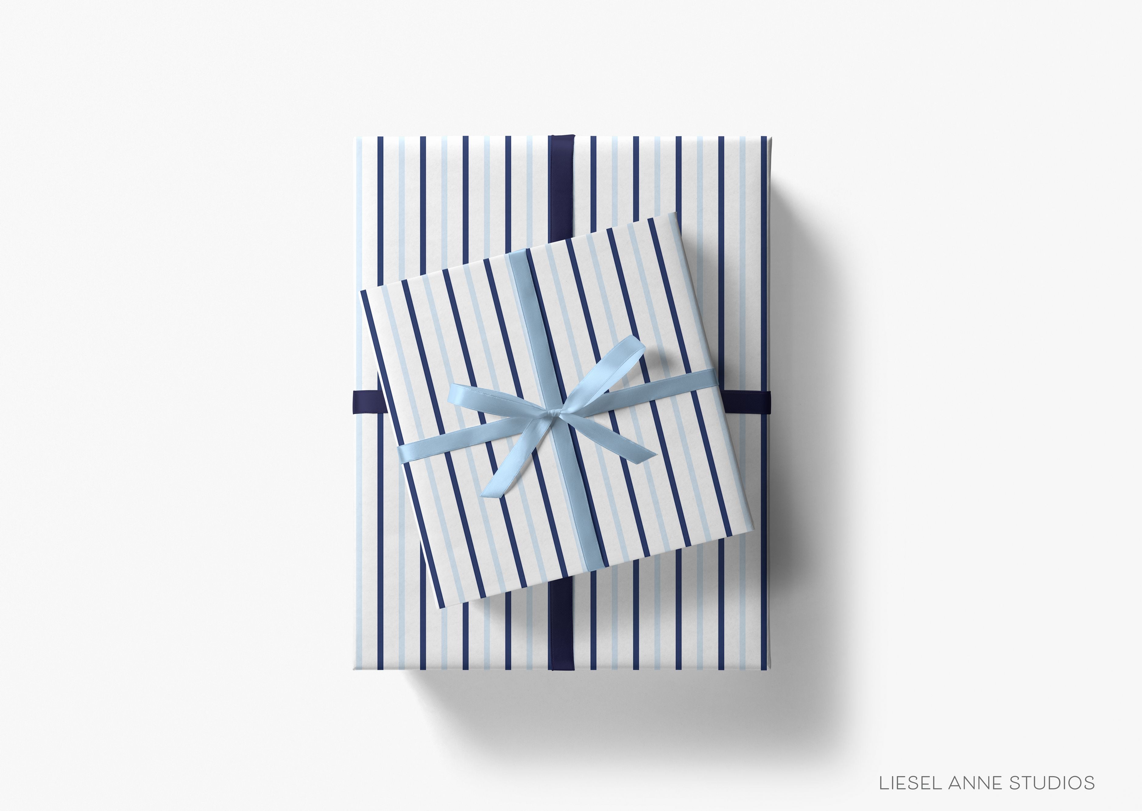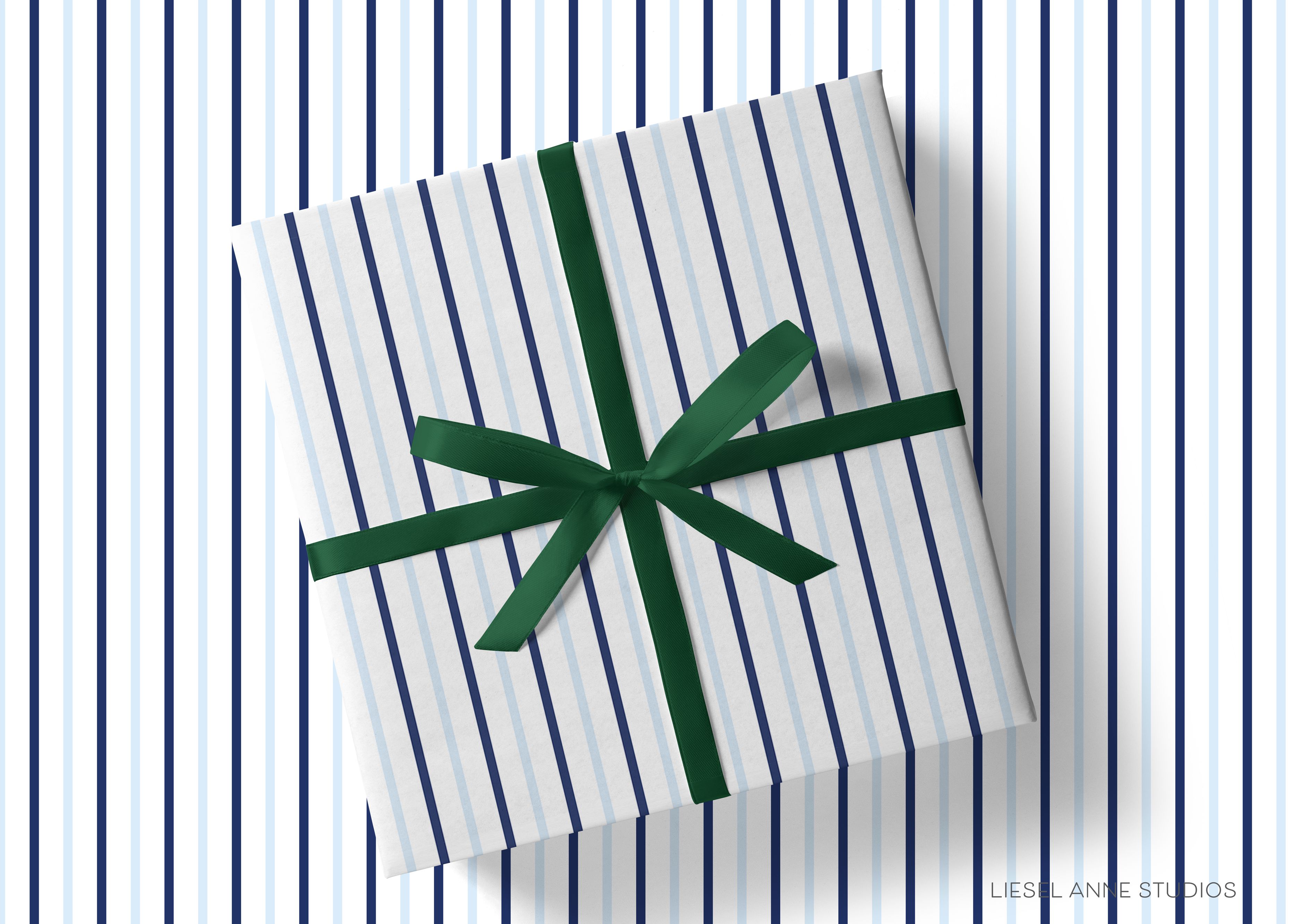Blue and White Stripe Gift Wrap | Birthday Wrapping Paper | Blue Holiday Wrapping Paper | Navy Blue, Light Blue and White Stripes | Baby Boy