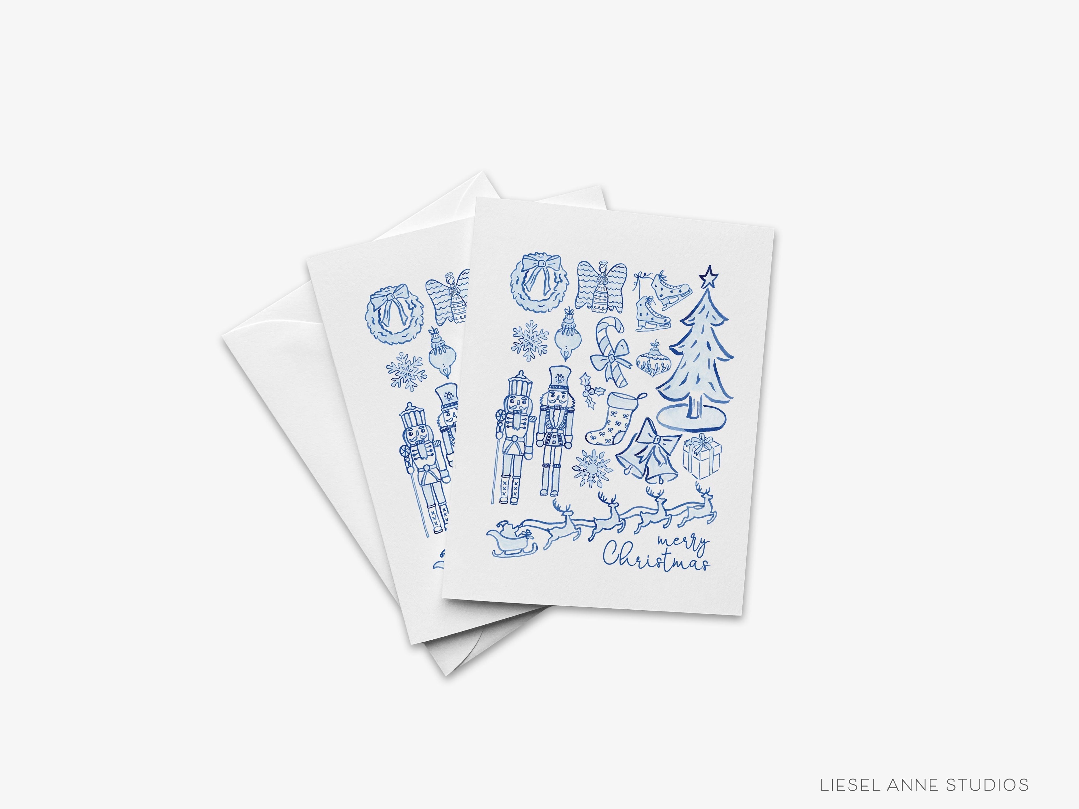 Toile Blue and White Christmas Greeting Cards | Modern Holiday Cards | Festive Toile Design | Elegant Christmas Stationery Set | Stylish Holiday Greetings