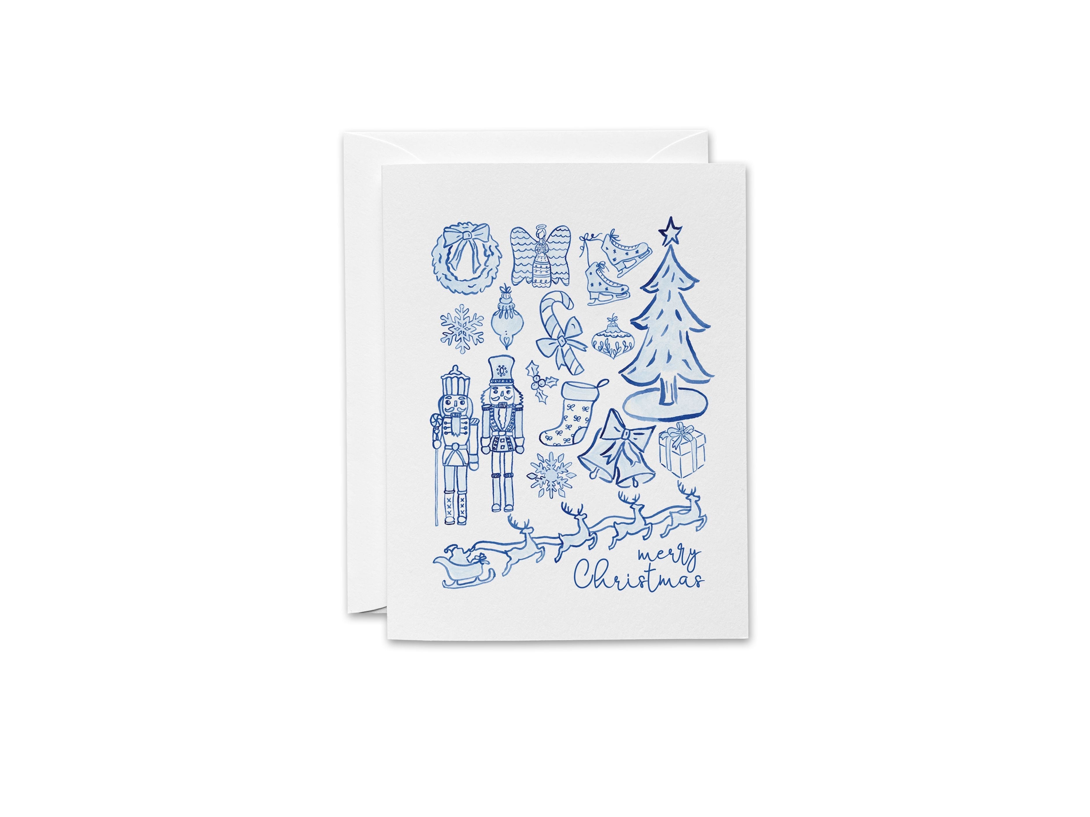 • Folded Blue and White Toile Christmas Card+ White Envelope