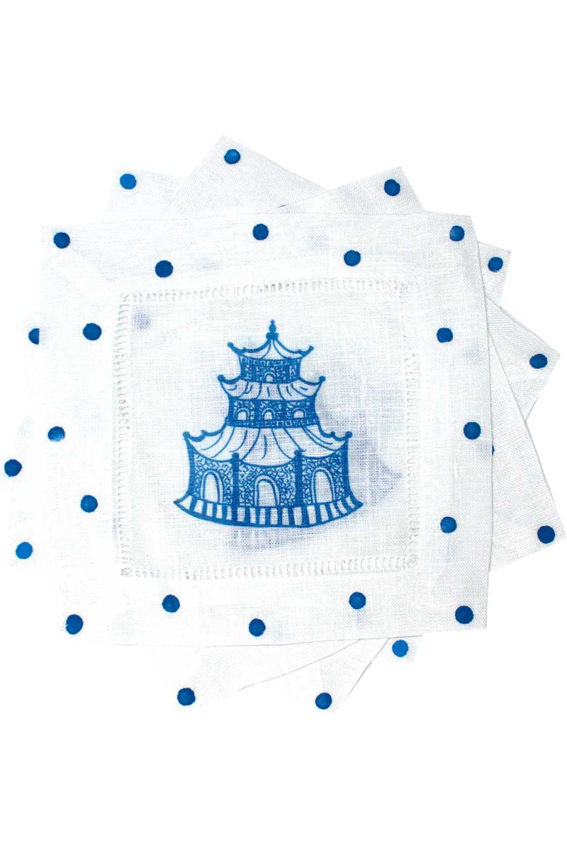 Blue Chinoiserie Pagoda Linen Cocktail Napkins