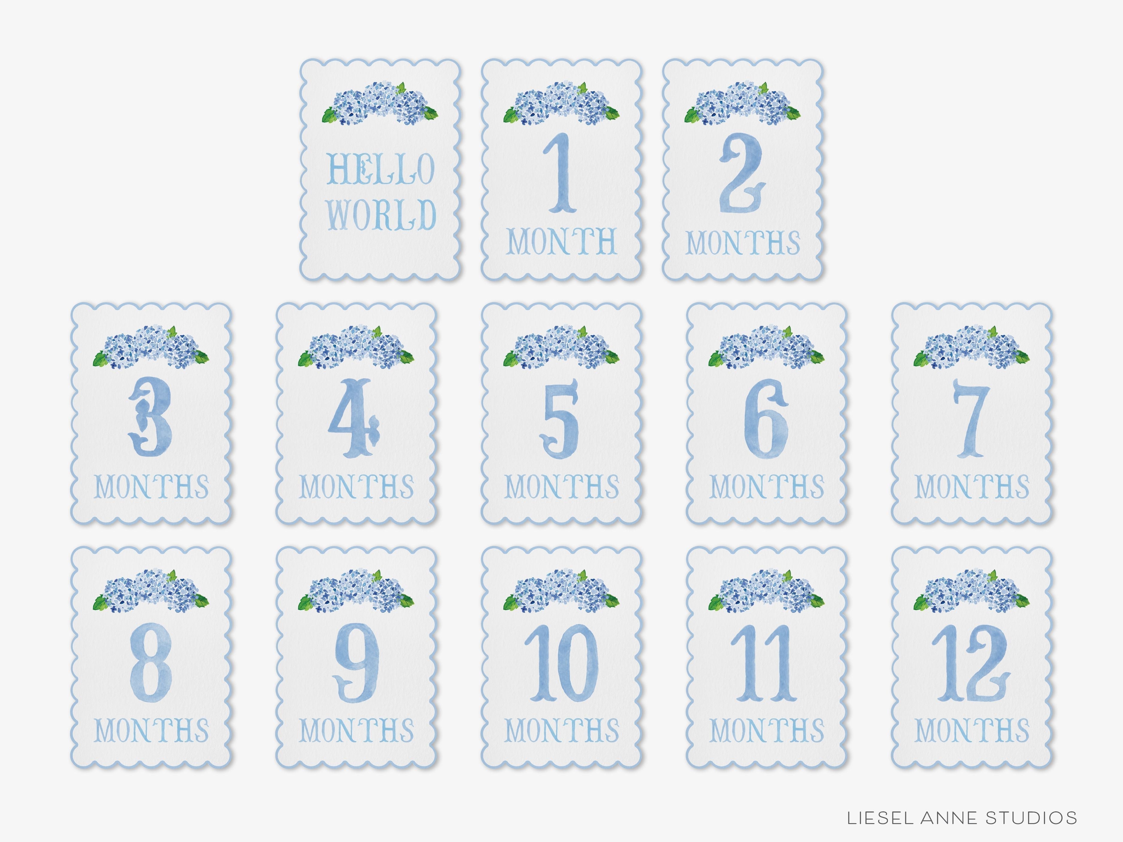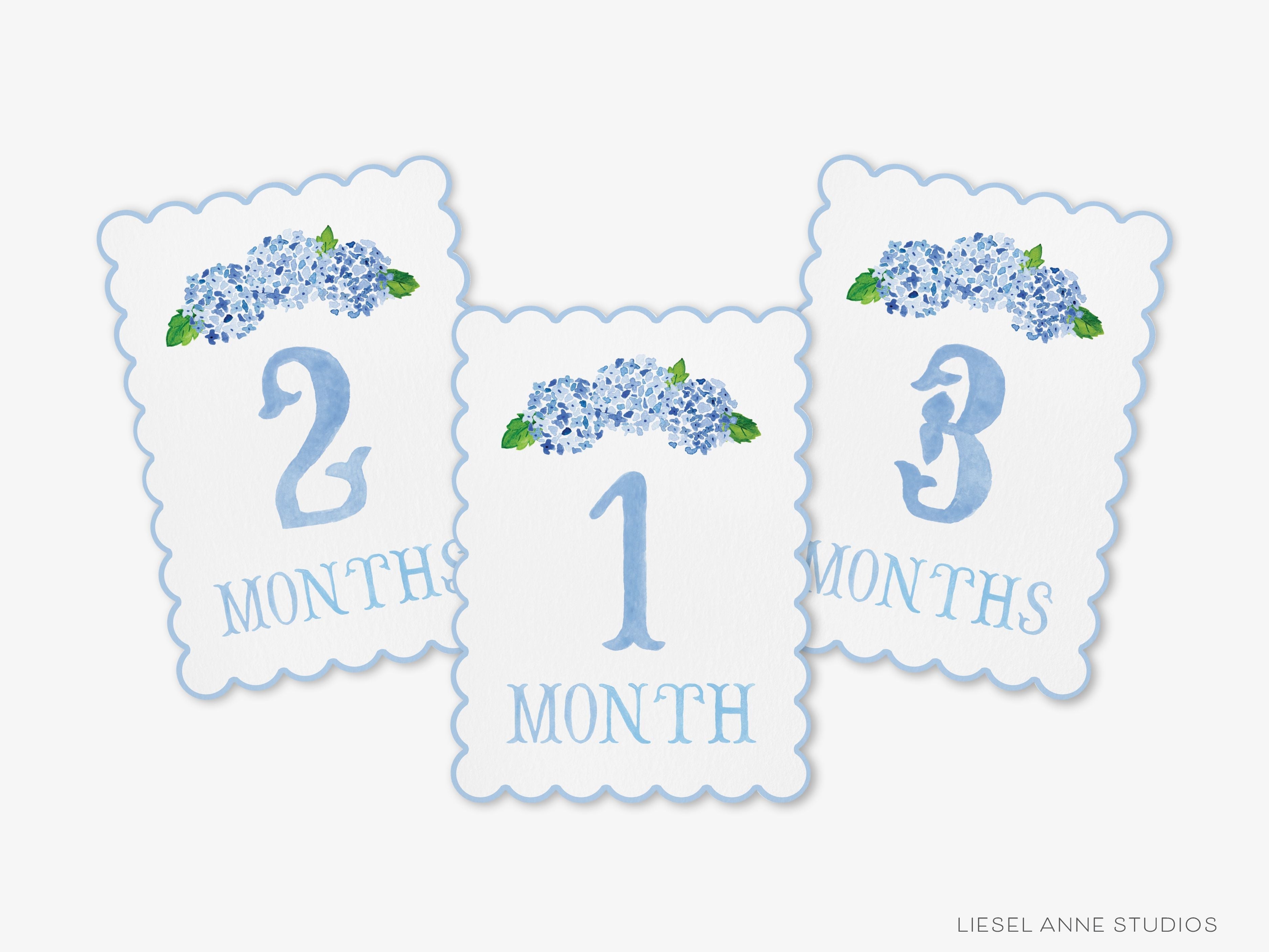 Blue Hydrangea Scalloped Monthly Milestone Cards