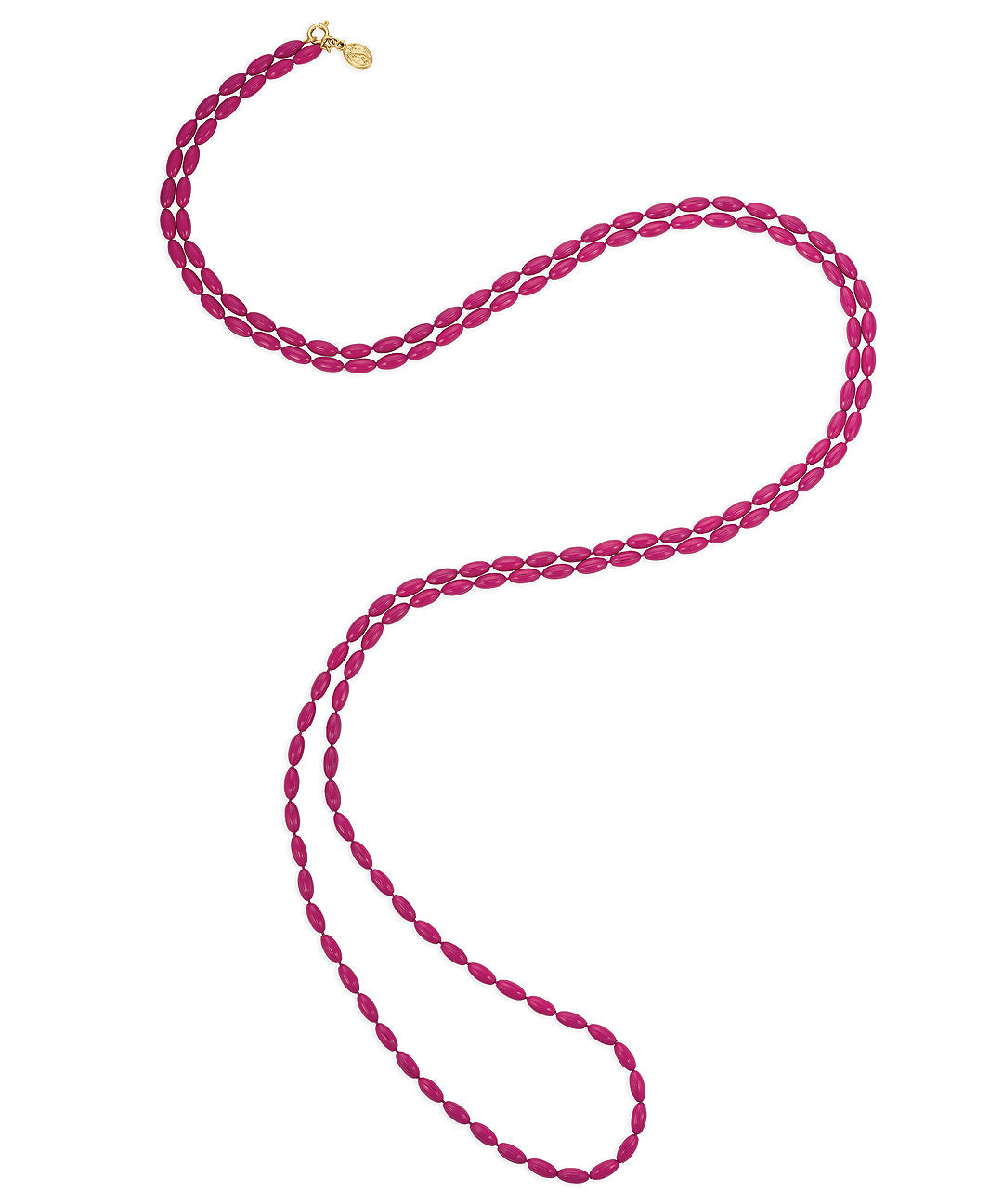 Our signature Charleston Rice Bead necklace in a versatile 5' length. These textured chains are a revival of a vintage, flapper style necklace that can be worn doubled, tripled or layered together with other colors and finishes. Brass chain with an electroplated finish. Trade them, share them and give them away - a bit of Southern Charm for everyone, everywhere and a fashion staple in Charleston and beyond. Each necklace comes in its own drawstring bag. Made in the U.S.A. and assembled in Charleston, SC.
