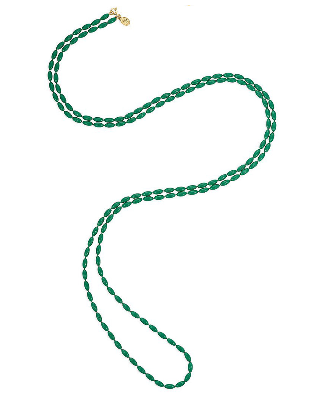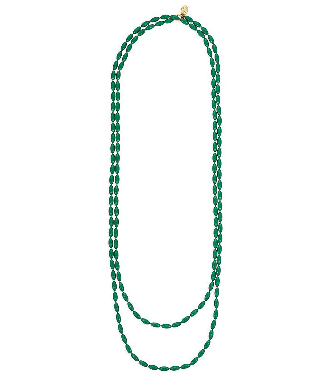 Our signature Charleston Rice Bead necklace in a versatile 5' length. These textured chains are a revival of a vintage, flapper style necklace that can be worn doubled, tripled or layered together with other colors and finishes. Brass chain with an eco-friendly, powder coated finish. Trade them, share them and give them away - a bit of Southern Charm for everyone, everywhere and a fashion staple in Charleston and beyond. Each necklace comes in its own drawstring bag. Made in the U.S.A. and assembled in Charleston, SC.