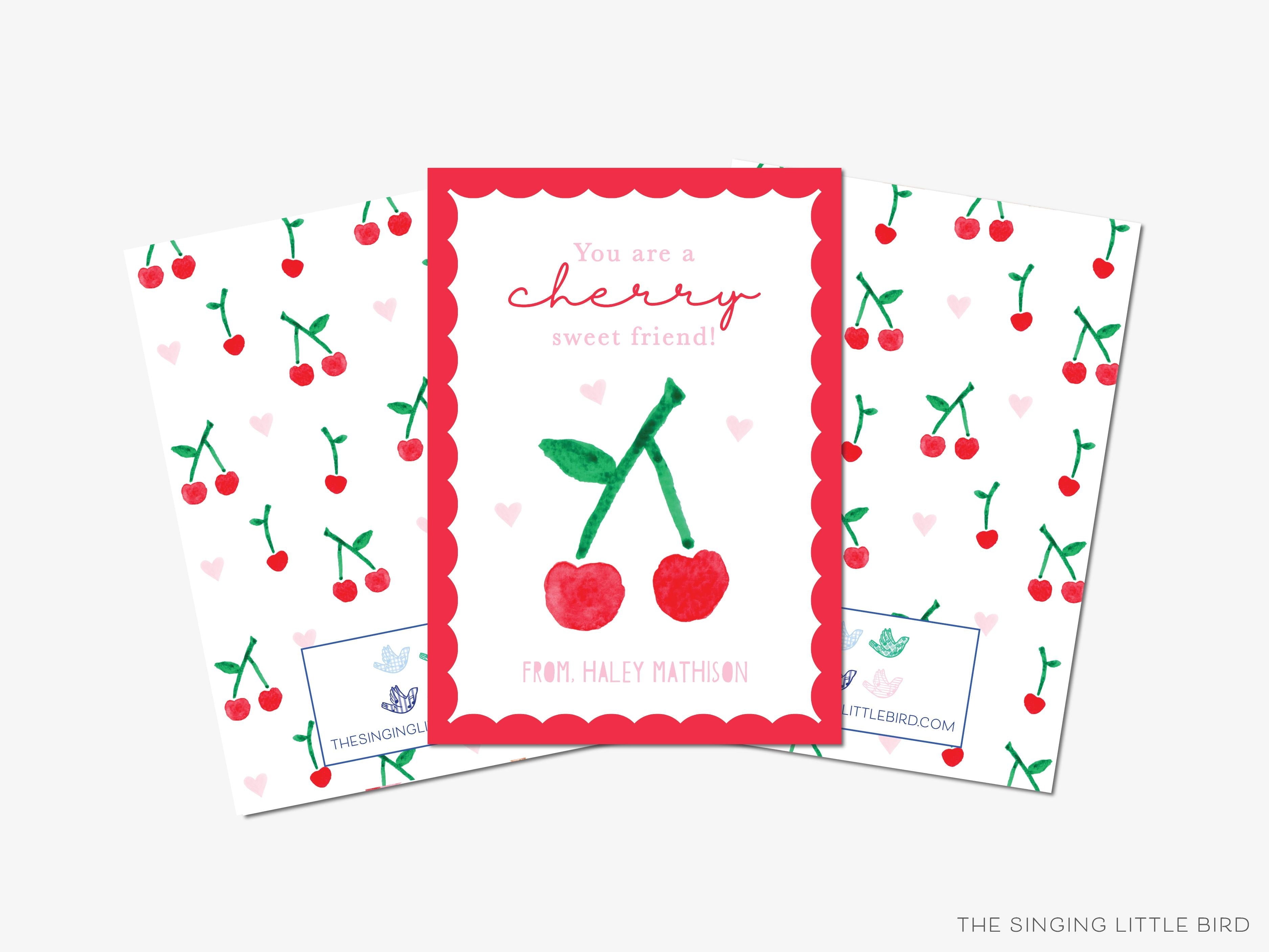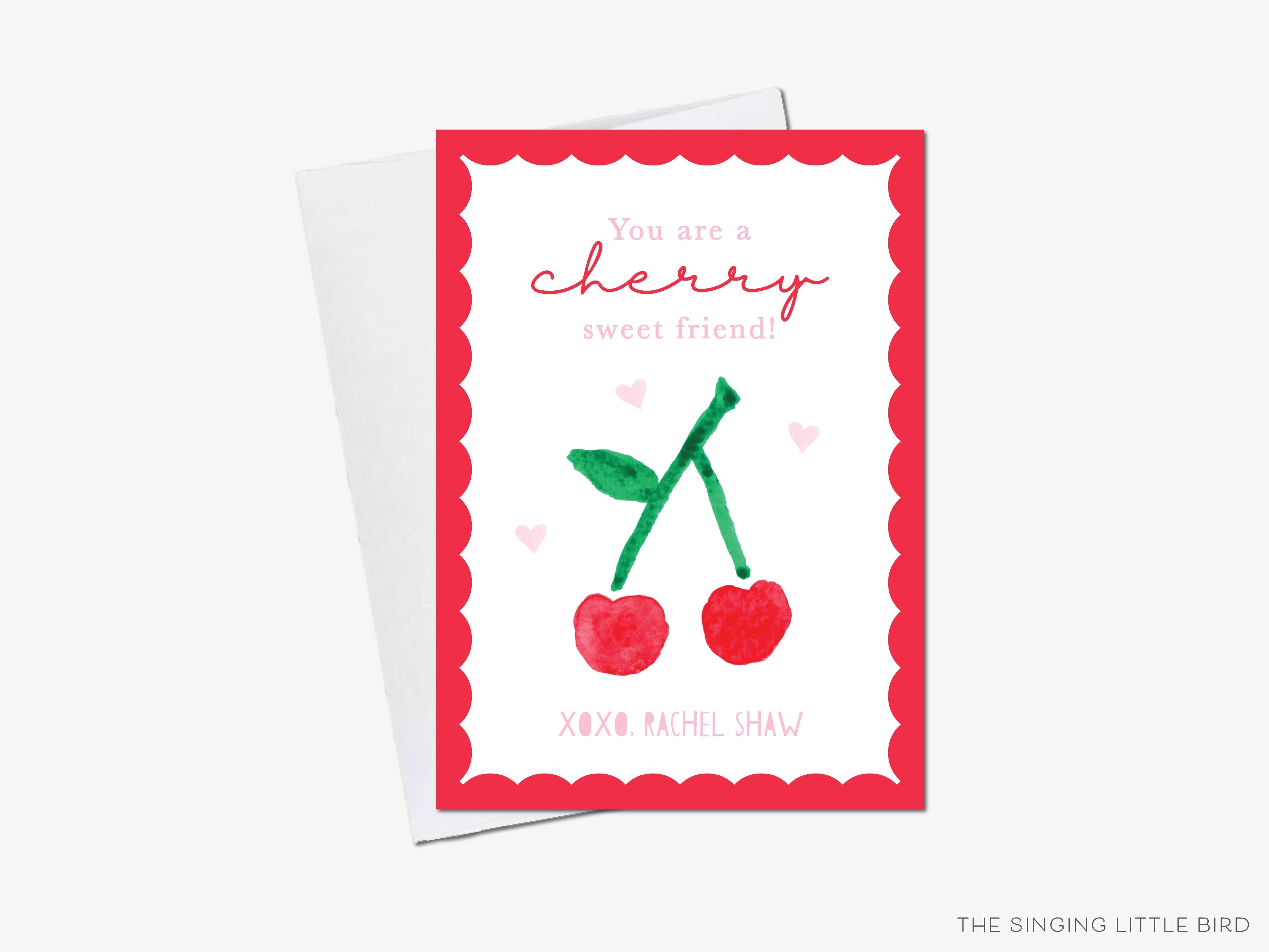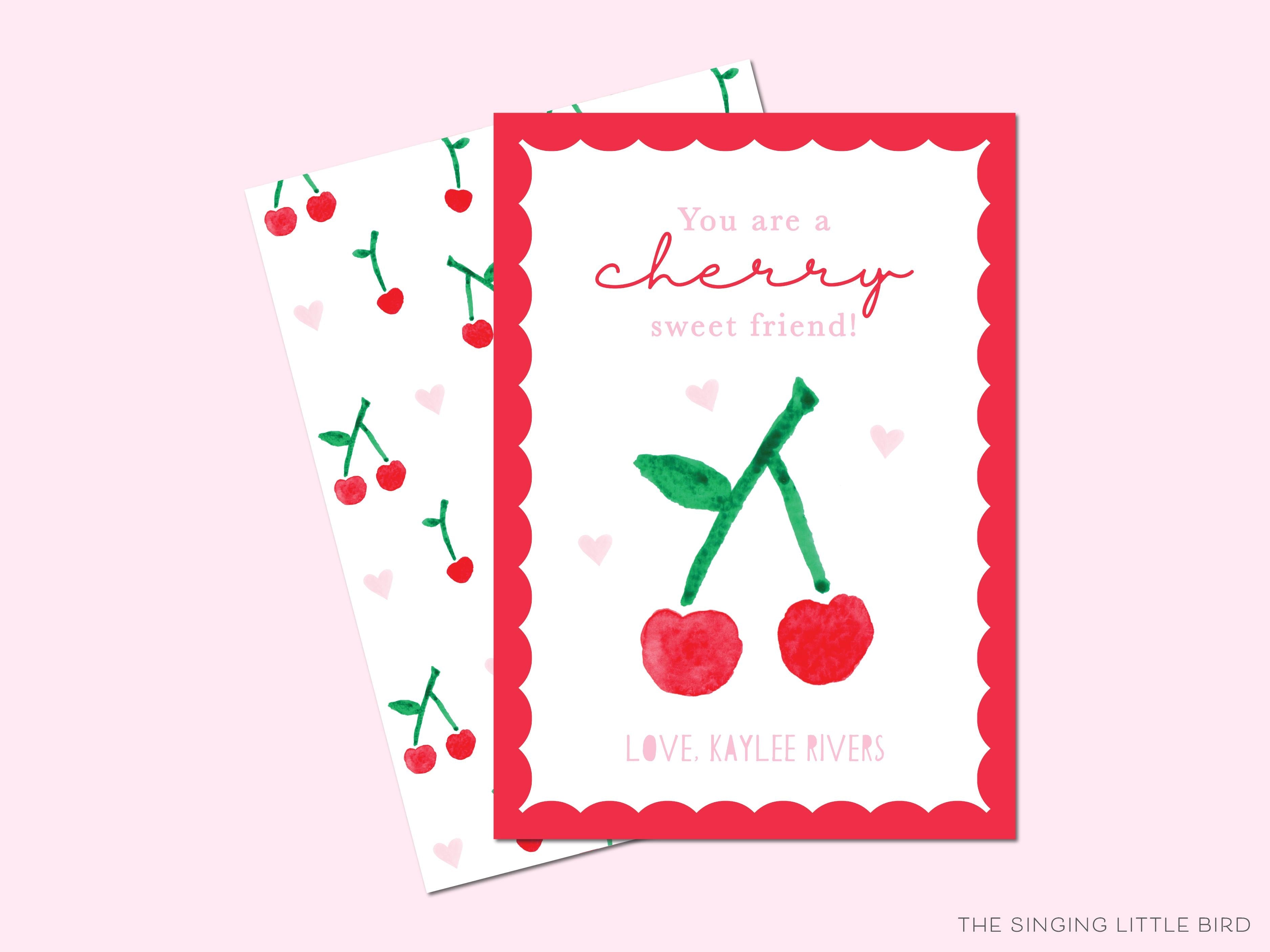 Personalized Kids Valentine Cards for School | Cherry Pun Valentine's Day Cards | Classroom Valentines | You're A Cherry Sweet Friend | Red