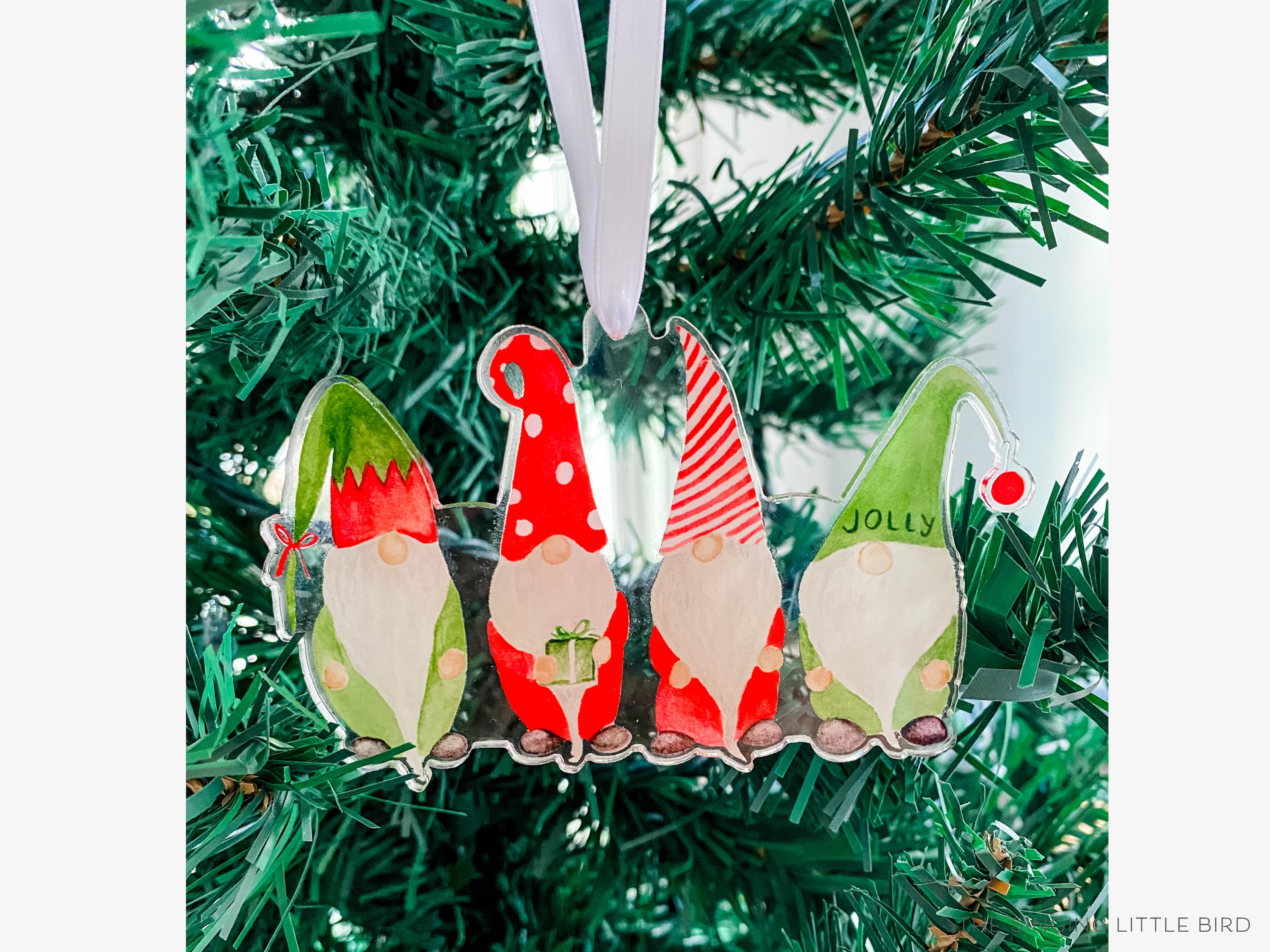 Christmas Gnomes Ornament | Watercolor Acrylic Christmas Ornament | Gnome Lover | Stocking Stuffer | Hand-Painted Santa Gnomes Keepsake