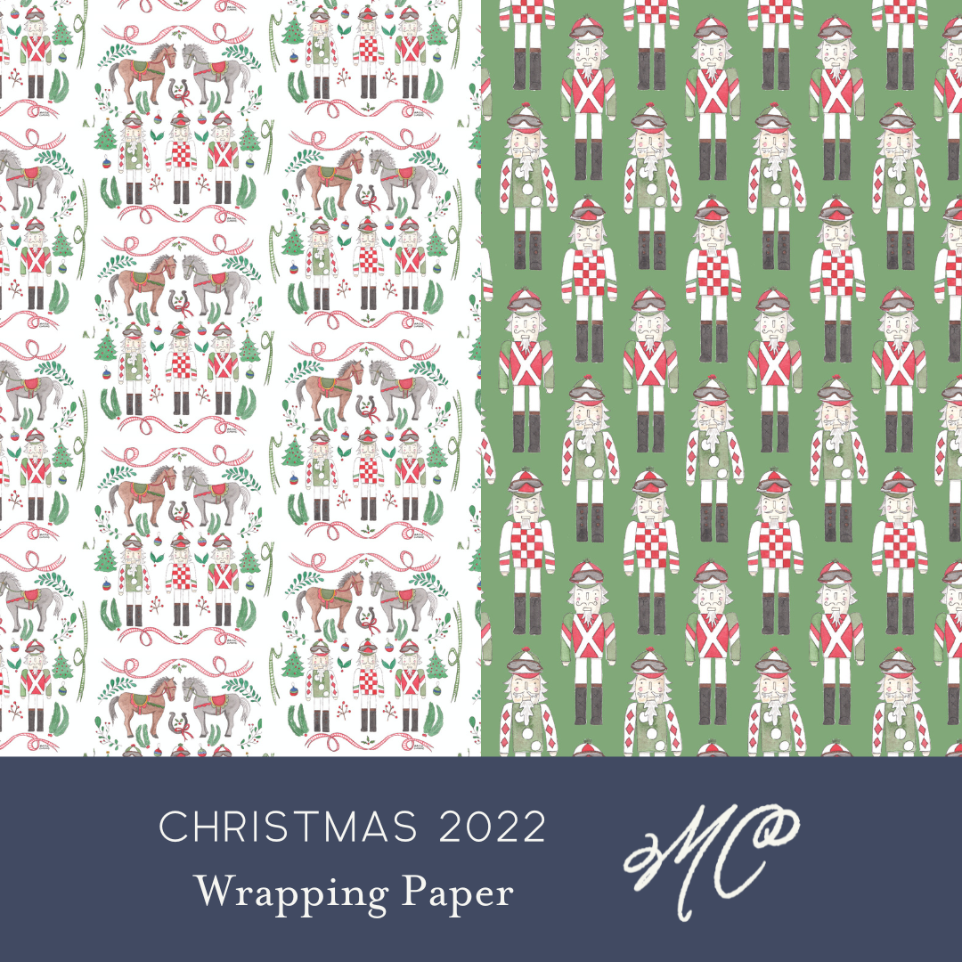 Equestrian Nutcracker double-sided custom printed wrapping paper sheets, perfect for sprucing up gifts for the holidays, birthdays, or "just because."