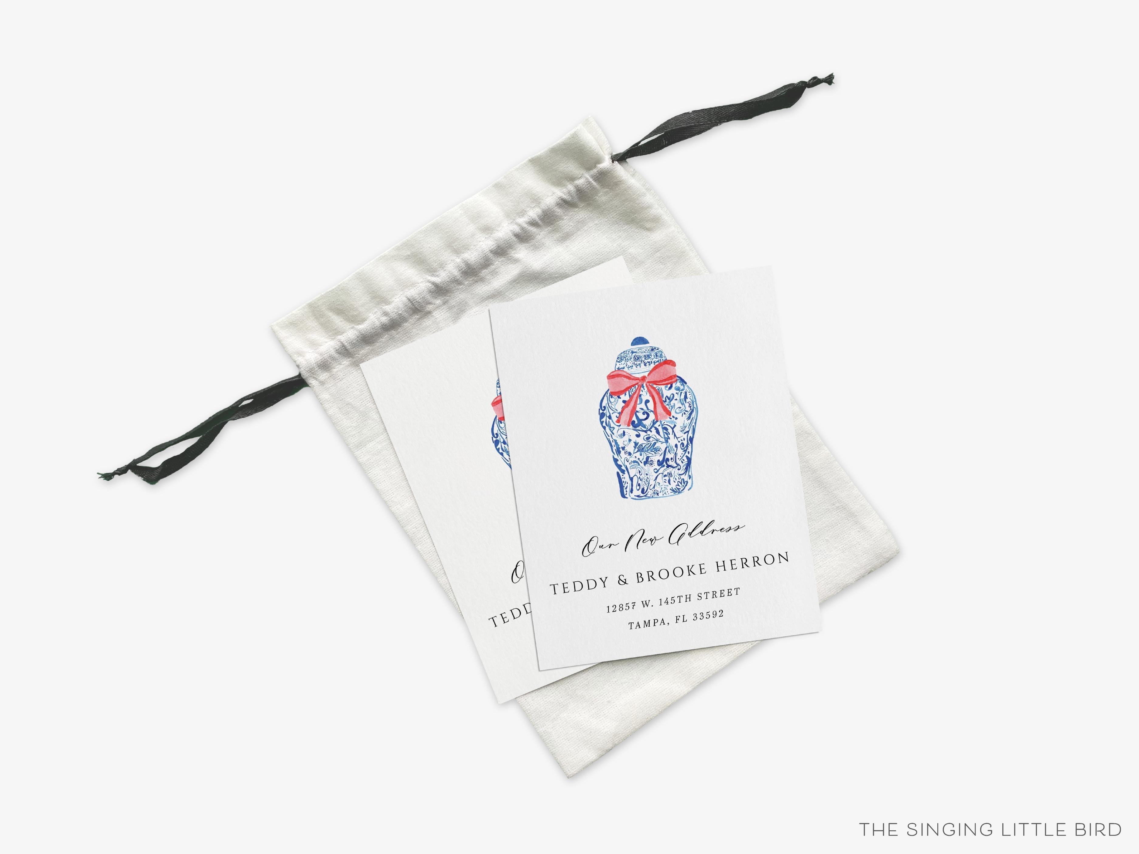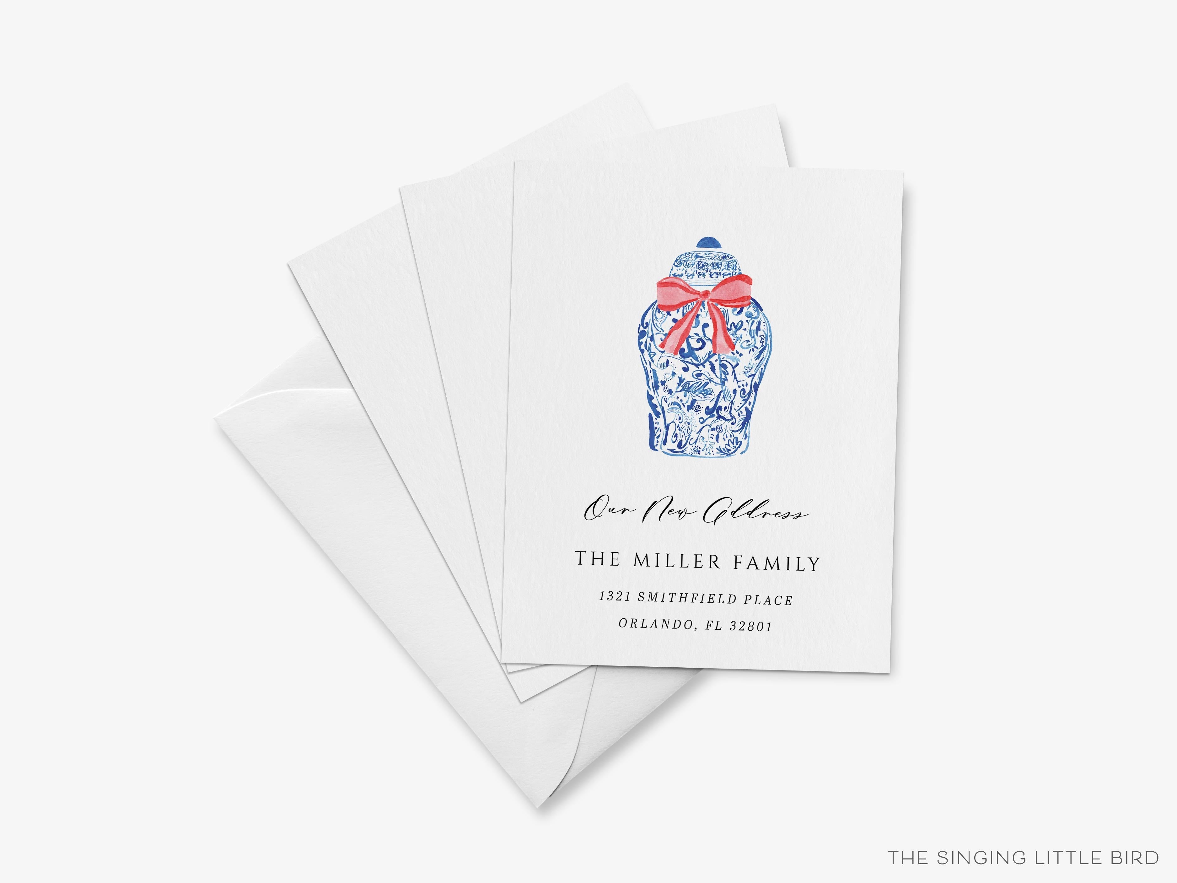 Ginger Jar Christmas Moving Announcement | Change of Address Card | We've Moved Cards | New Home Bow | Watercolor Art Moving | Chinoiserie