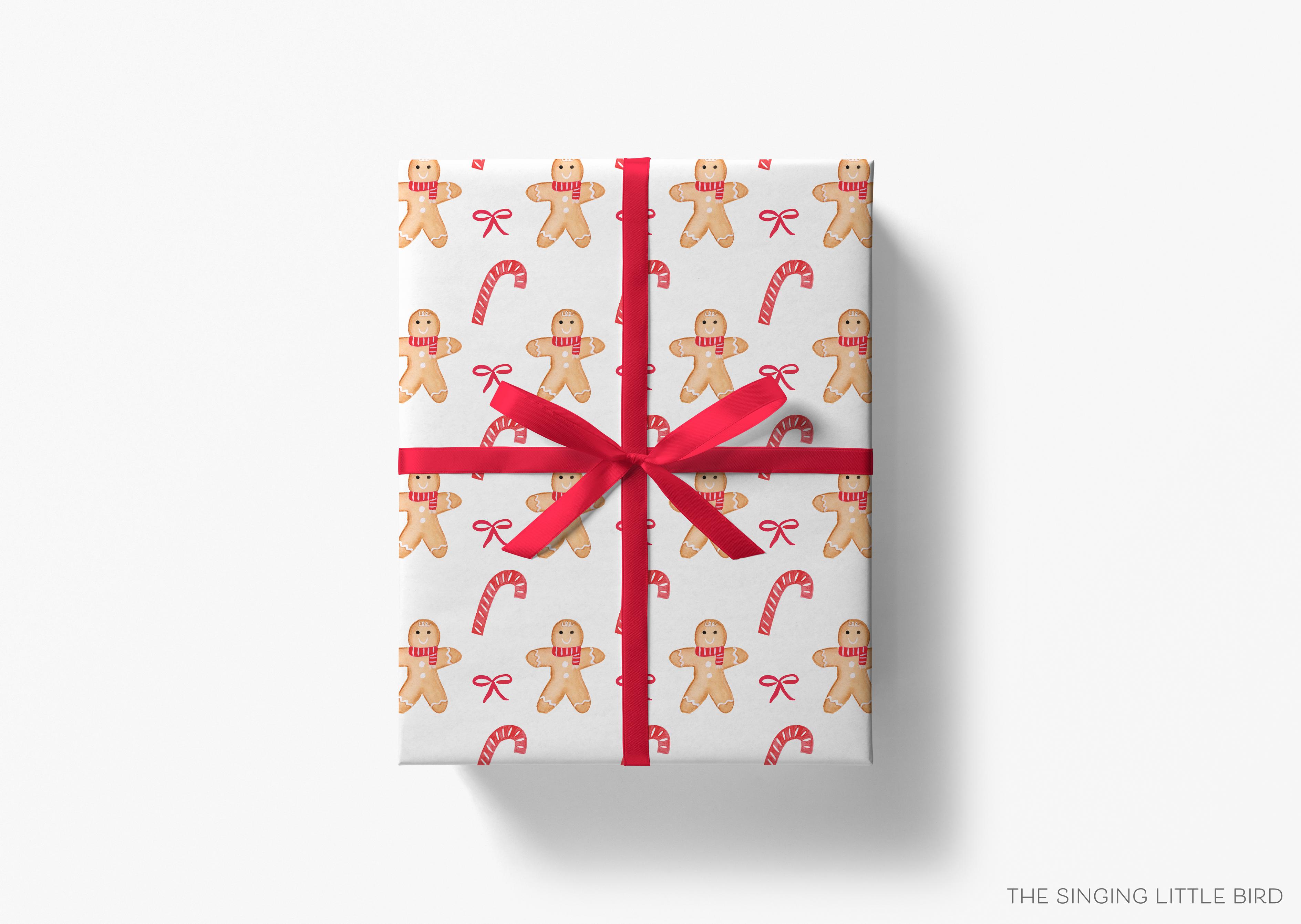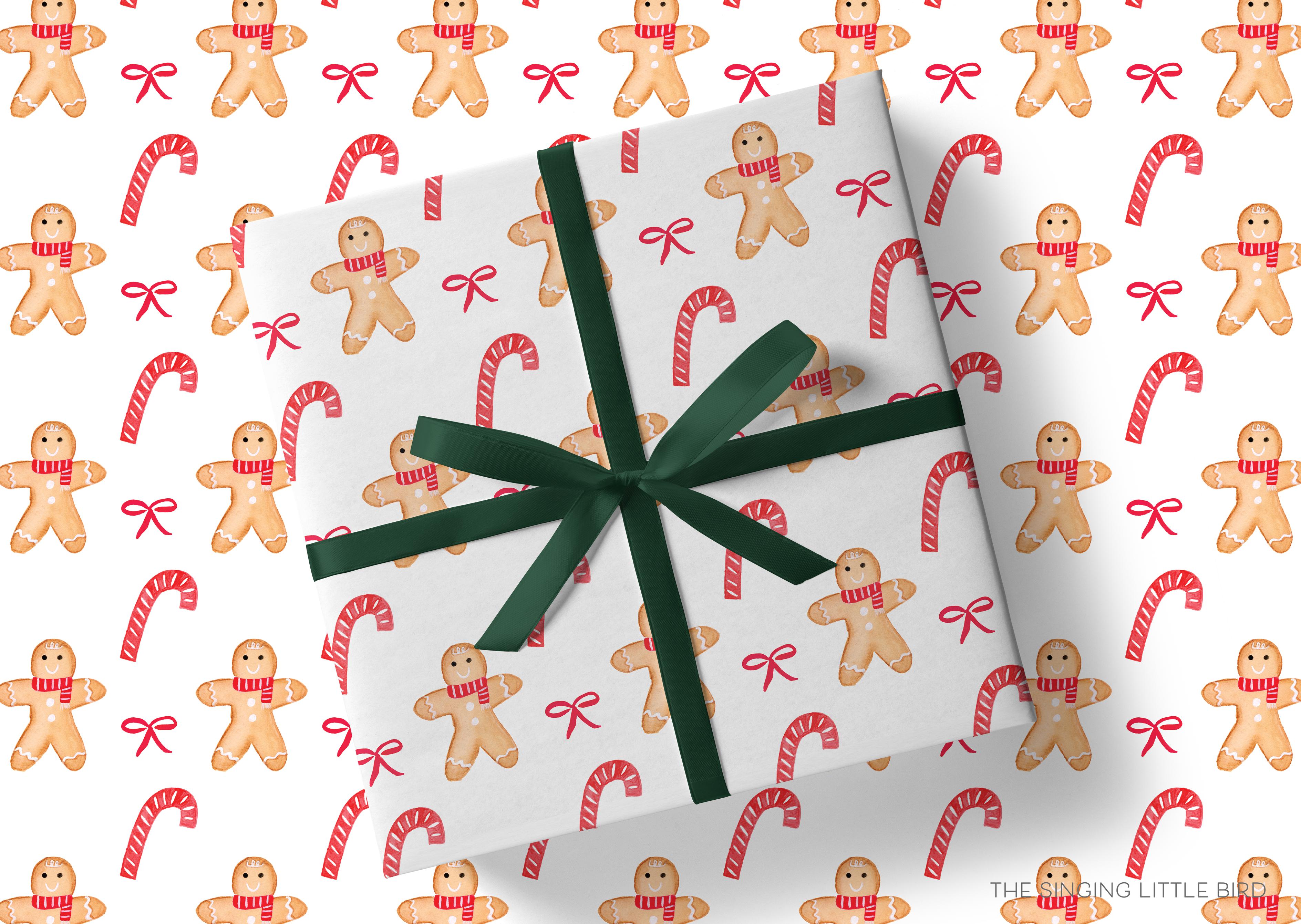 Gingerbread Wrapping Paper | Candy Cane Wrapping Paper | Christmas Wrapping Paper | Christmas Decor | Holiday Gift Wrap | Red Bow Gift Wrap