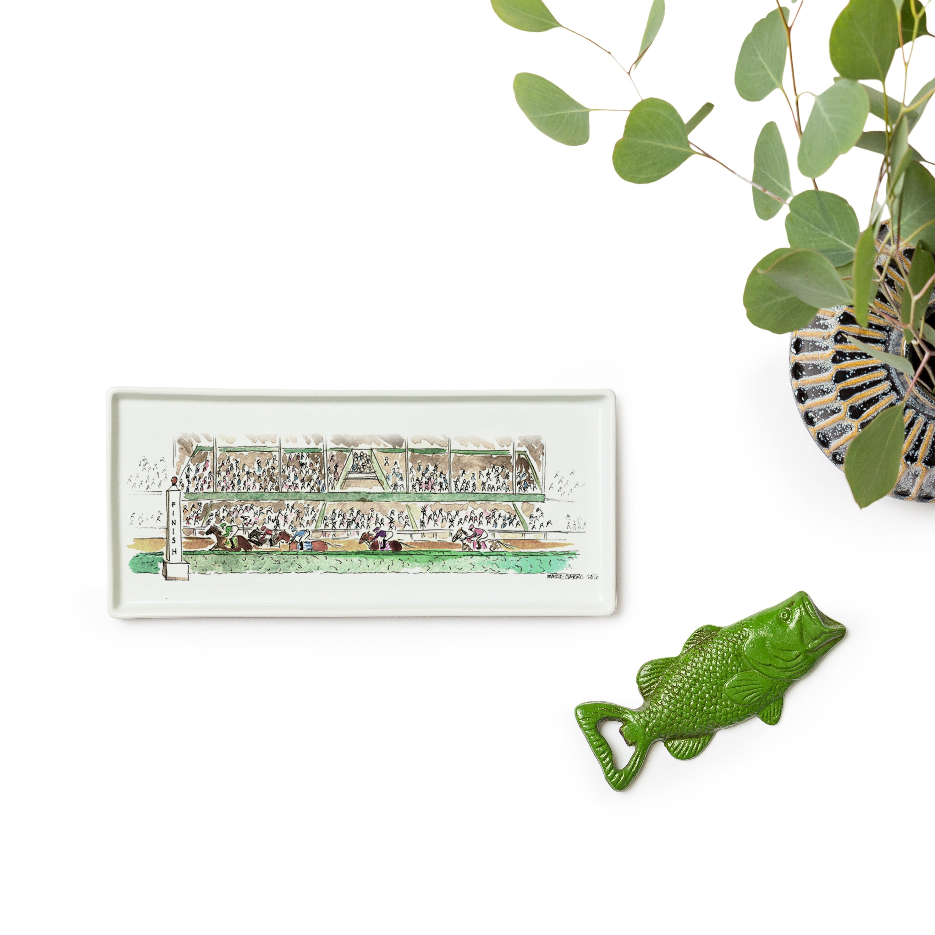 This sleek porcelain rectangular tray features original artwork featuring the grandstands and the home stretch.