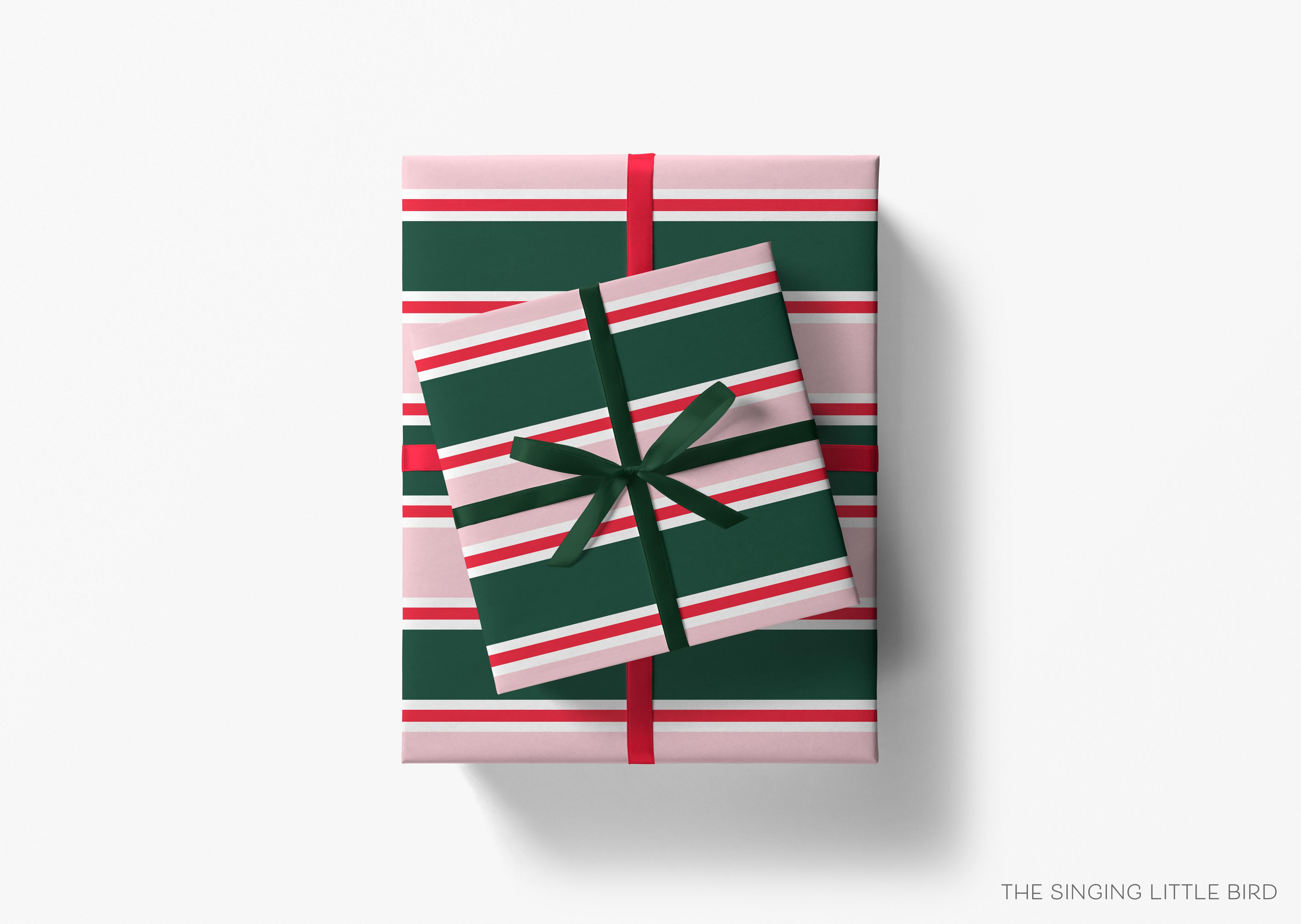 Green, Blush and Red Stripe Christmas Gift Wrap