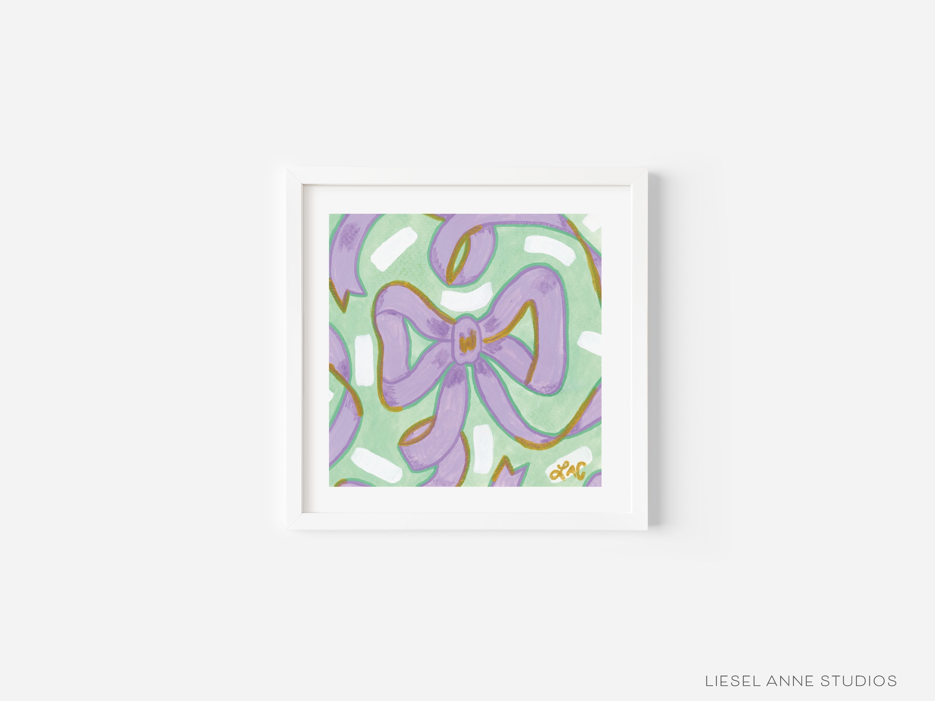 Green & Lavender Golden Bows Art Print [5x5]