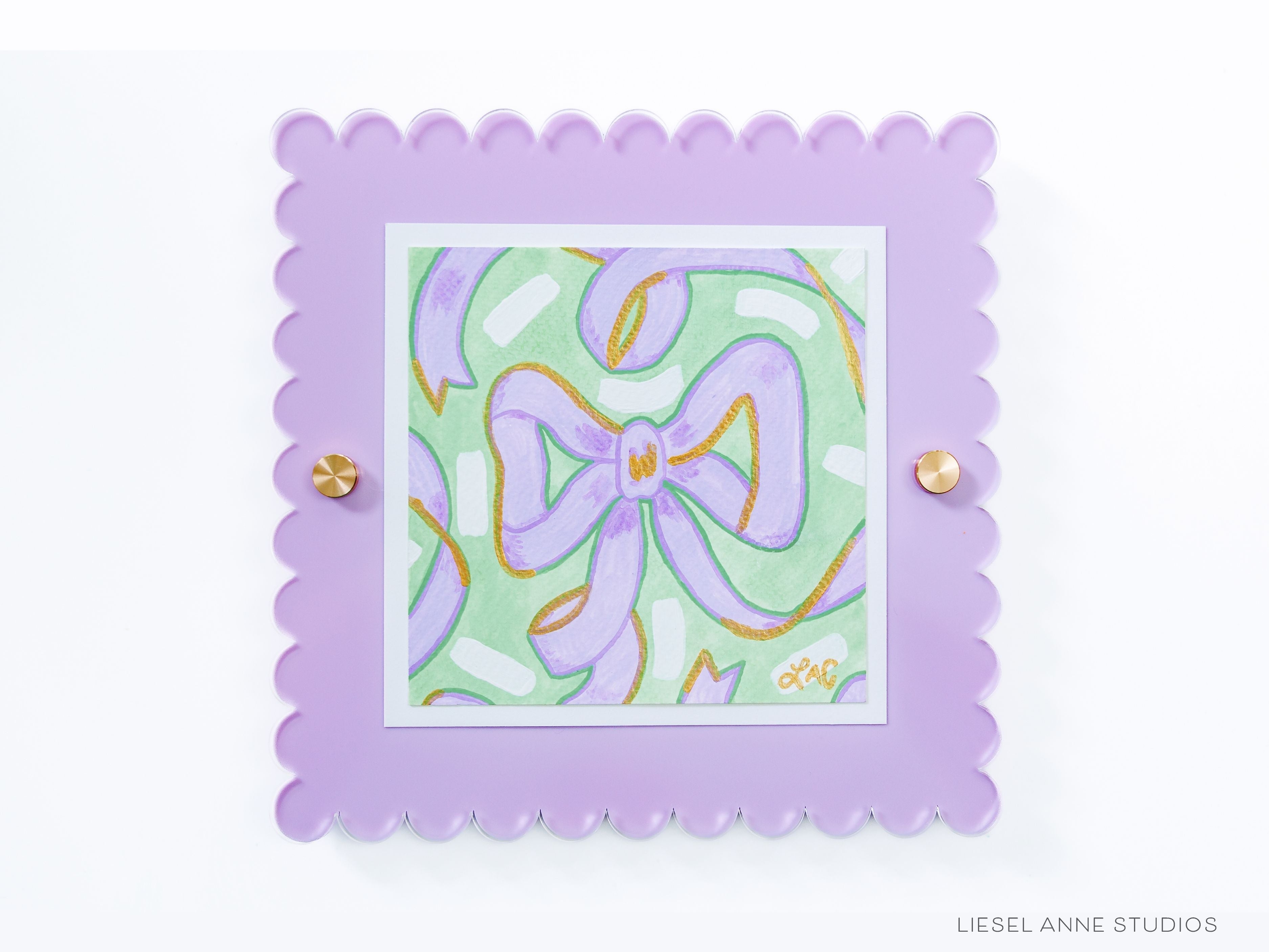 - The print features our signature Lavender golden bows with a light green base and hand painted gold embellishments