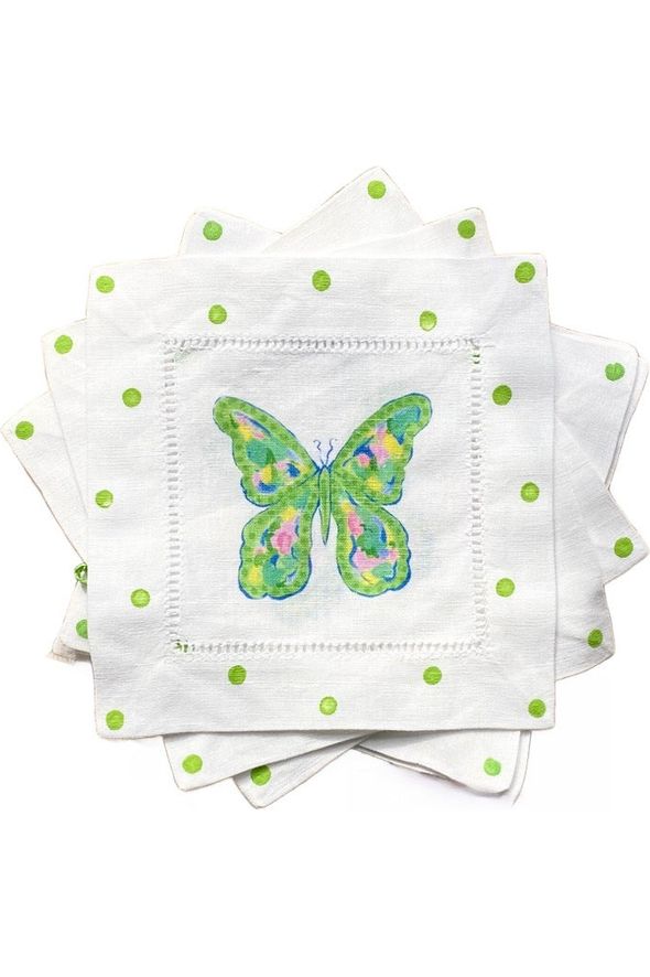 Butterfly linen cocktail napkins are the perfect addition to spring cocktail parties.