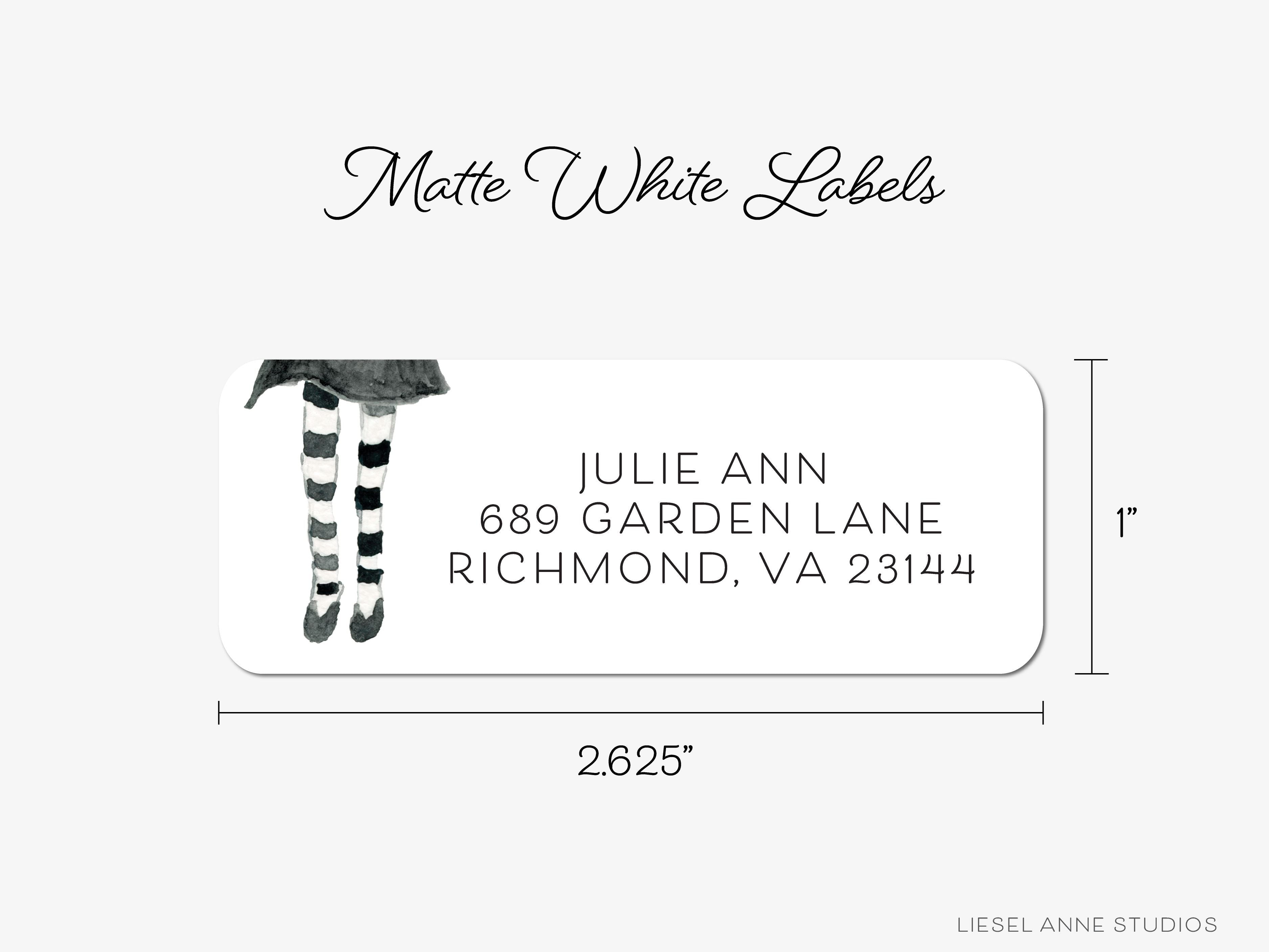 • White Matte Halloween Girl Return Address Labels that come in sets of 60+
