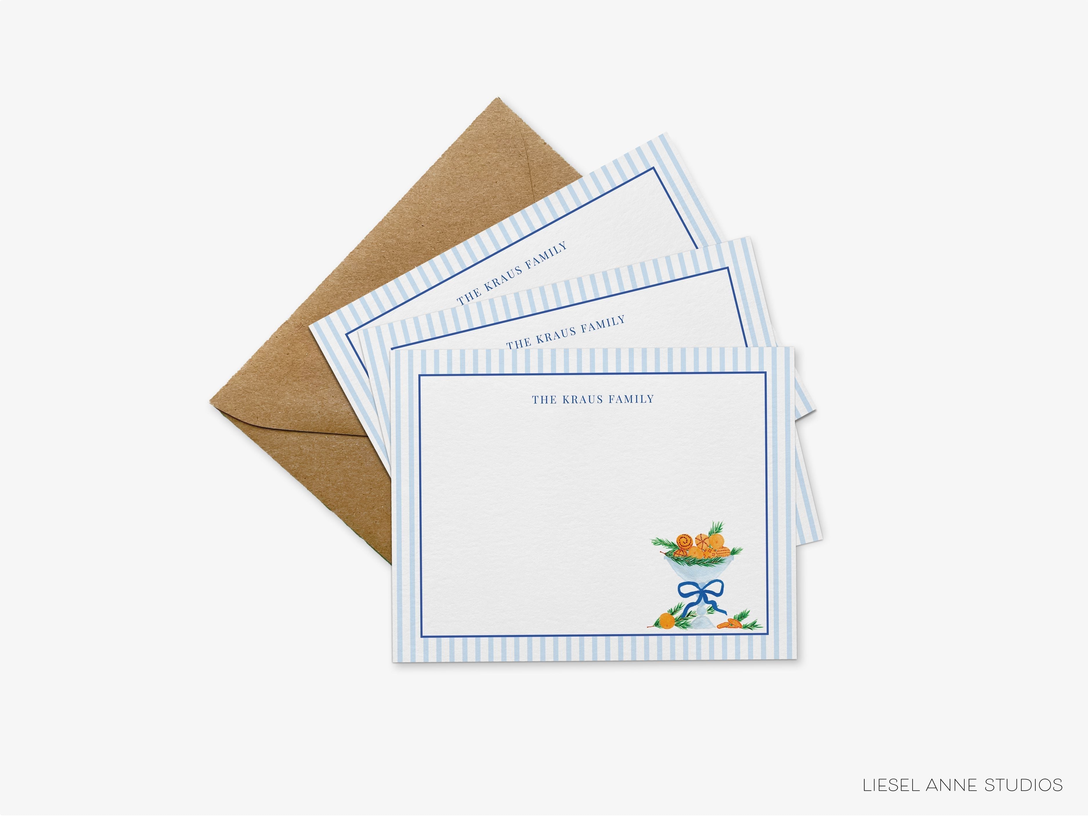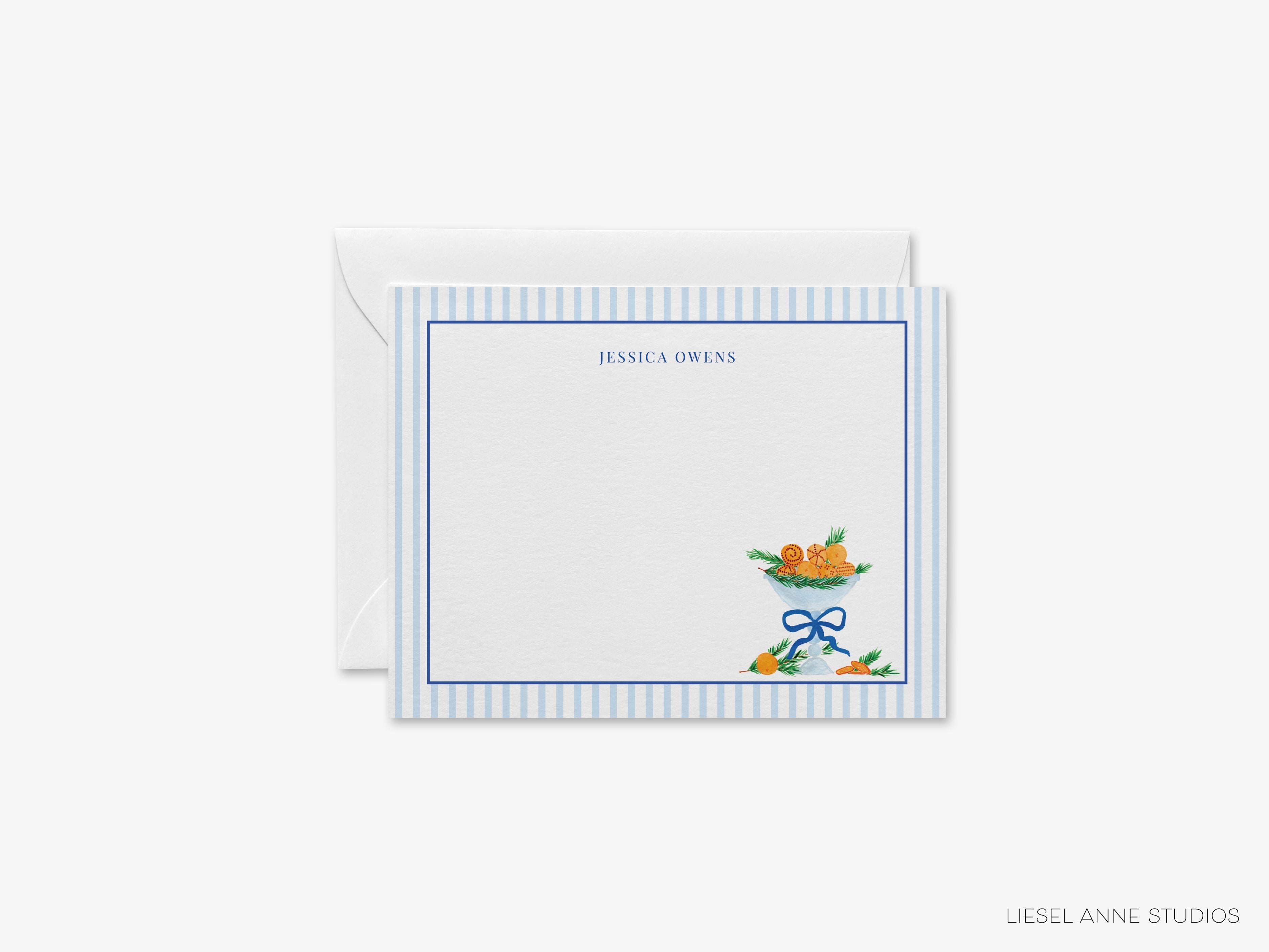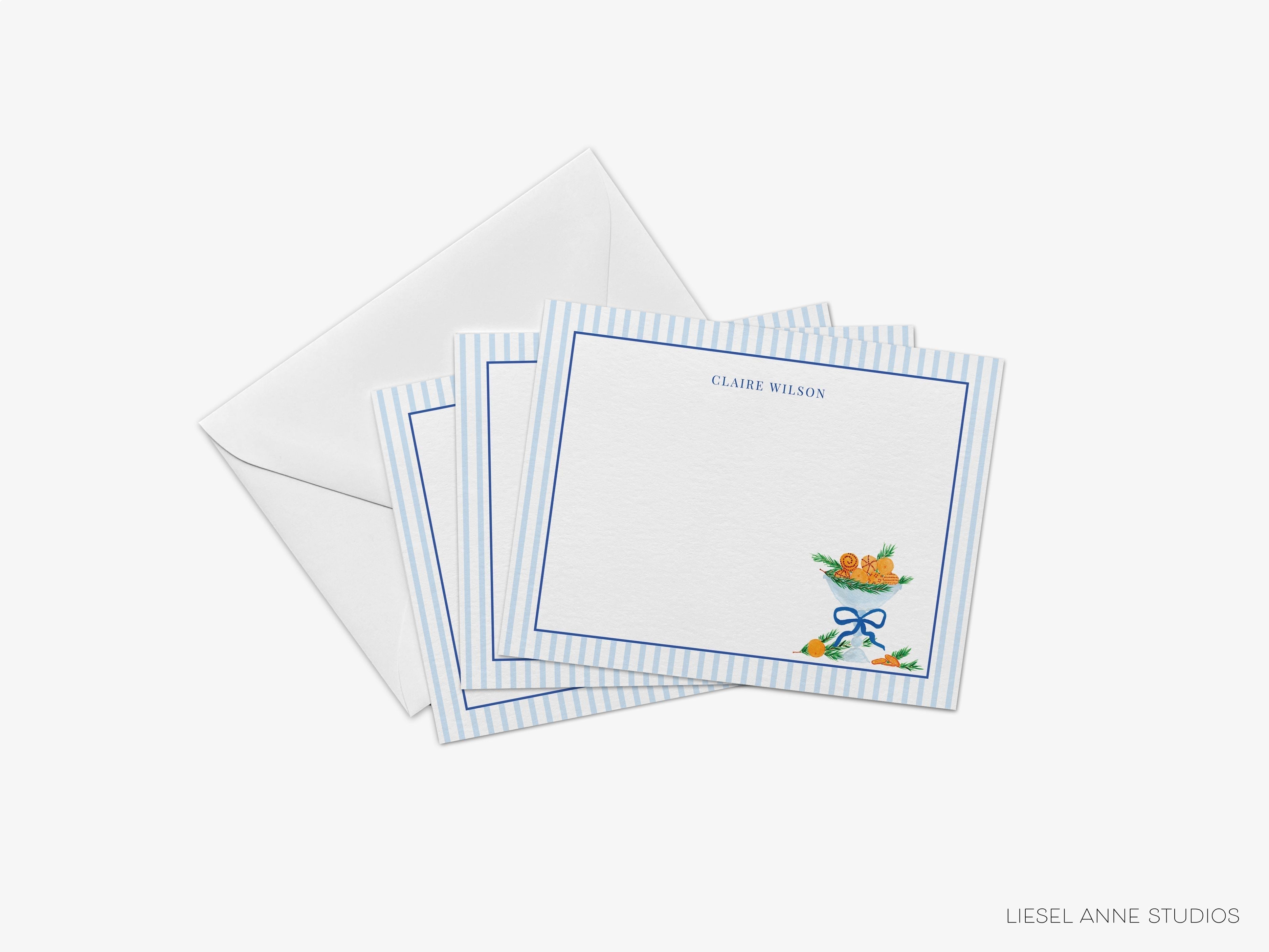 Orange Clove Holiday Bowl Personalized Stationery | Blue Bow Notecards | Thank You Notes | Hostess Gift | Decorative Glass Flat Notes | Watercolor Pomanders