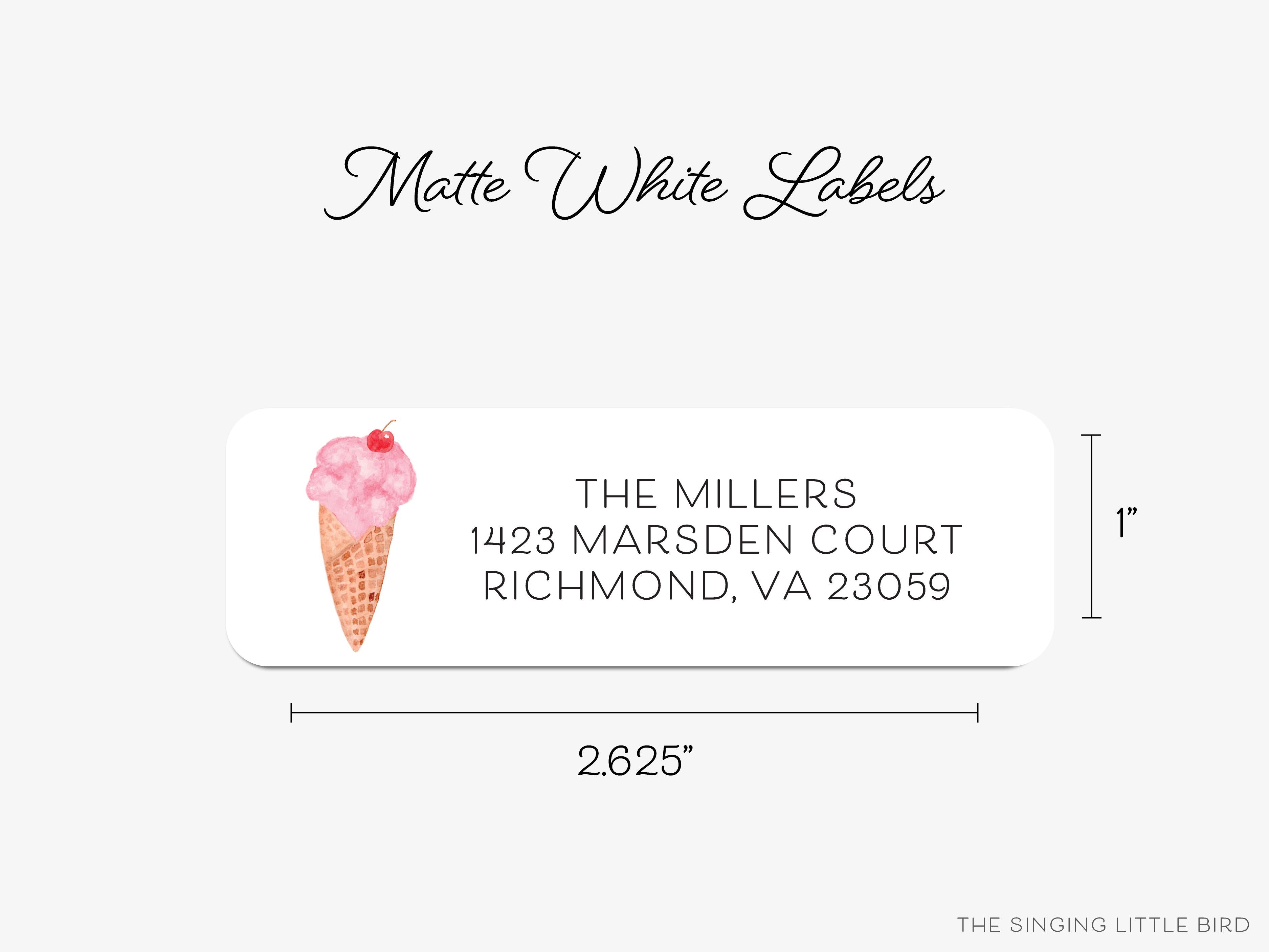 Ice Cream Return Address Labels PRINTED | White Matte Address Envelope Labels | Personalized Labels | Summer Mailing Stickers Ice Cream Cone