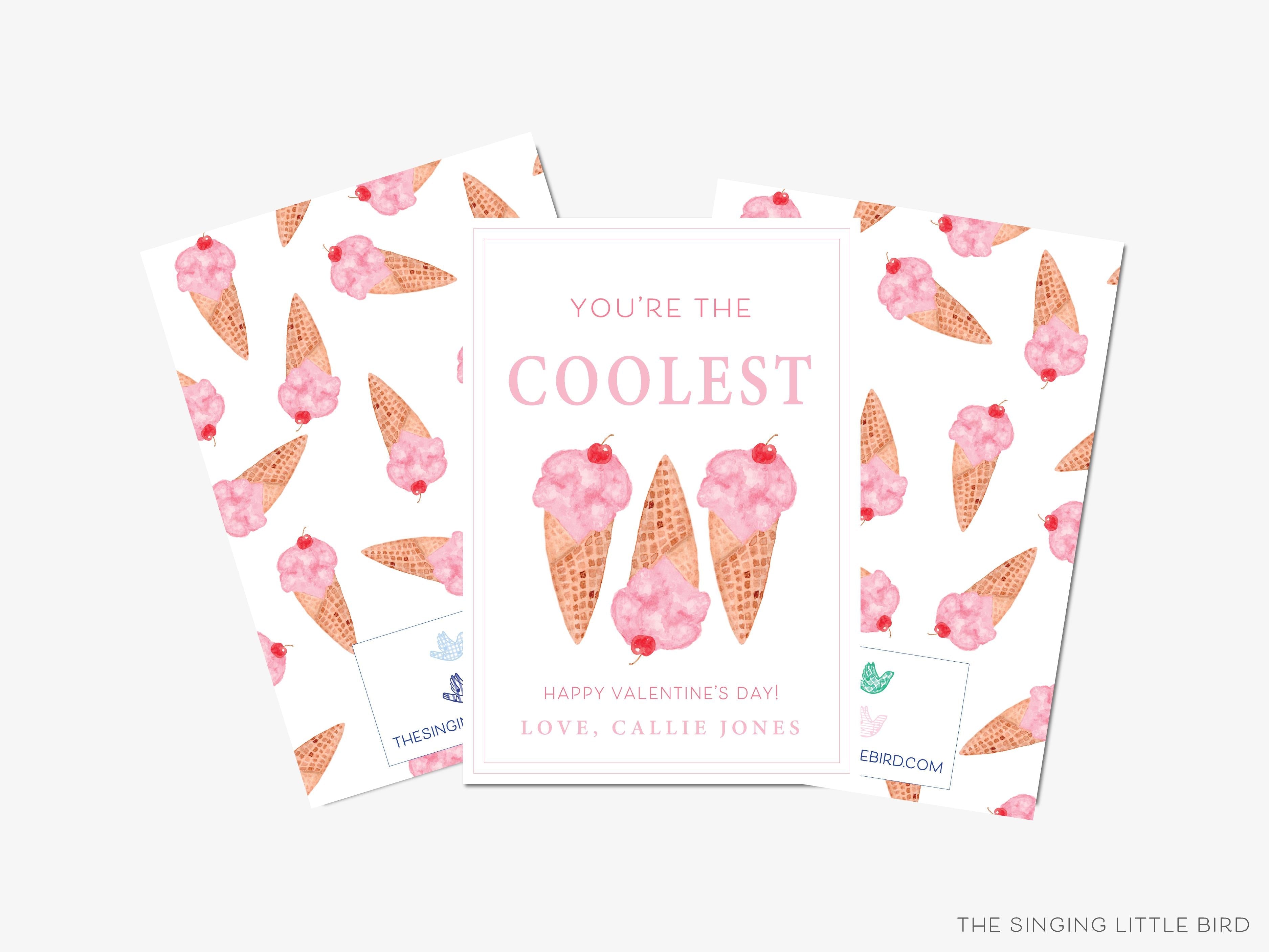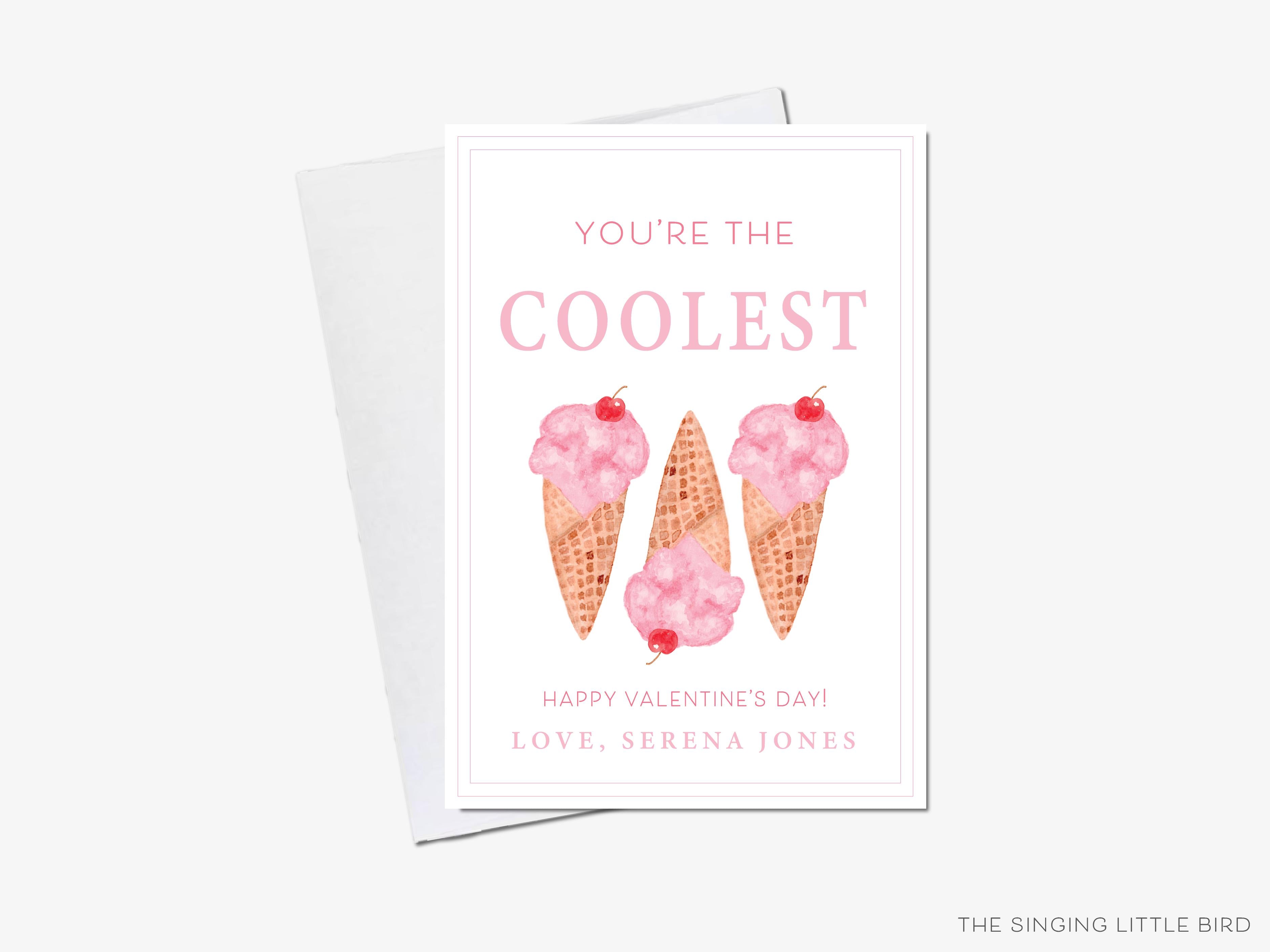 Personalized Kids Valentine Cards for School | Ice Cream Valentine's Day Cards | Classroom Valentines | Cute Girly Pun | You're The Coolest