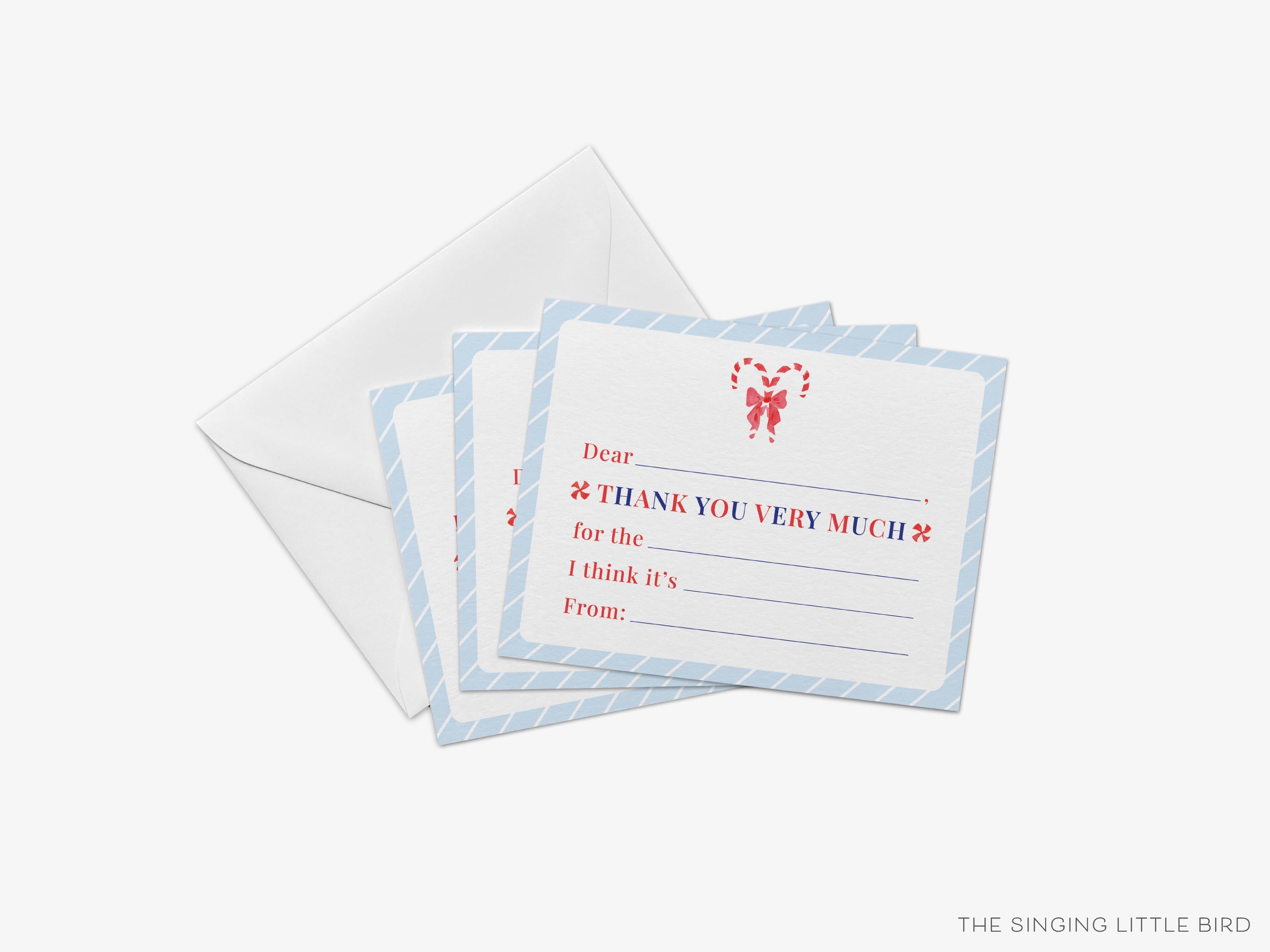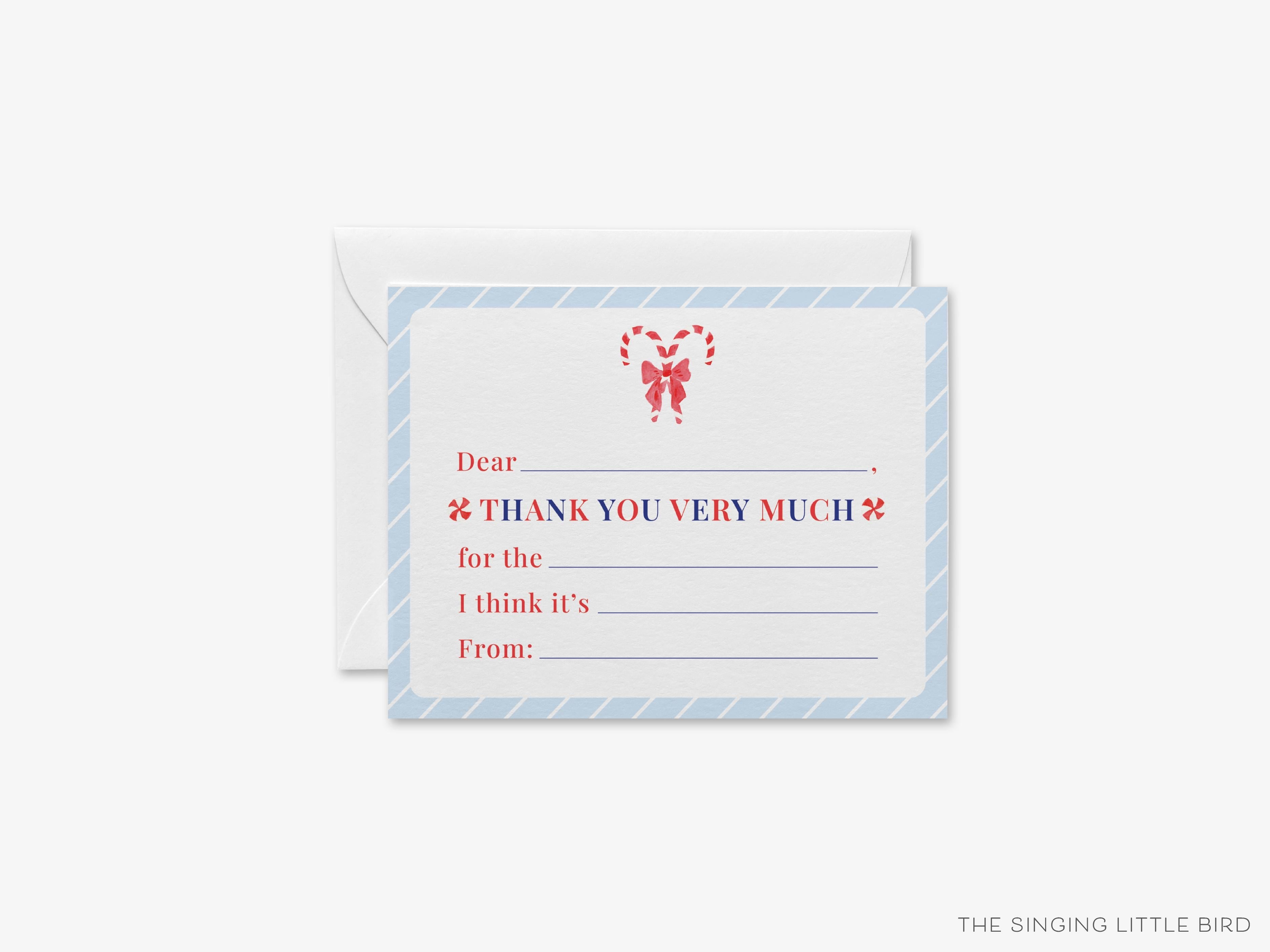 • Sets of Kids Cany Cane Fill In The Blank Thank You Flat Note Cards + White or Kraft Envelopes