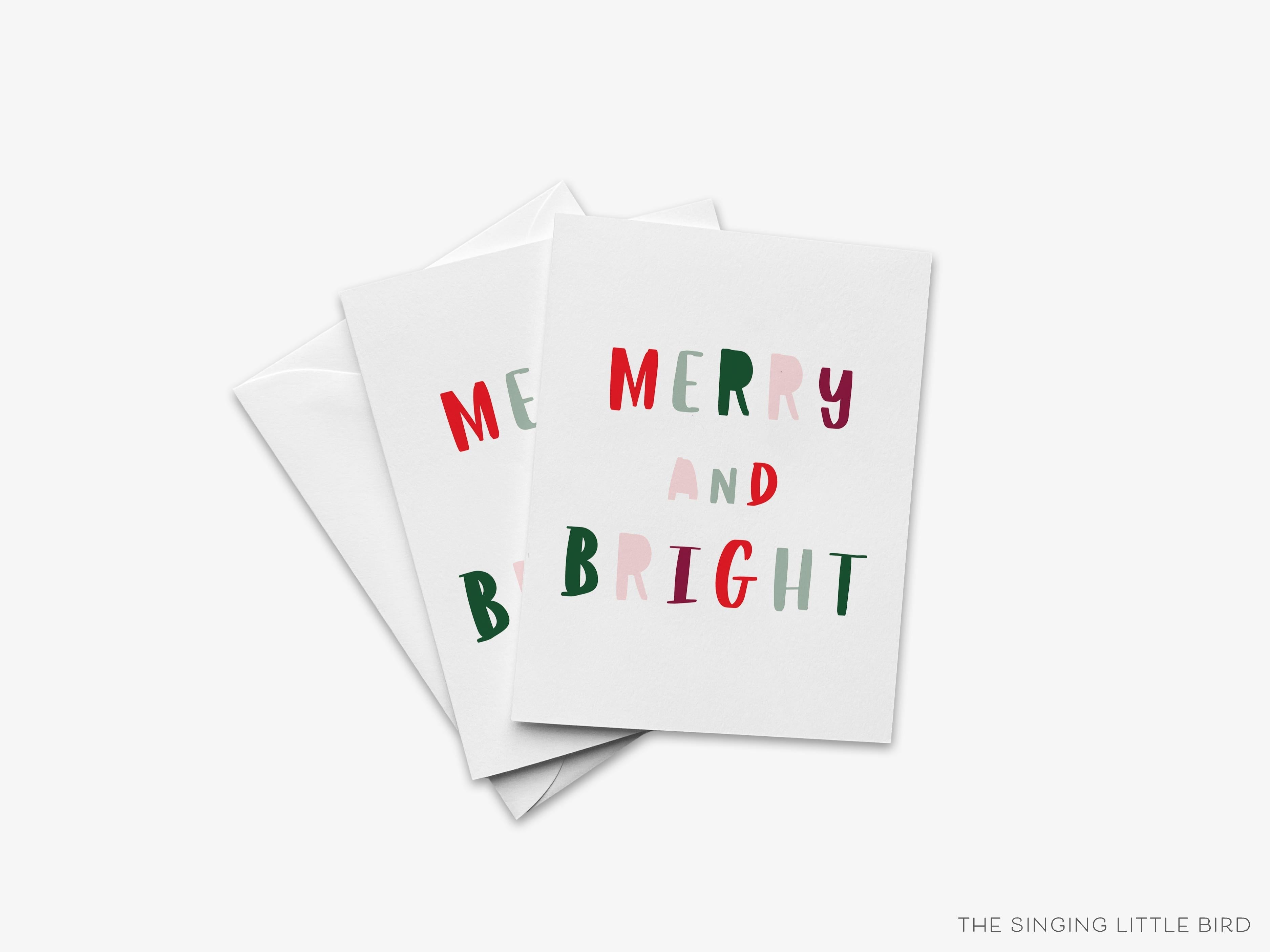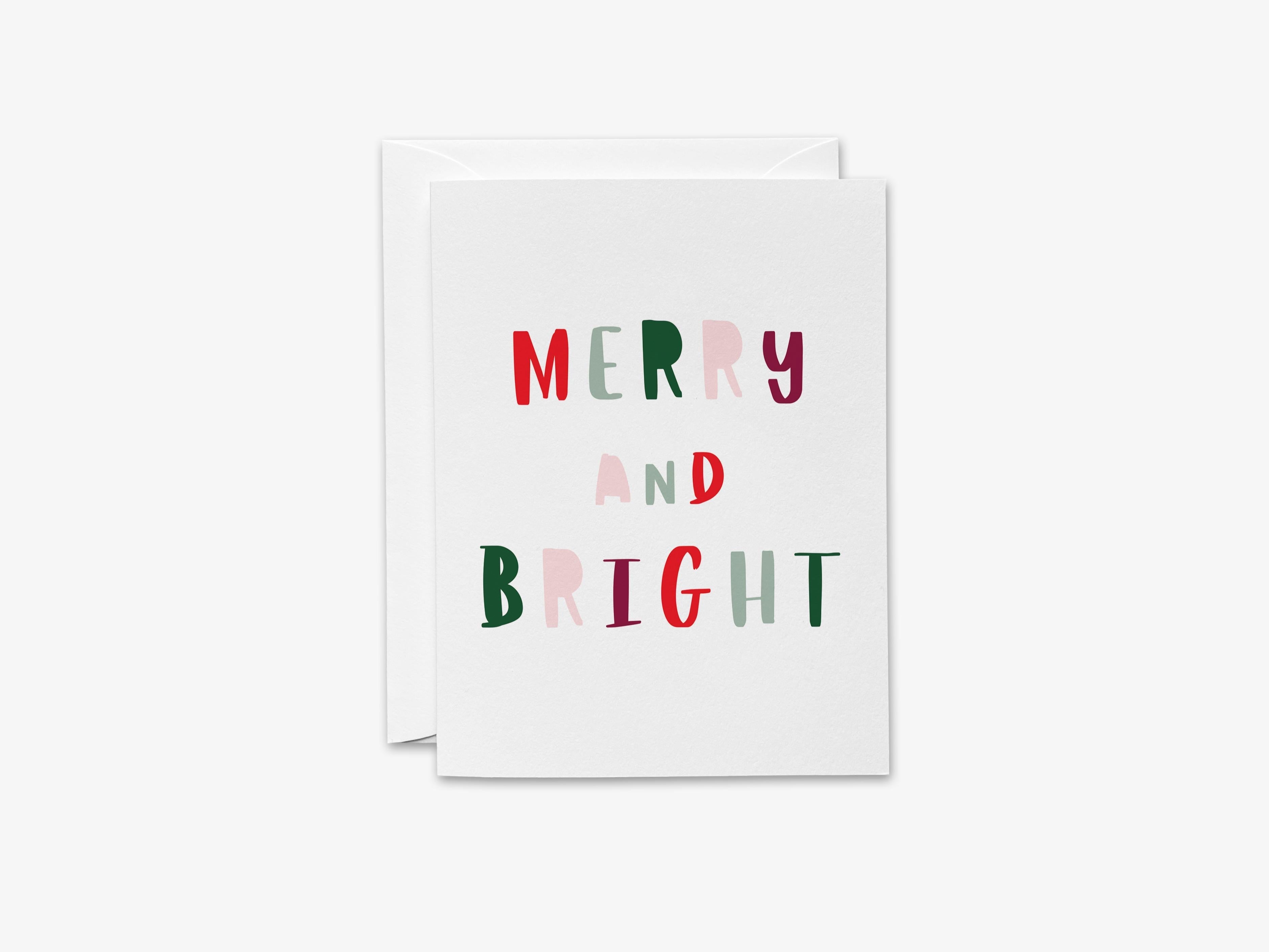 • Folded Merry and Bright Christmas Greeting Card + White Envelope