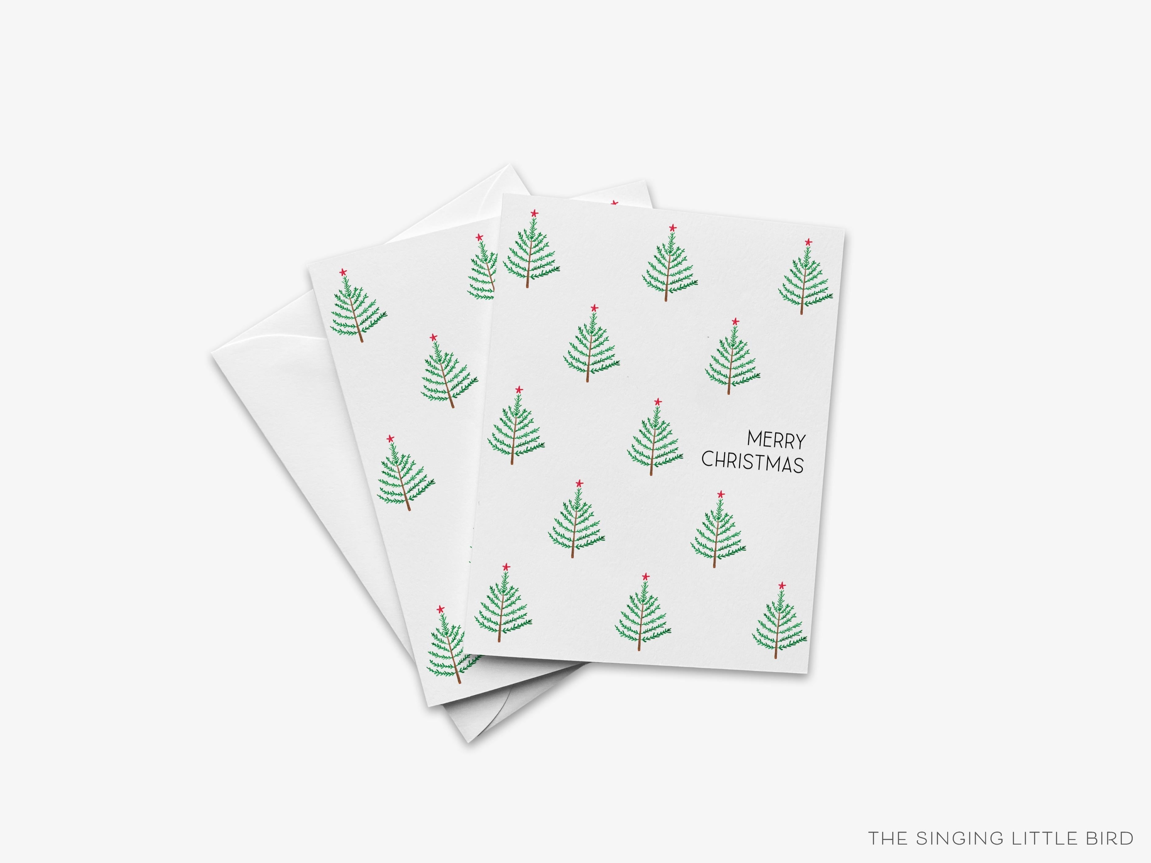 • Folded Merry Christmas Evergreen Greeting Card + White Envelope