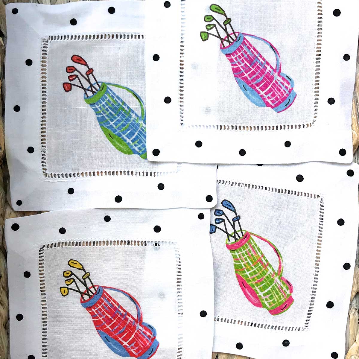 Multi Color Golf Bag Cart Linen Cocktail Napkins