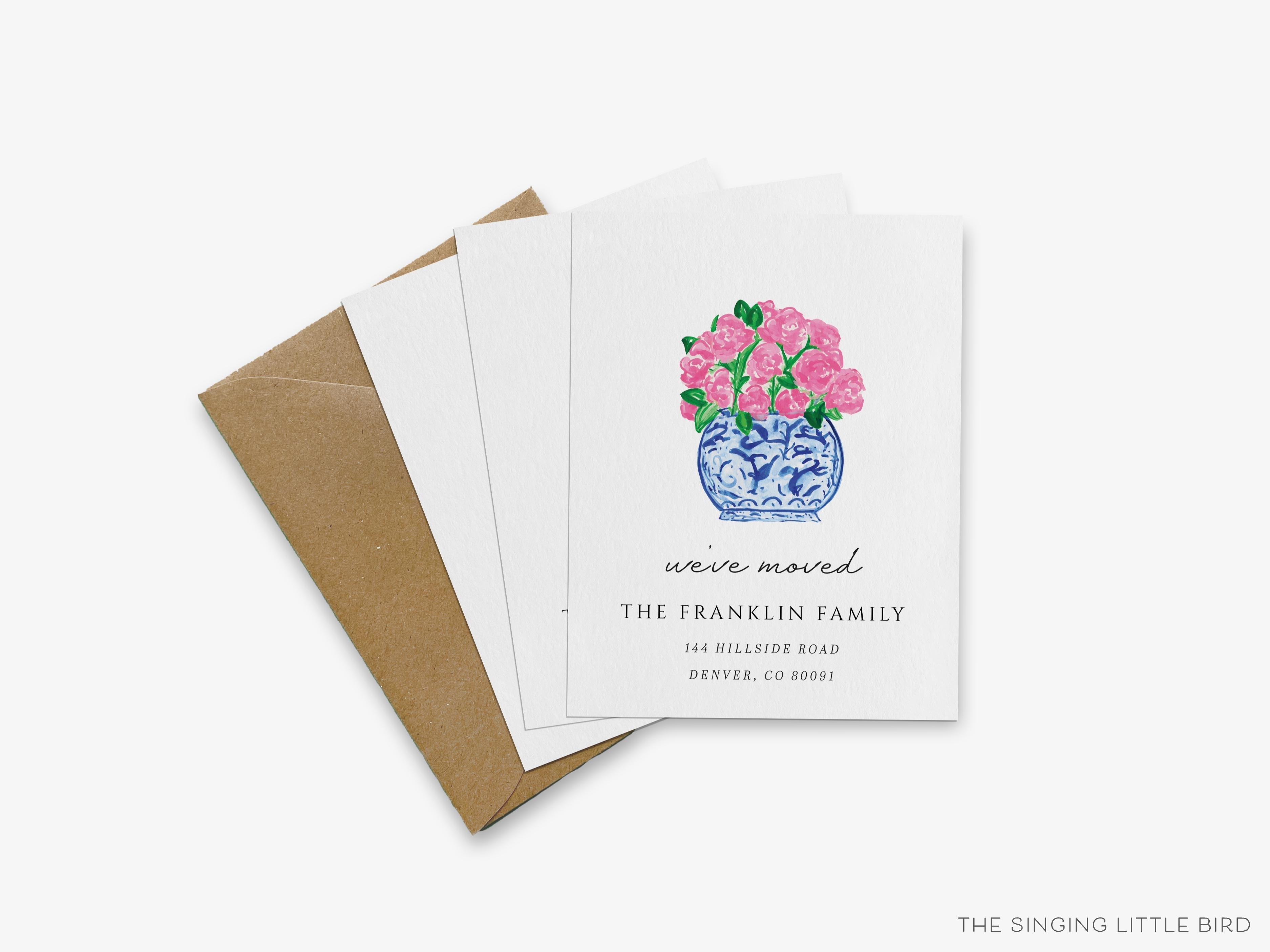 Peonies in Ginger Jar Moving Announcement Card | Change of Address Card | We've Moved Card | New Home | Personalized New House | Pink Floral