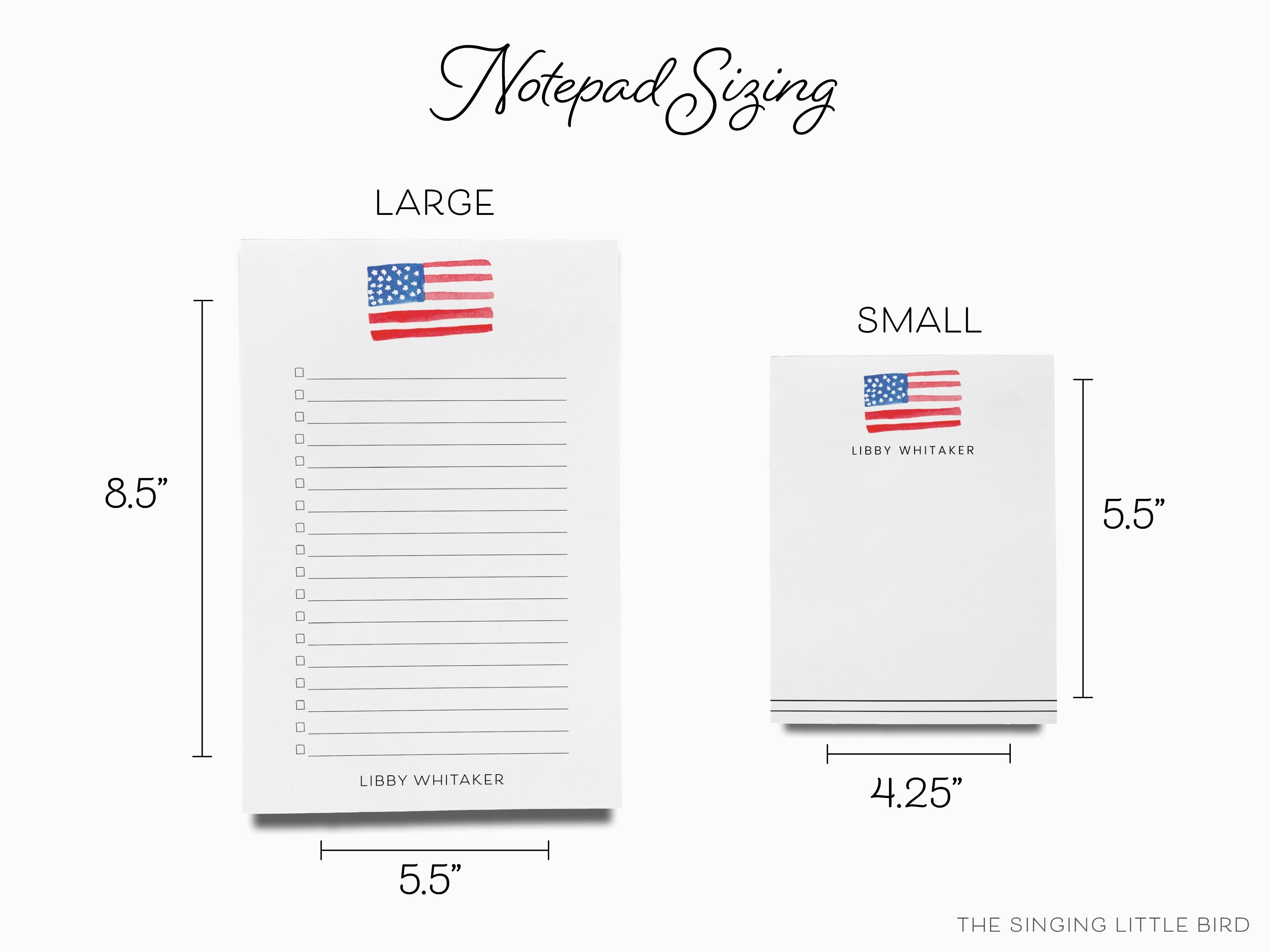 • Personalized American Flag Notepad with 50 Sheets padded at the top