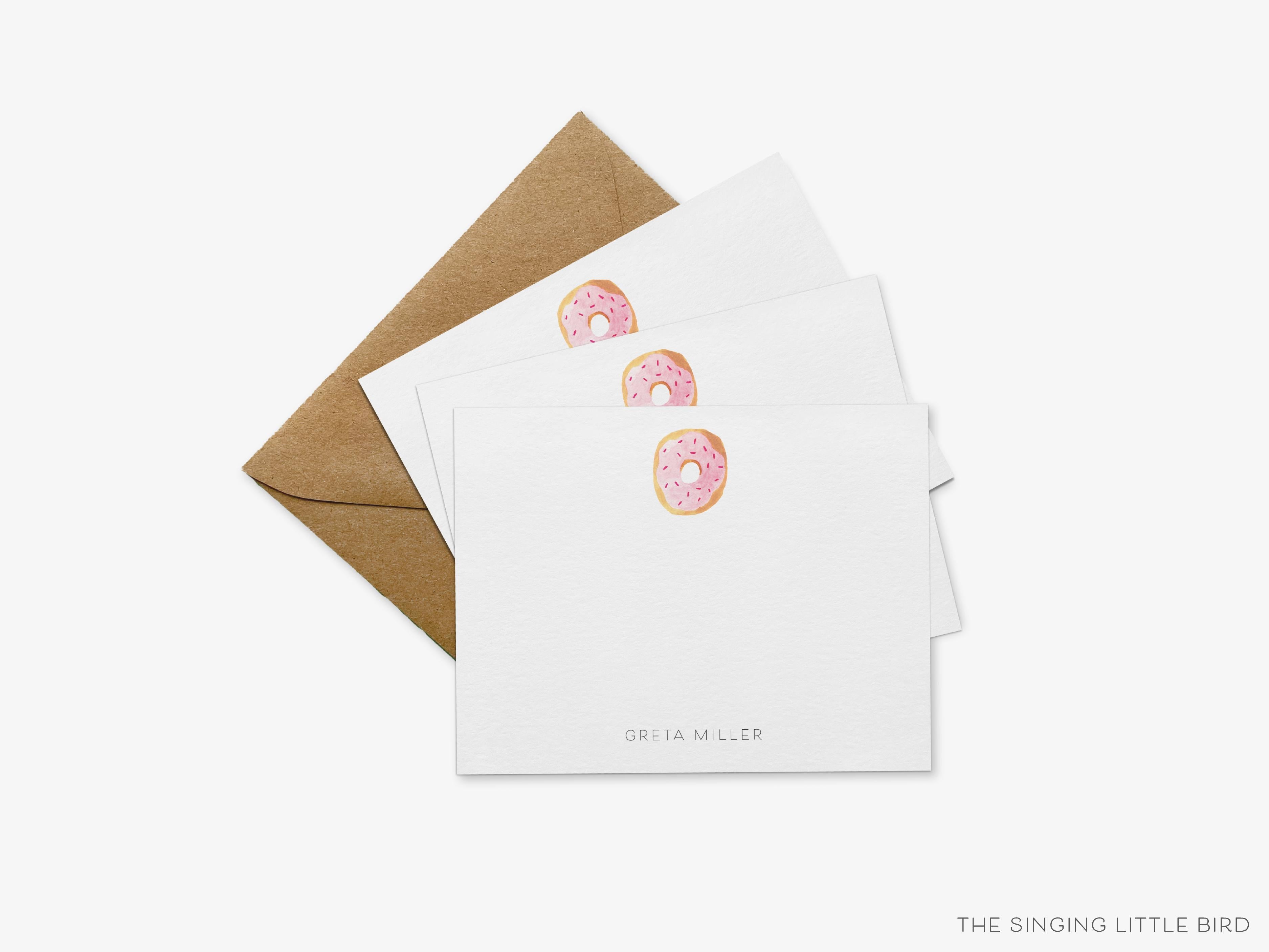• Sets of Personalized Donut Flat Note Cards + White or Kraft Envelopes