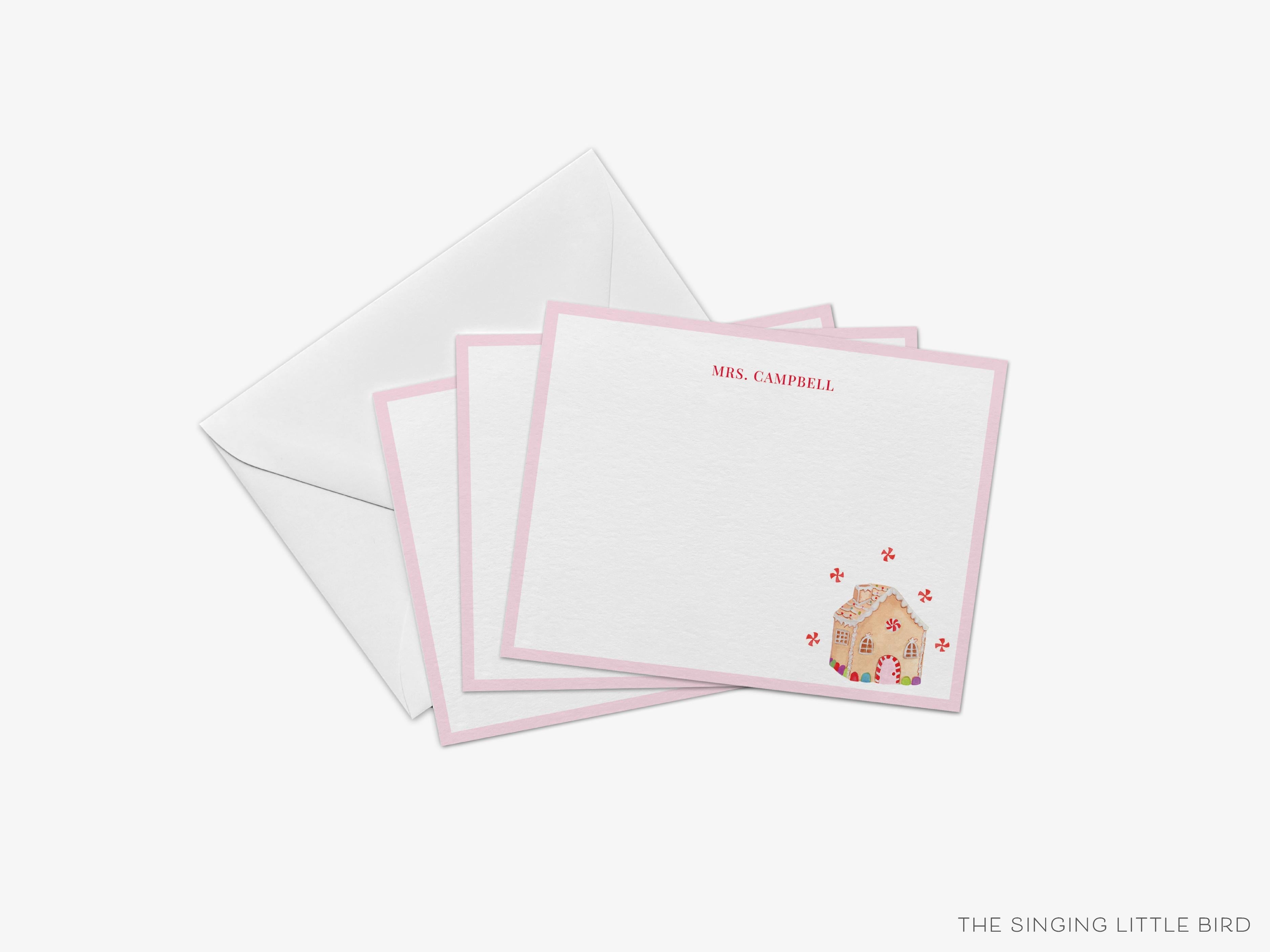 Gingerbread House Personalized Stationery | Christmas Notecards | Holiday Thank You Notes | Gingerbread Candy Cards | Pink Preppy Christmas