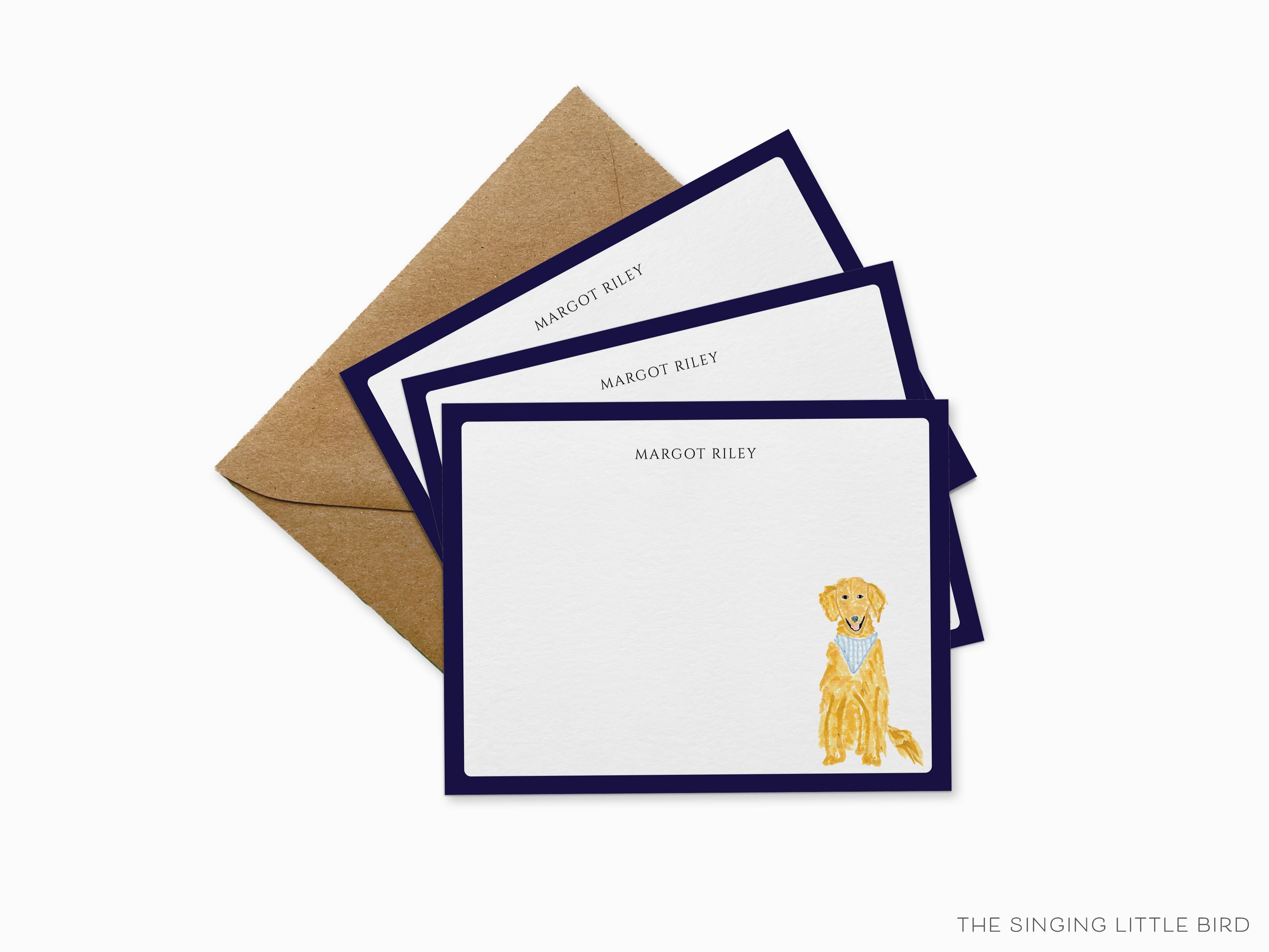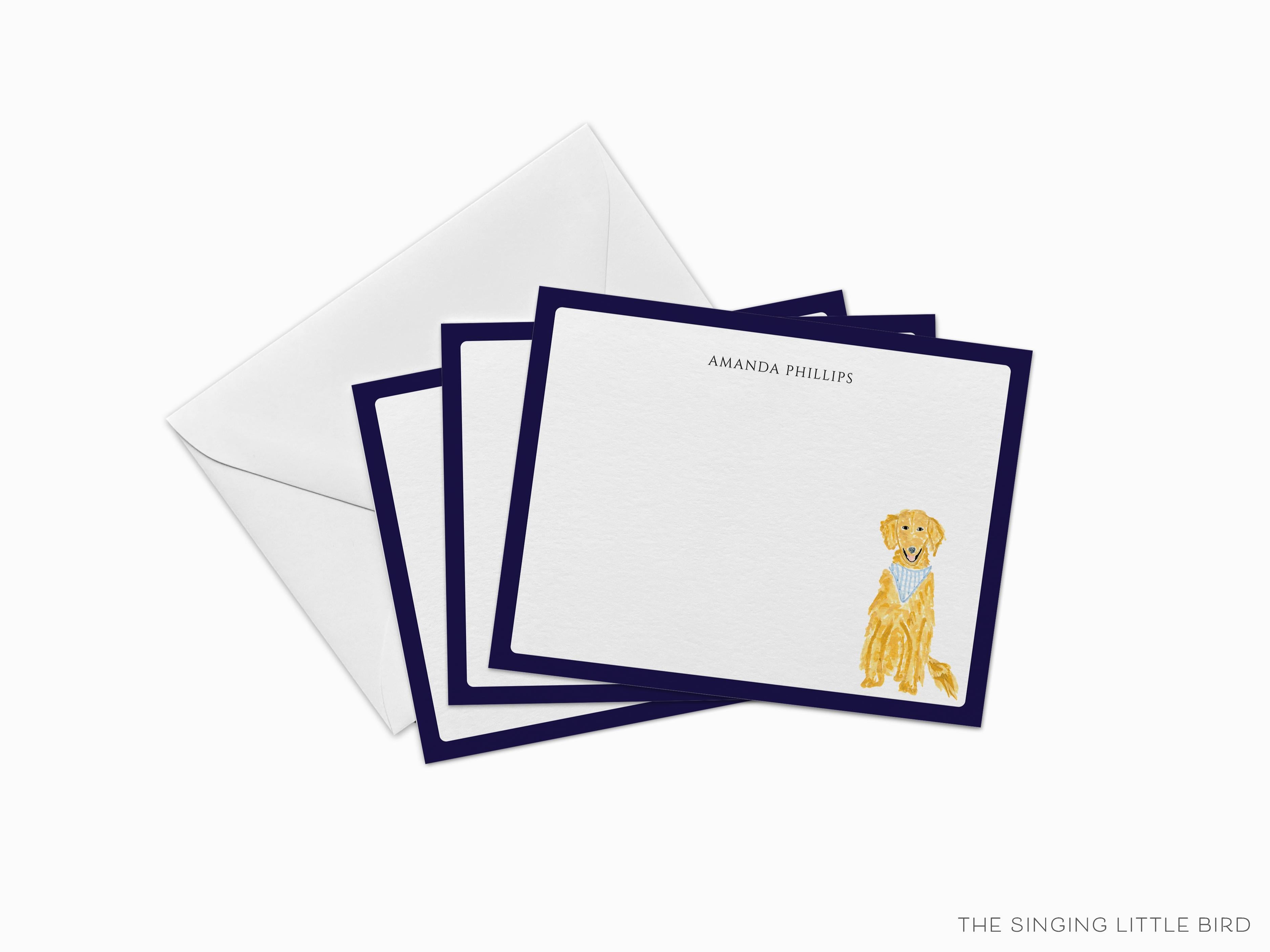 • Sets of Personalized Golden Retriever Flat Note Cards + White or Kraft Envelopes