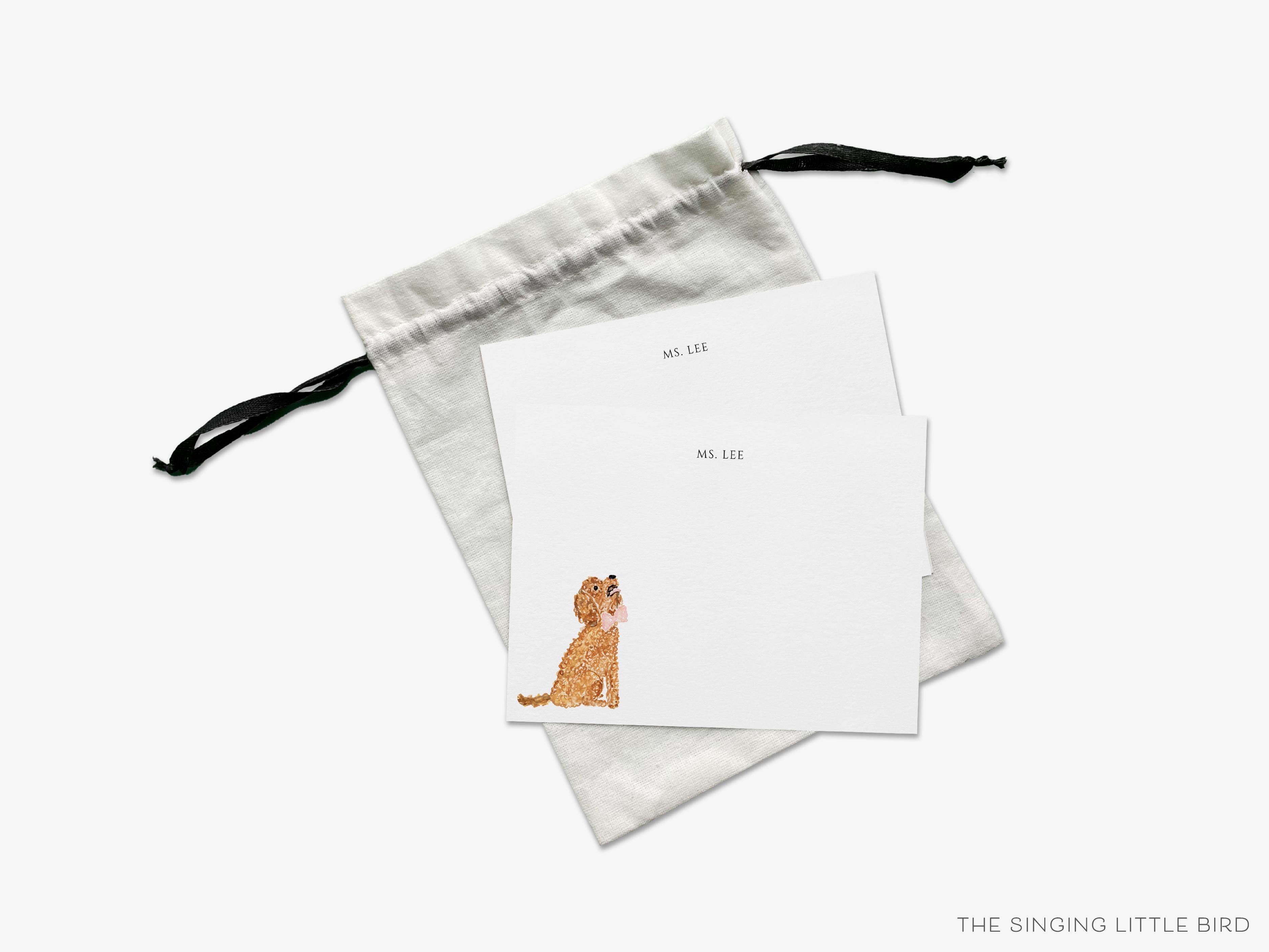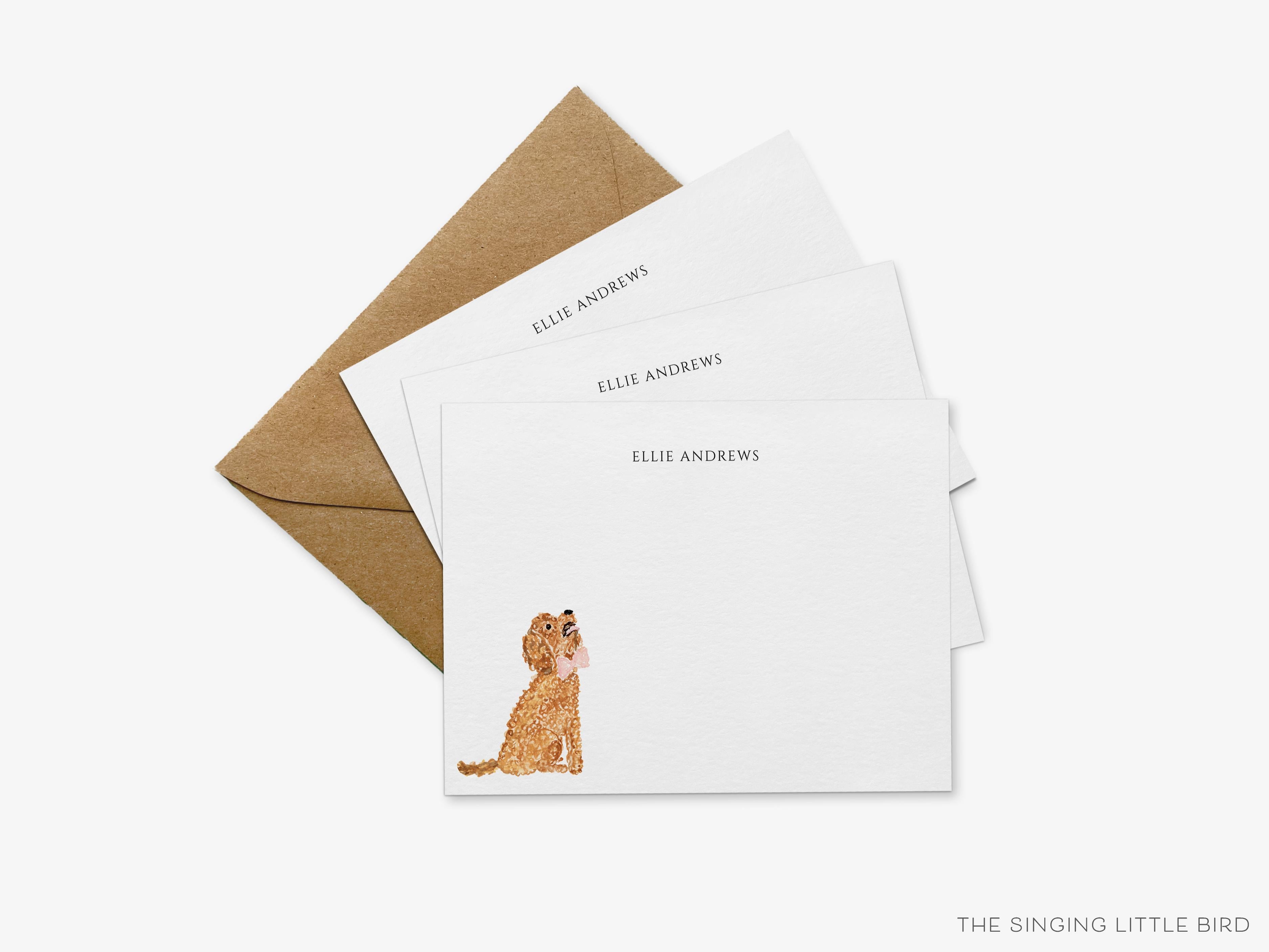 • Sets of Personalized Goldendoodle Flat Note Cards + White or Kraft Envelopes