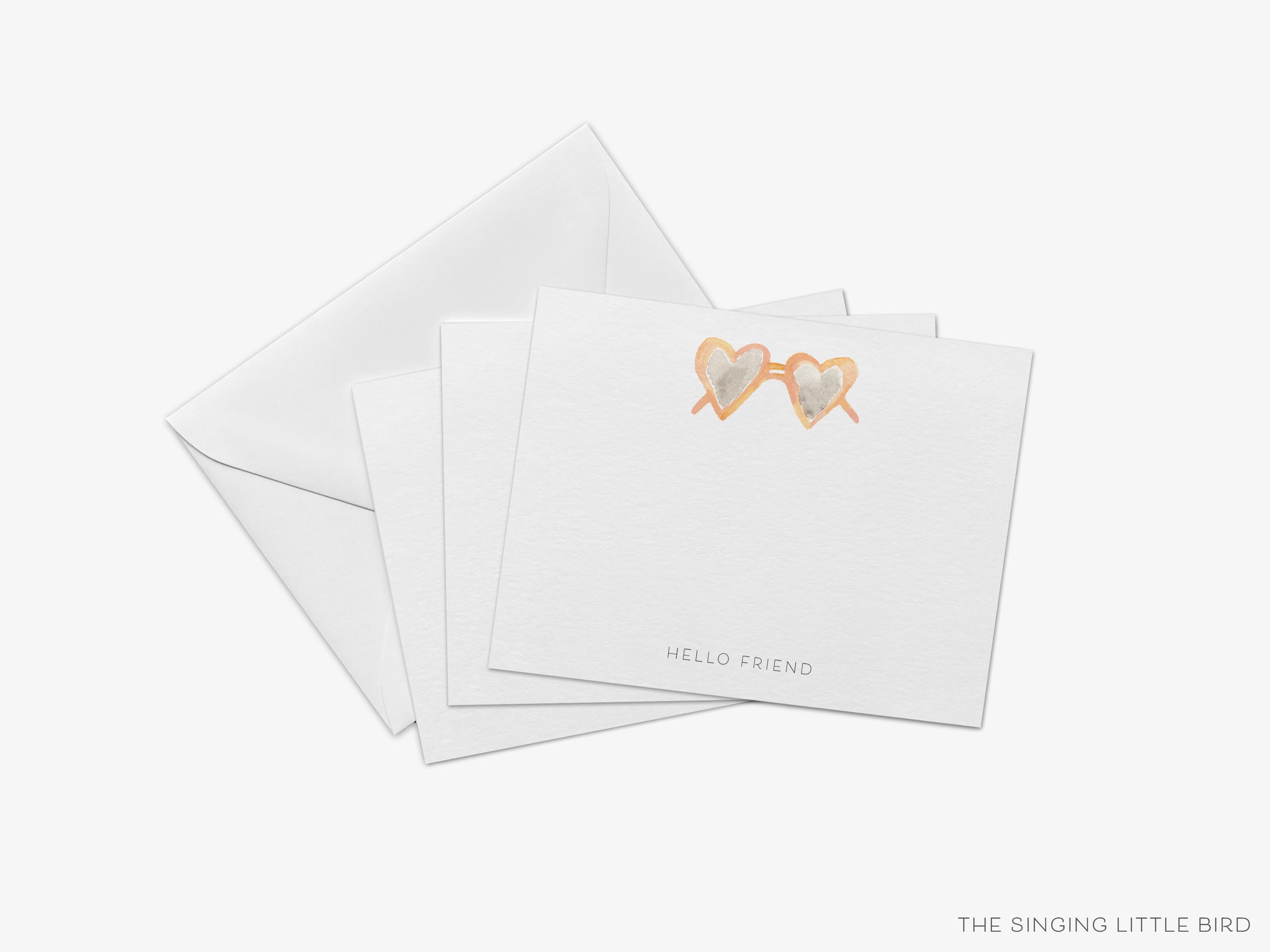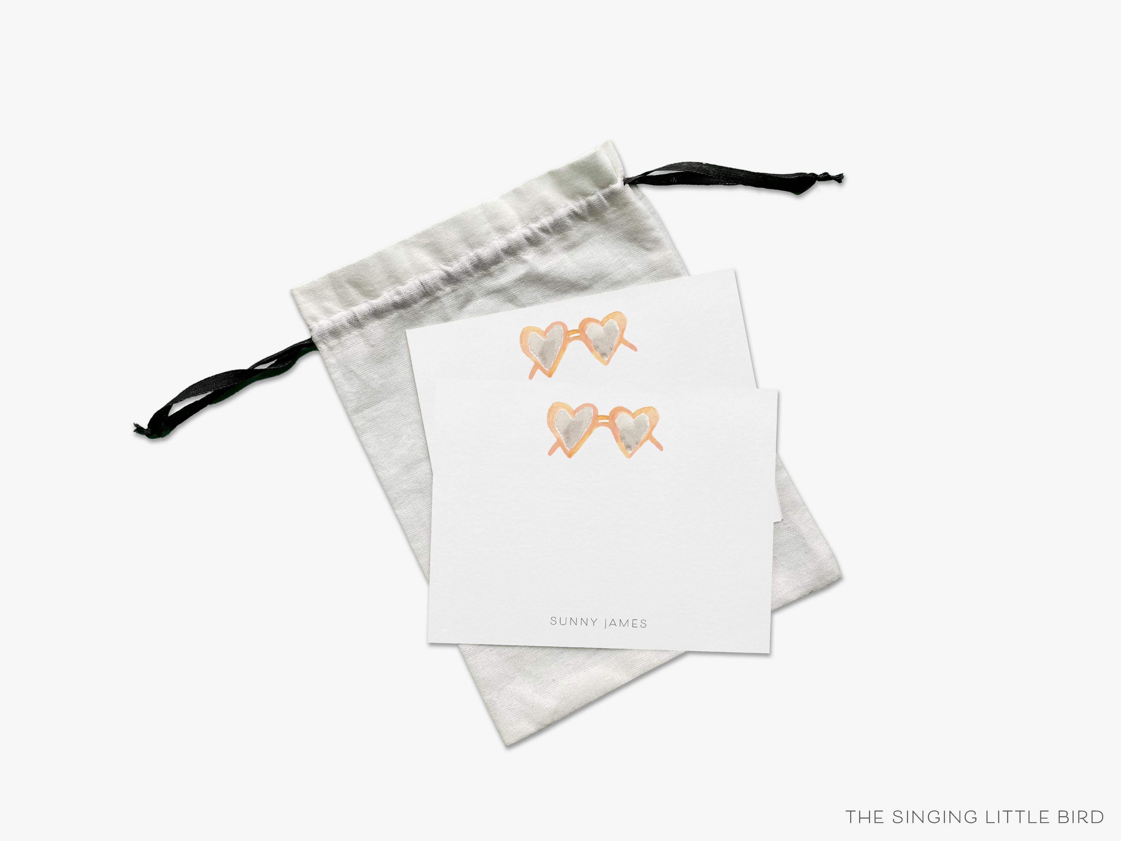 Personalized Sunnies Stationery | Heart Glasses Thank You Notes | Modern | Feminine Notecard Set | Sunglasses Greeting Cards | Watercolor