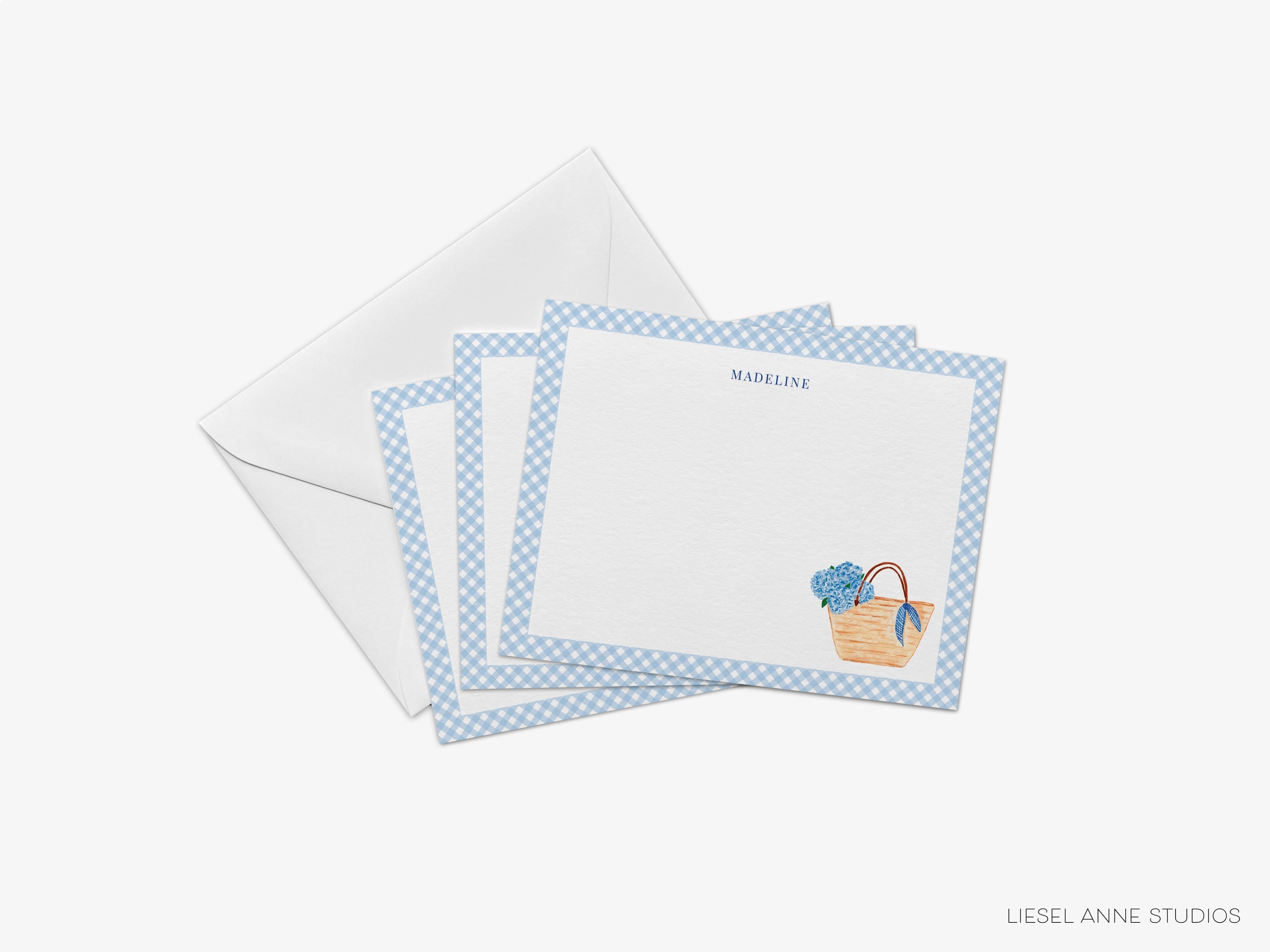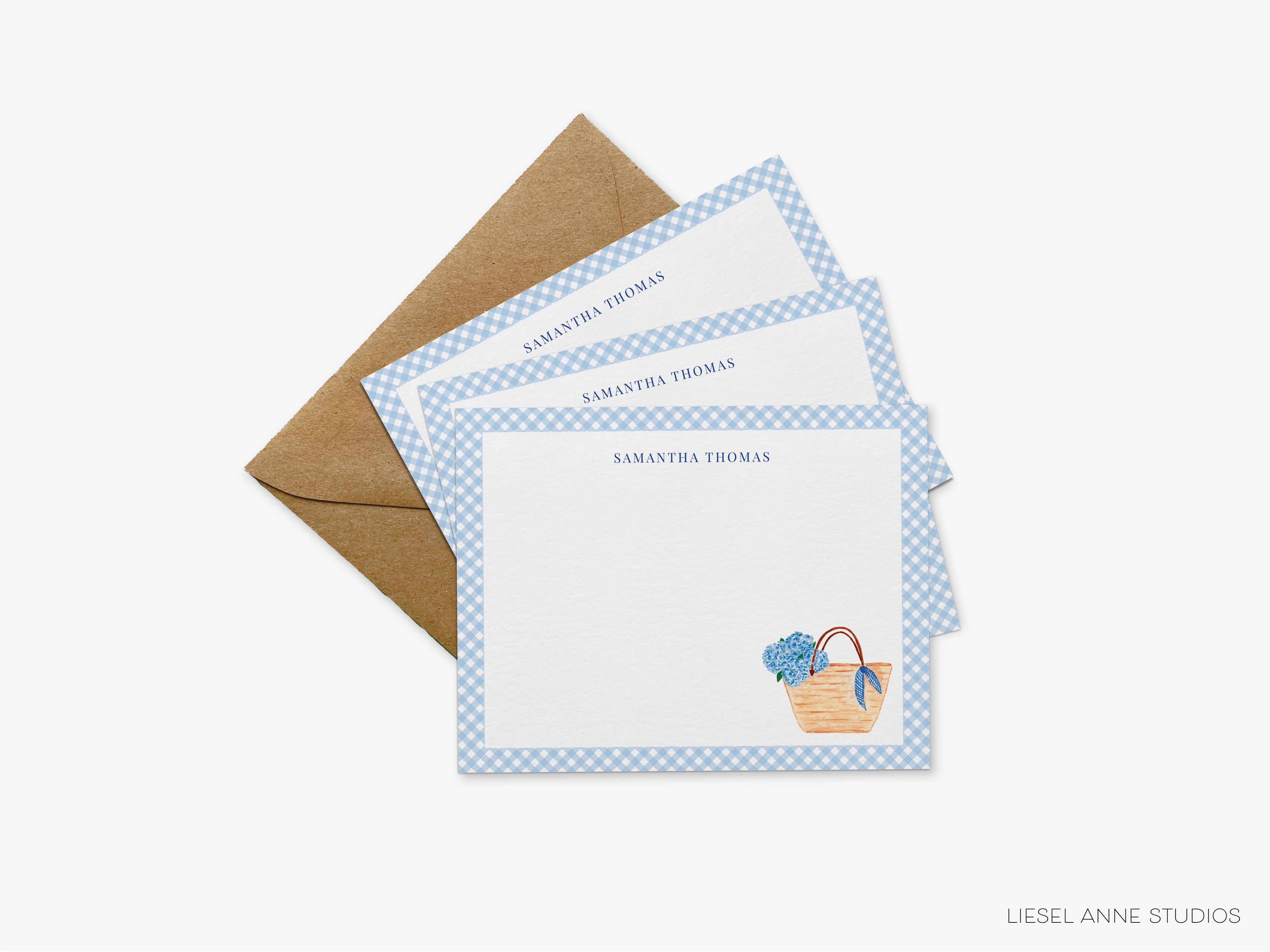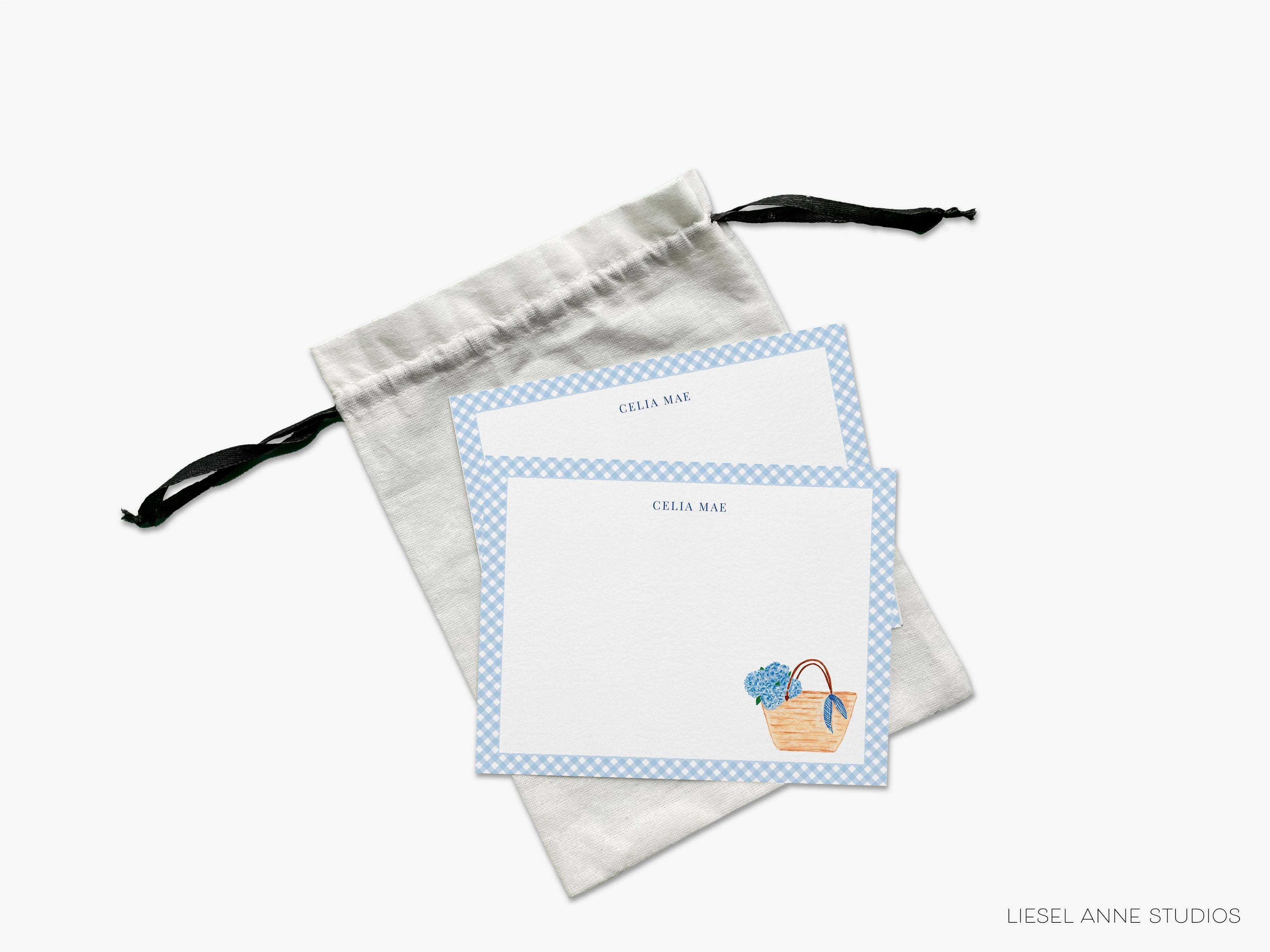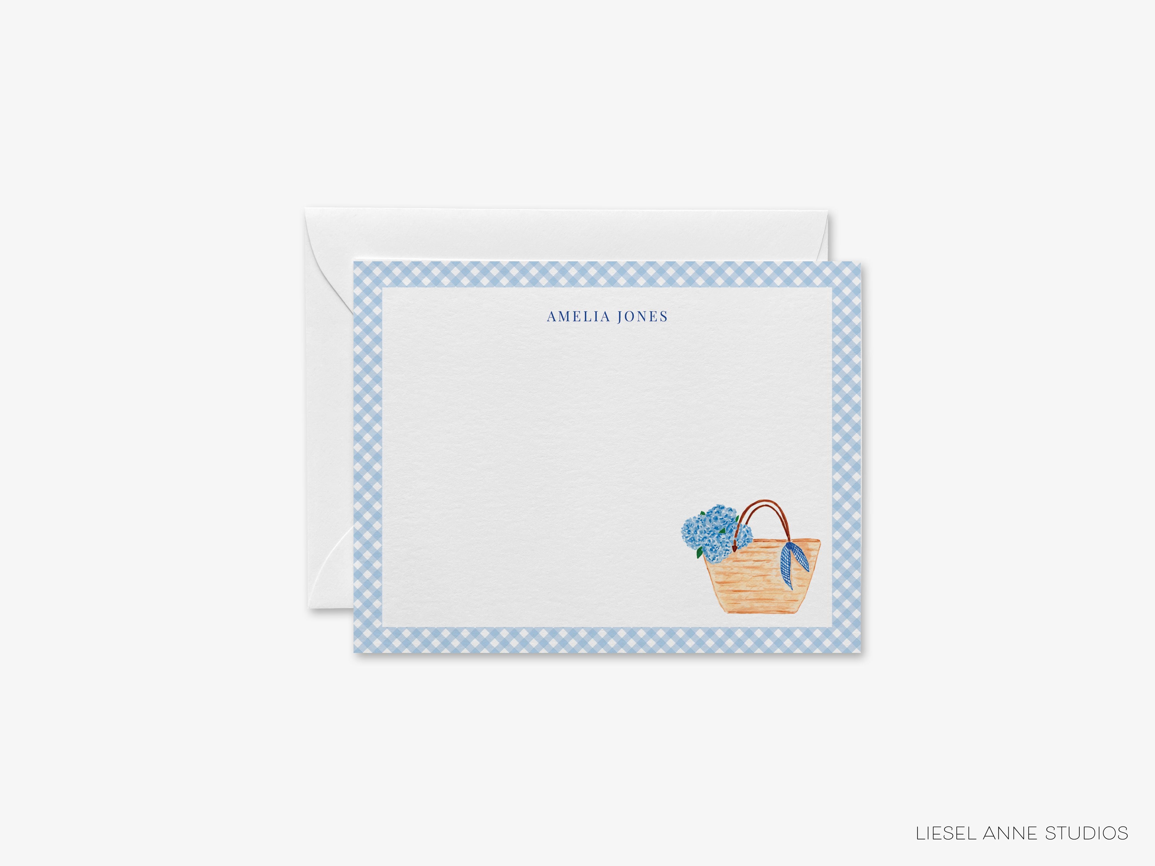 Hydrangea Rattan Bag Personalized Stationery | Blue Gingham Notecards | Thank You Notes | Hostess Gift | Gift for Her | Tote Bag Cards