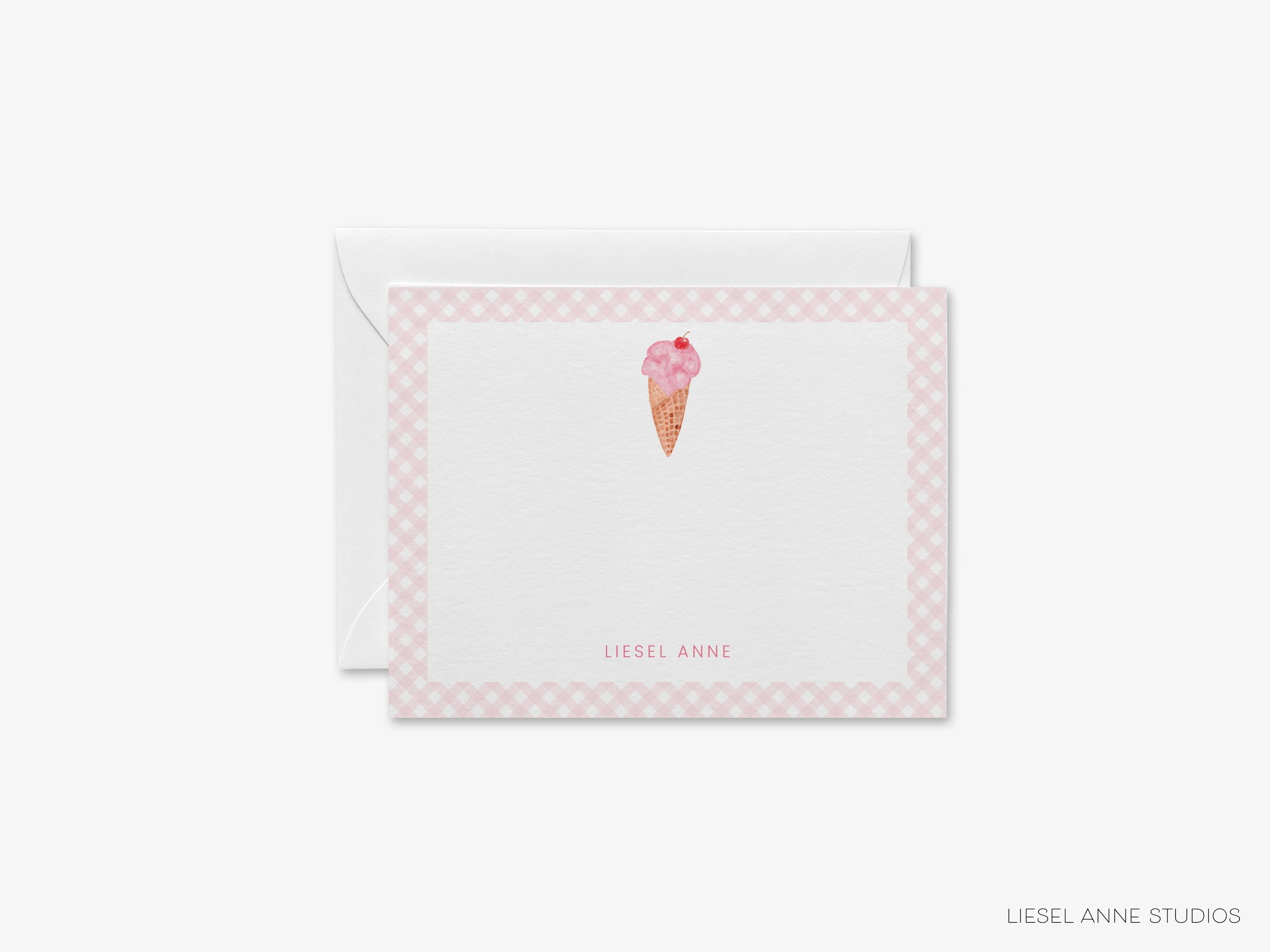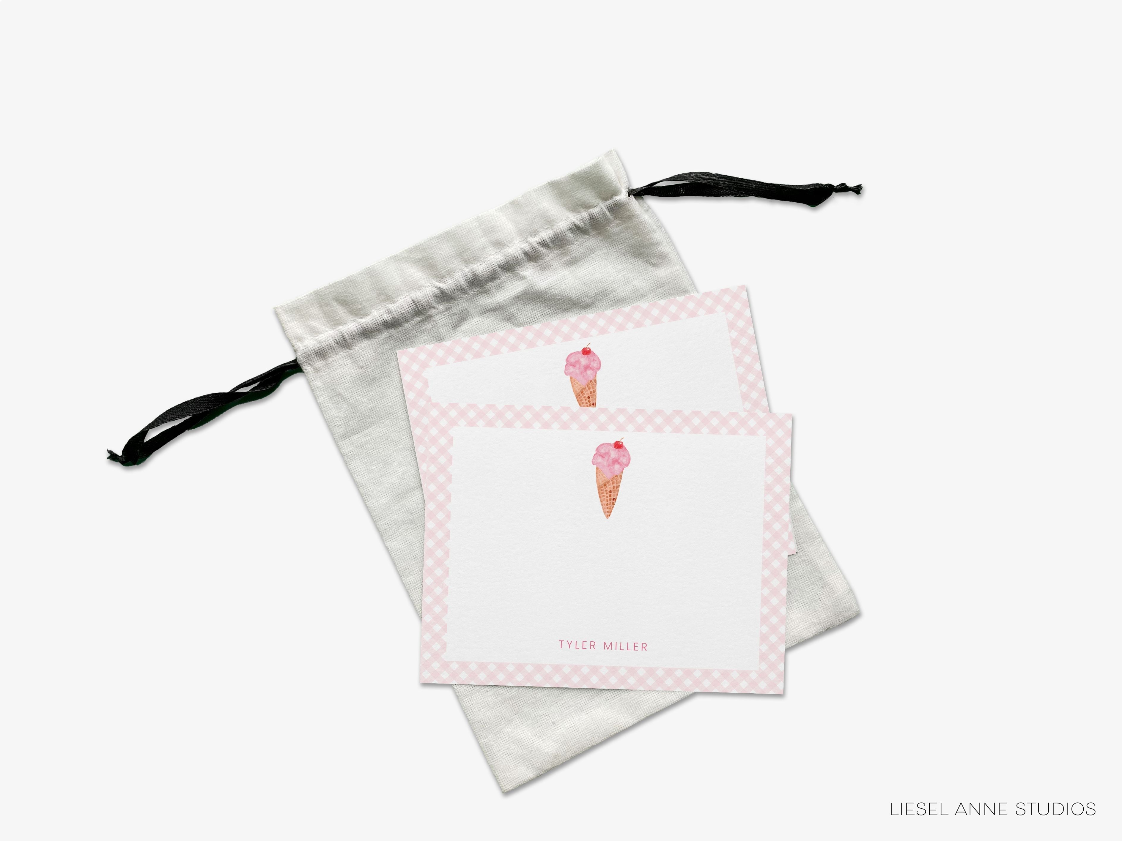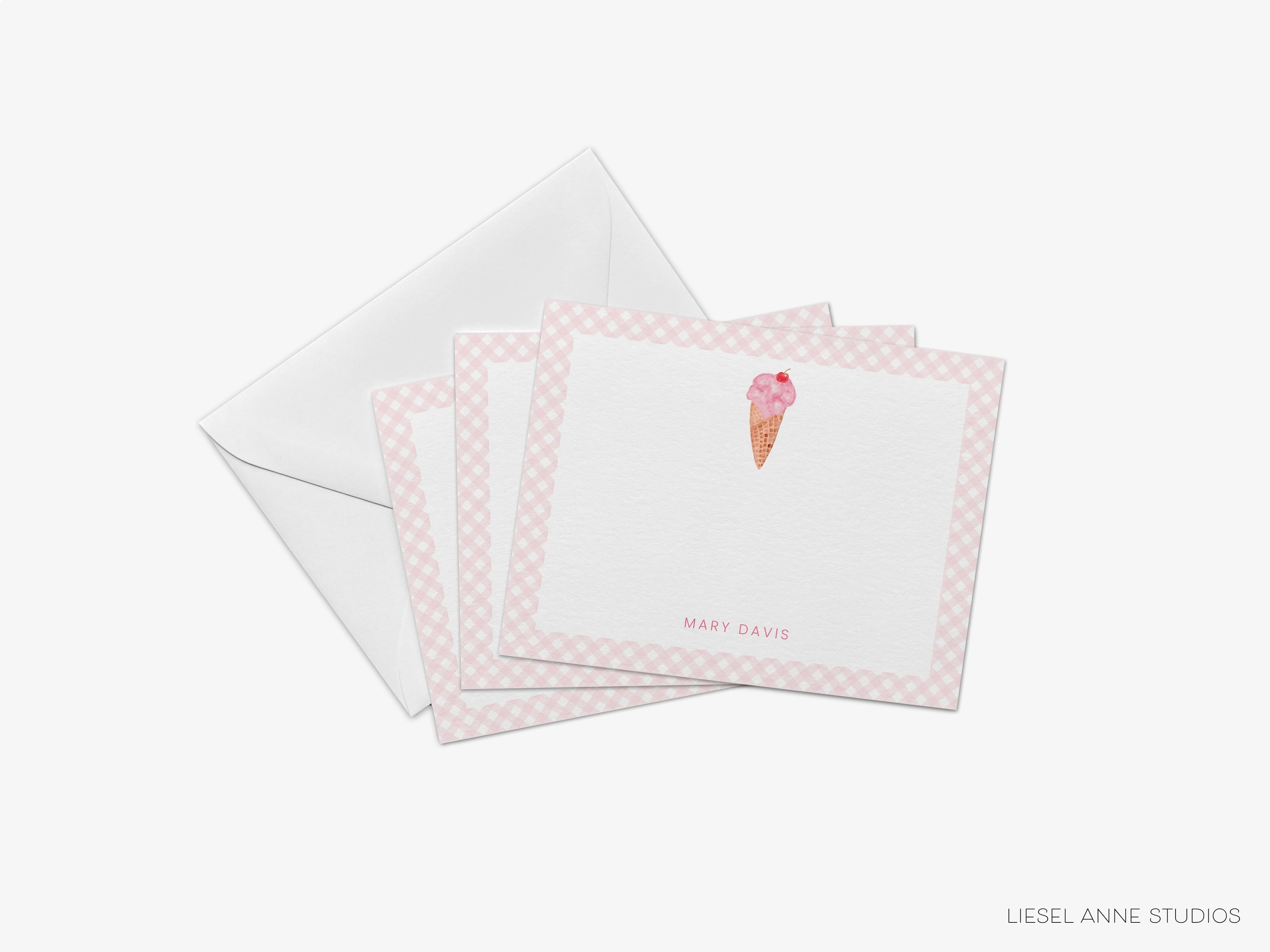 • Sets of Personalized Ice Cream Flat Note Cards + White or Kraft Envelopes